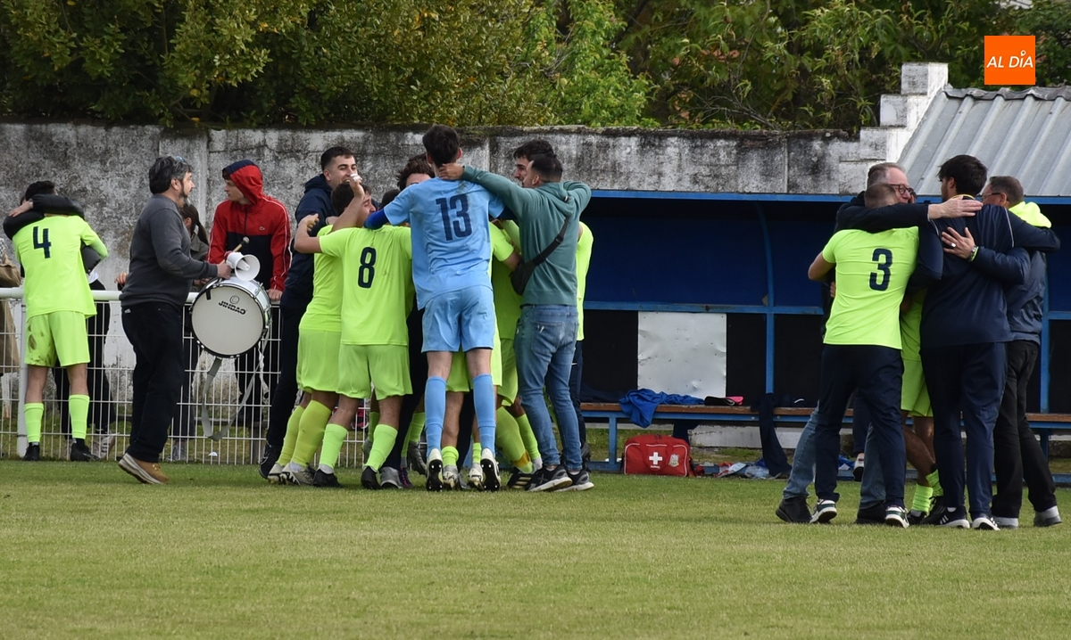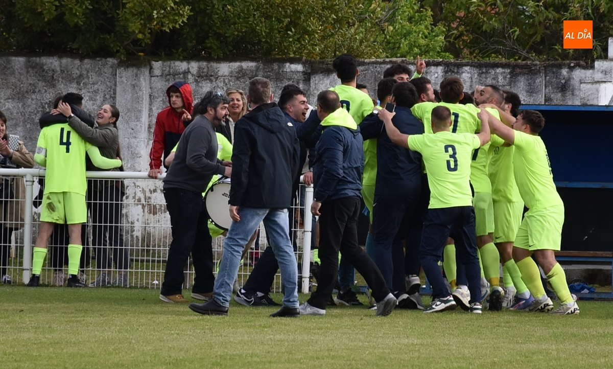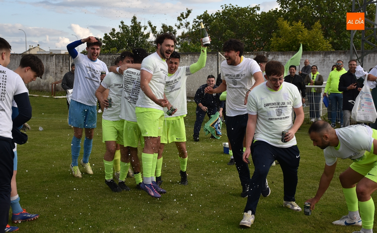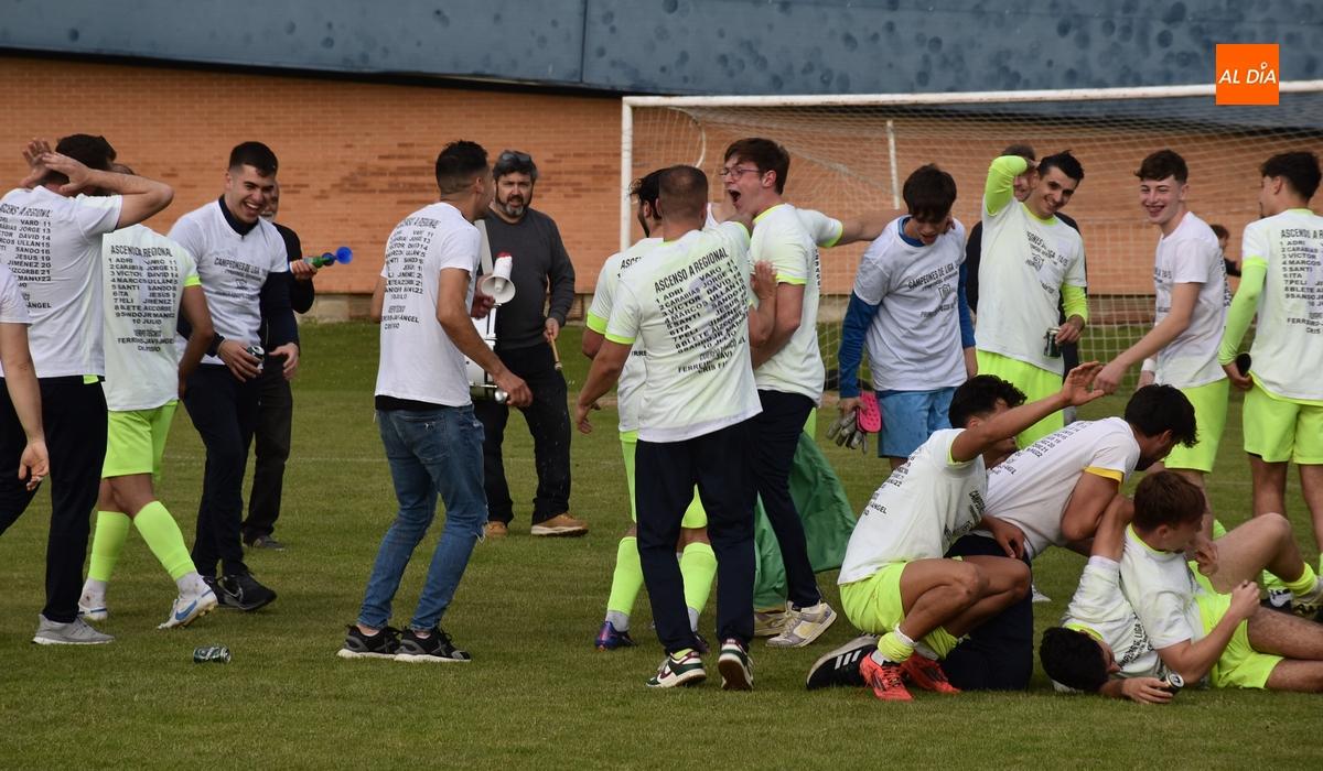 Tras ese primer momento de alivio, los jugadores y técnicos del Helmántico comenzaron a celebrar el doble éxito acompañados de unos cuantos familiares, amigos e integrantes de la cantera del Club capitalino. Dentro de esa celebración, se pusieron las clásicas camisetas conmemorativas con los nombres de todos ellos, se regaron con alcohol de latas y botellas, encendieron algún puro y hubo los clásicos manteos sobre el césped del Francisco Mateos antes de pasar al vestuario del vecino Pabellón Eladio Jiménez, donde continuó el ambiente festivo según ha mostrado el Club en sus redes sociales.