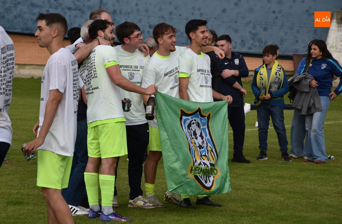 Con el pitido final en el Francisco Mateos, los jugadores del Helmántico, más que estallar de júbilo en un primer momento, respiraron aliviados por haber conseguido el objetivo en una larga temporada en la que han sumado 22 victorias, 2 empates y 2 derrotas en los 26 partidos disputados, con 94 goles a favor y 21 en contra, lo que hace una diferencia de +73 por el +70 con el que acaba la liga Villares de la Reina, que se queda sin título y sin ascenso pese a no haber perdido ni un partido (ha sumado 21 victorias y 5 empates).