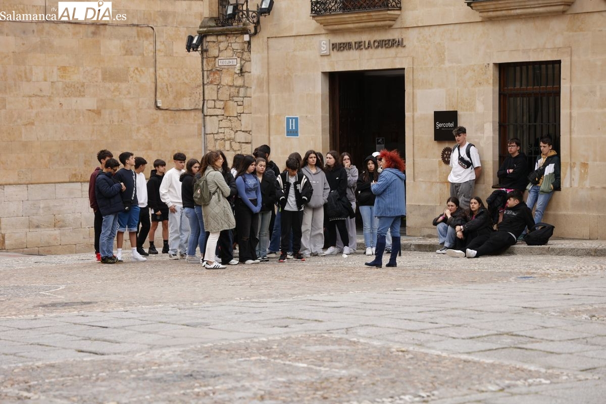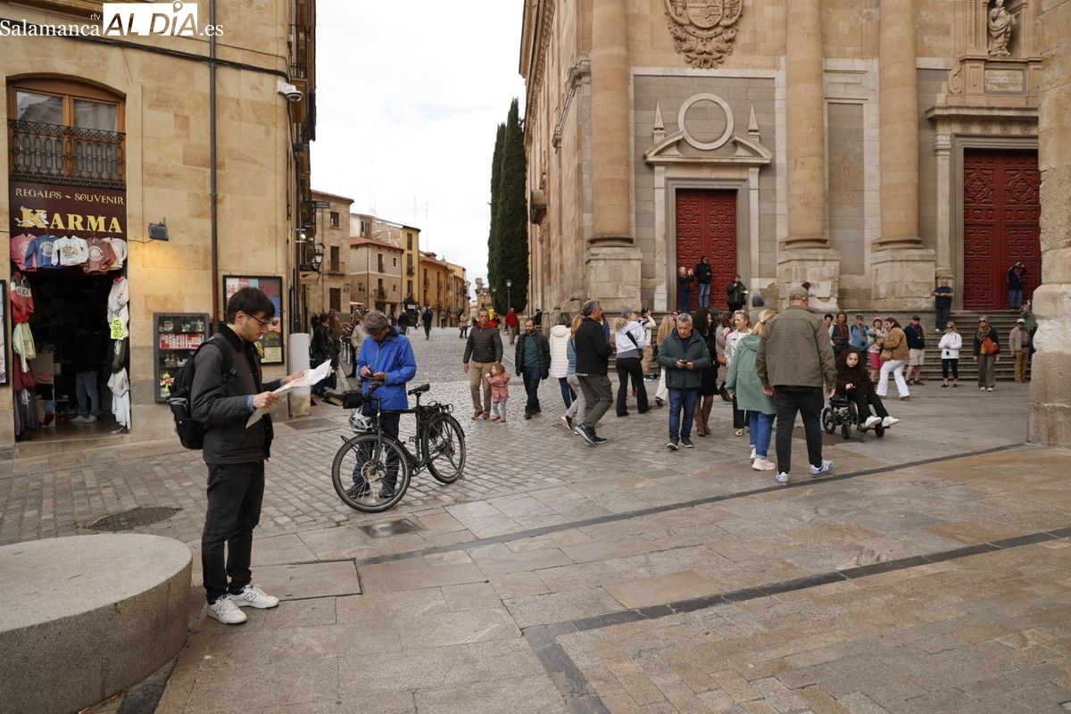 Desde la Plaza Mayor hasta las Catedrales y la Universidad, el flujo de personas ha sido constante, con terrazas animadas y numerosos curiosos inmortalizando los rincones de la ciudad. David Sañudo ha capturado esta atmósfera en una completa galería de imágenes que refleja la vida y el interés que despierta Salamanca incluso bajo un cielo gris.