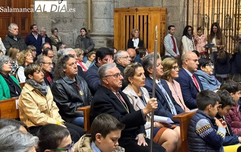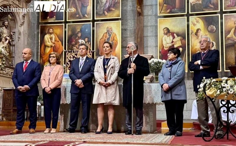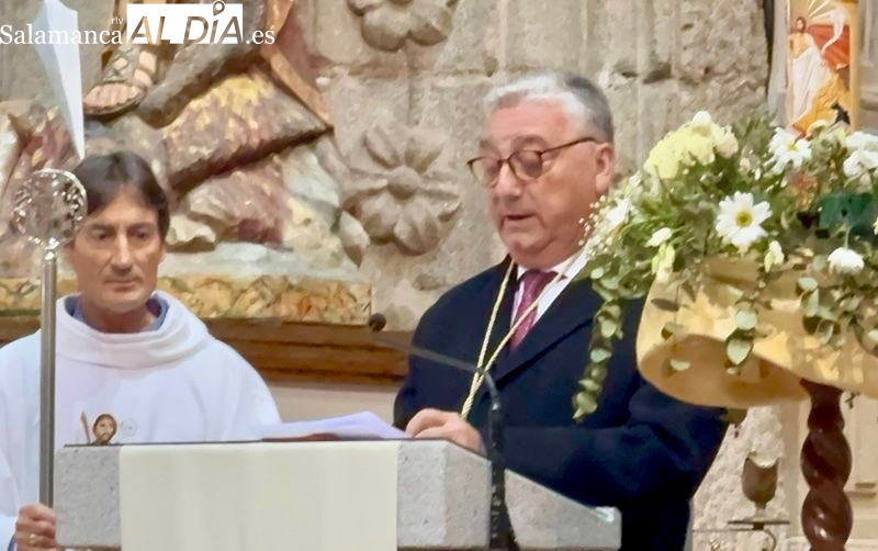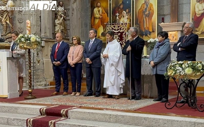 La iglesia parroquial San Miguel Arcángel se ha quedado pequeña este domingo para acoger a la gran cantidad de fieles que participaba en la tradicional eucaristía dominical, acto que hoy contaba con un momento de especial emoción, ya que en ella tenía lugar el relevo en la presidencia y la directiva de la Hermandad de Cofradías y el nombramiento de la nueva junta rectora, con Isabel María Sacristán al frente.