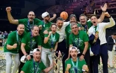 El técnico ayudante charro celebra la conquista de la Basketball Champions League en Atenas tras vencer al Galatasaray en la final (83-67); este título europeo se suma a los tres trofeos que el club ya ha ganado esta temporada