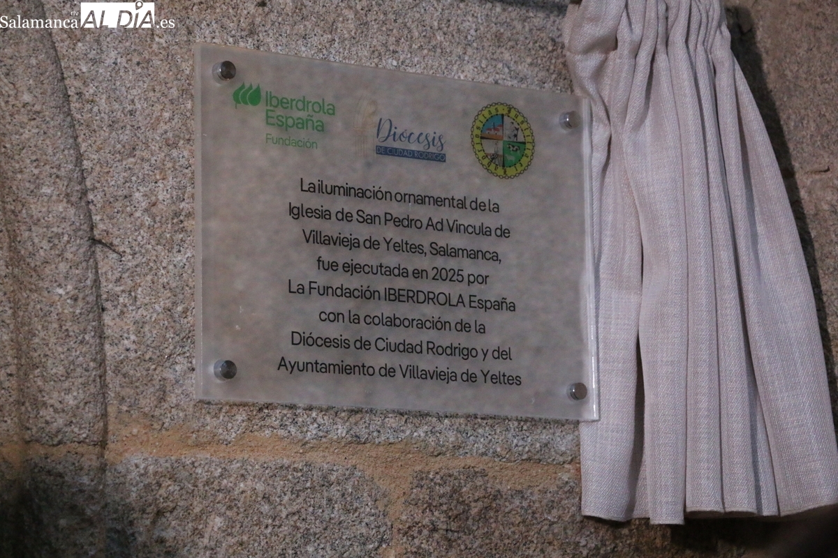La noche en Villavieja de Yeltes tiene desde este lunes un nuevo brillo. La histórica iglesia parroquial de San Pedro ad Vincula ha desvelado su renovada iluminación ornamental, tanto interior como exterior, un proyecto que fusiona tecnología sostenible y respeto por el patrimonio, impulsado gracias a un convenio entre la Fundación Iberdrola España, la Diócesis de Ciudad Rodrigo y el Ayuntamiento villaviejense, y por el que la empresa que preside el villaviejese Ignacio Galán ha aportado 70.000 euros para la ejecución del proyecto.