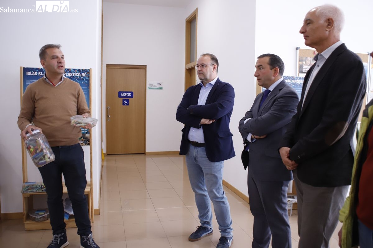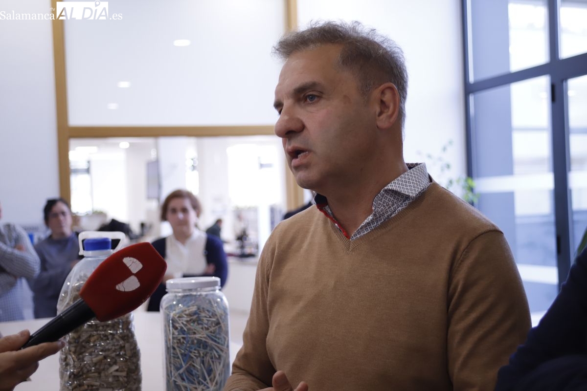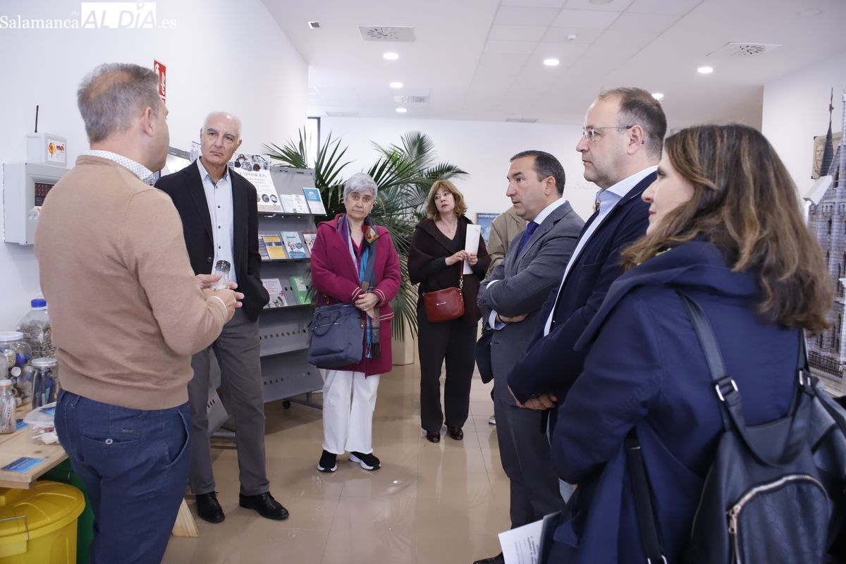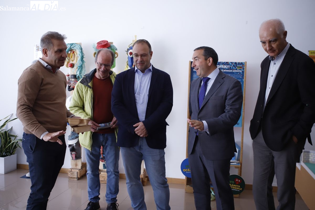 Eloy Ruiz, delegado territorial de la Junta en Salamanca, visitó la muestra junto a Roberto Lozano, director de la Fundación Oxígeno, impulsora del proyecto. Ruiz destacó la buena acogida y el objetivo de “implicar activamente a la sociedad salmantina en la minimización de los residuos que se generan".