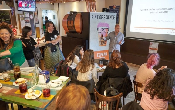 “Pint of Science” nació en mayo de 2013 en Reino Unido, cuando los investigadores Michael Mostkin y Praveen Paul organizaron un evento en sus laboratorios con el fin de mostrar la investigación que realizaban a personas afectadas por distintas enfermedades mentales. Ellos mismos comprobaron la gran repercusión que tuvo en esos pacientes, y pensaron “si la gente va a los laboratorios… ¿por qué no llevar la ciencia al lugar donde está la gente, los bares?”.