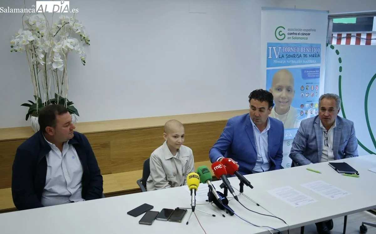 La Asociación Española Contra el Cáncer (AECC) en Salamanca y la asociación La Sonrisa de M4ría han sellado un importante convenio de colaboración, un pacto que busca fortalecer la lucha contra el cáncer y que arranca con la presentación de la cuarta edición del ya emblemático torneo de fútbol solidario de María.