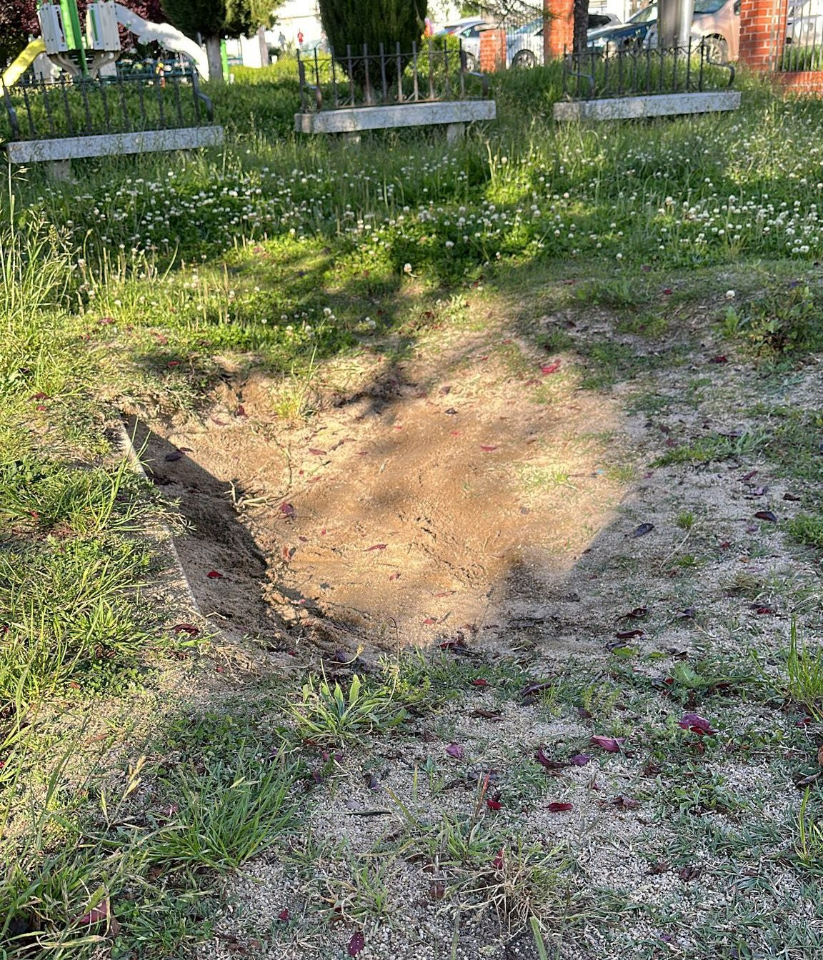 También hacen hincapié en la altura de la hierba, la existencia de columpios rotos y el pésimo estado del arenero