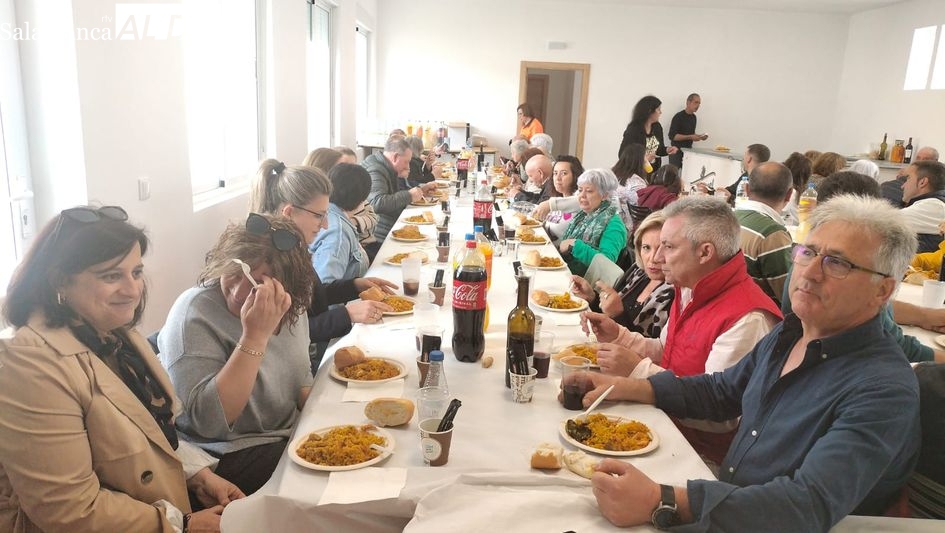 Tras los actos religiosos matutinos, llegó el momento de compartir mesa y mantel. Todos los vecinos disfrutaron de una comida popular donde el plato estrella fue una sabrosa paella.