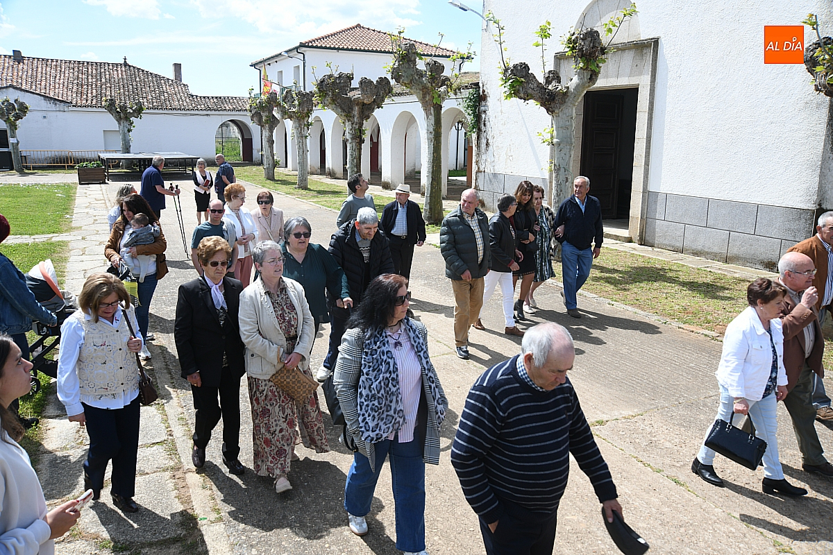 De regreso a la parroquia, se celebró el ofertorio, momento en el que la imagen fue introducida nuevamente en el templo, poniendo así el broche final al ciclo de procesiones en la comarca mirobrigense, iniciado el domingo anterior en el Arrabal del Puente. Tras la ceremonia, los asistentes pudieron disfrutar de una degustación de huevos fritos con farinato, ofrecida de forma dádiva por la Asociación de Vecinos de Águeda.