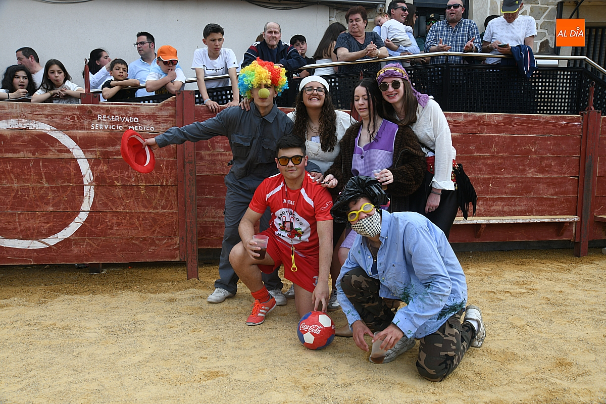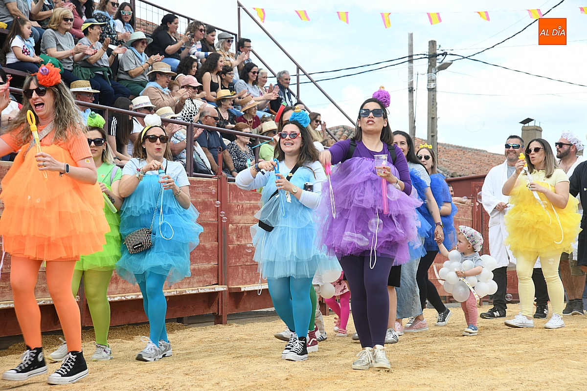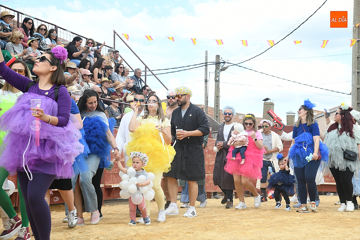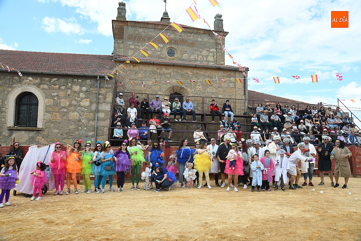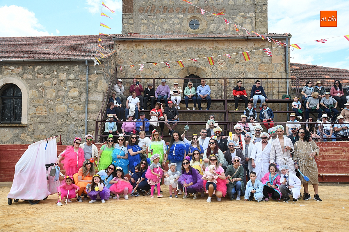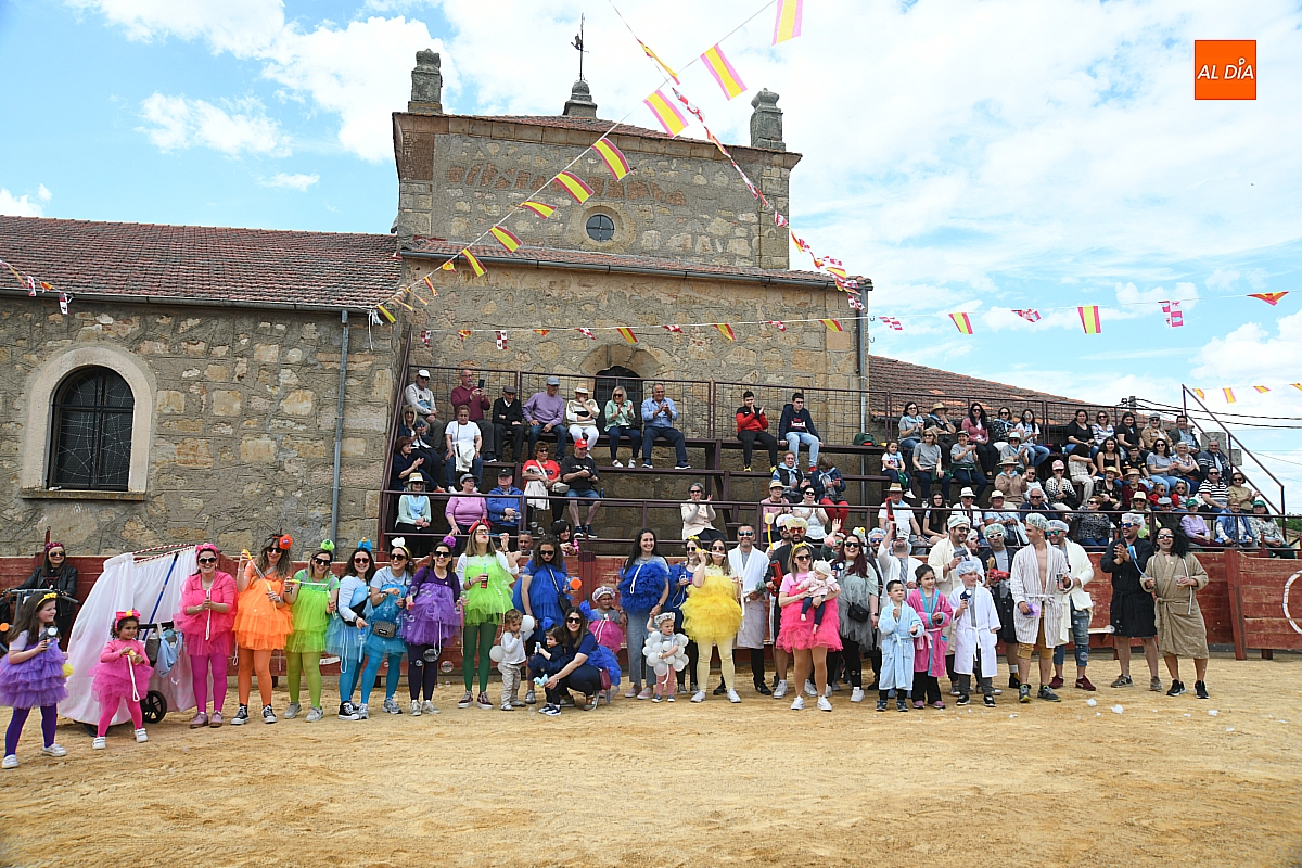 Por la tarde, el pueblo se tiñó de color y creatividad con el desfile de peñas disfrazadas. Grupos de amigos y familias recorrieron las calles con originales atuendos ante el aplauso del público, que llenaba las gradas del improvisado coso taurino. El jurado premió a la peña "Moteros Roqueros" con un lote de embutido ibérico y vino, que seguramente les ayudará a seguir celebrando con buen sabor de boca.