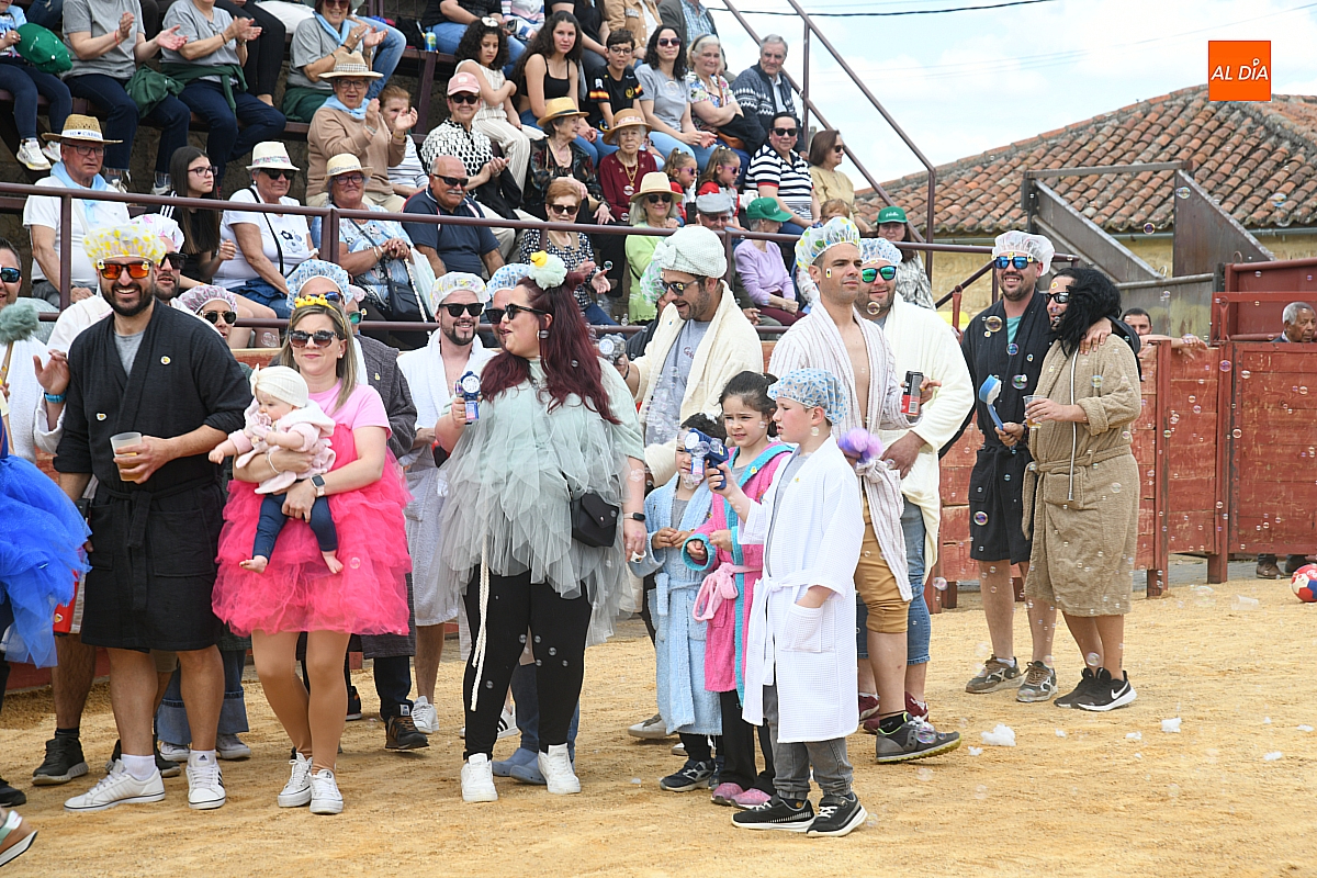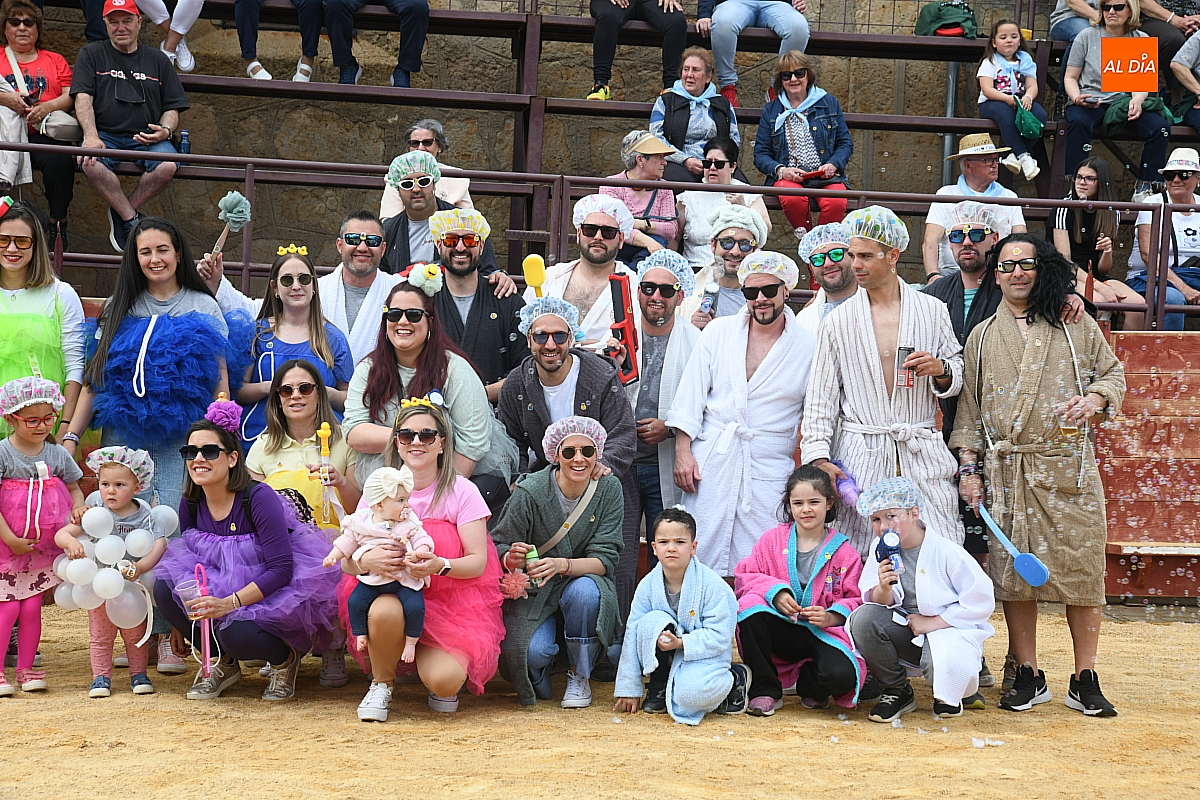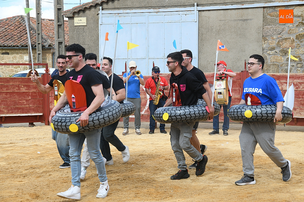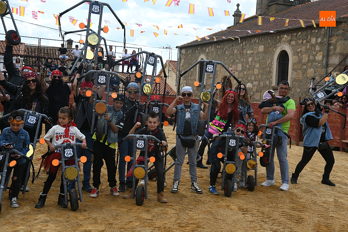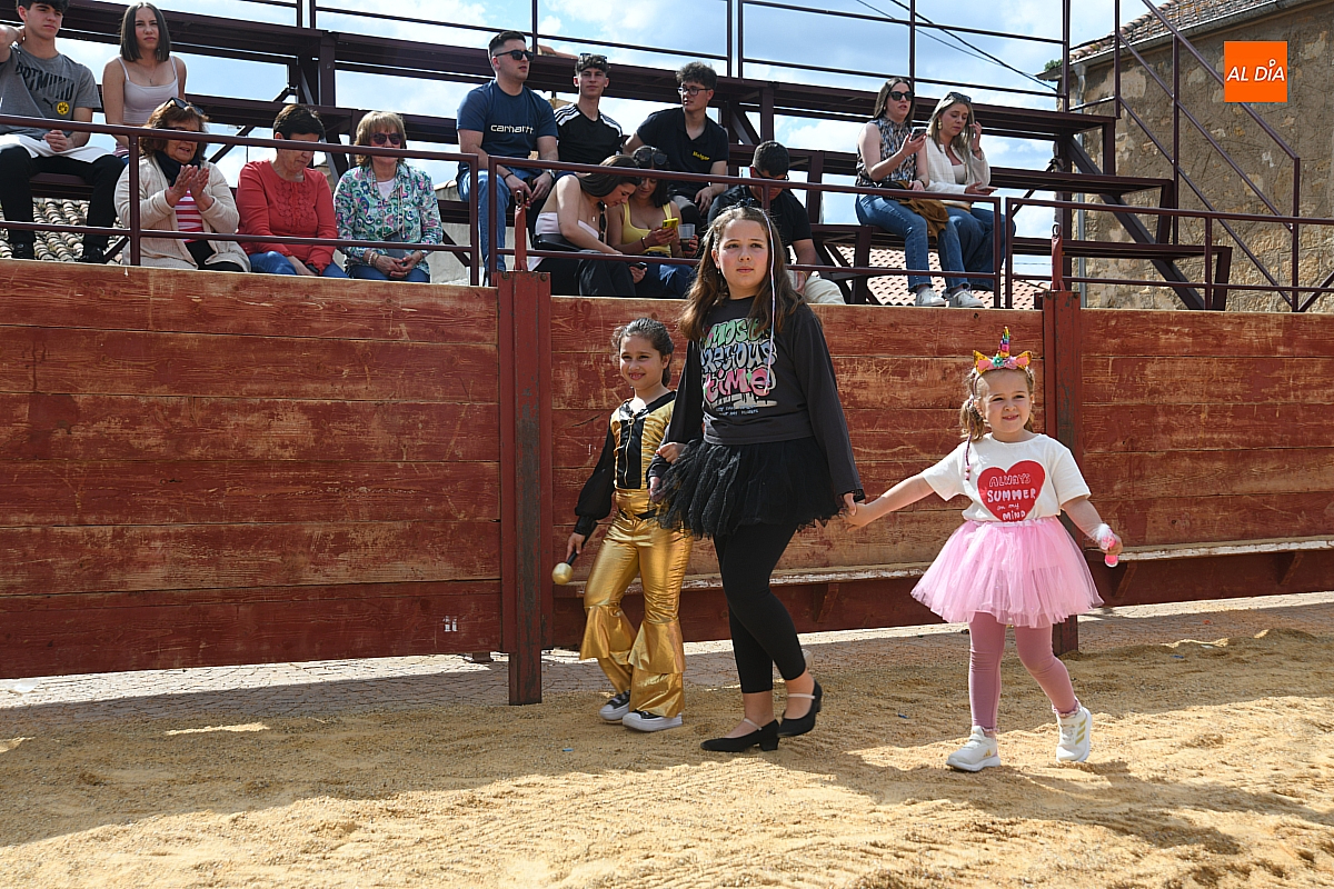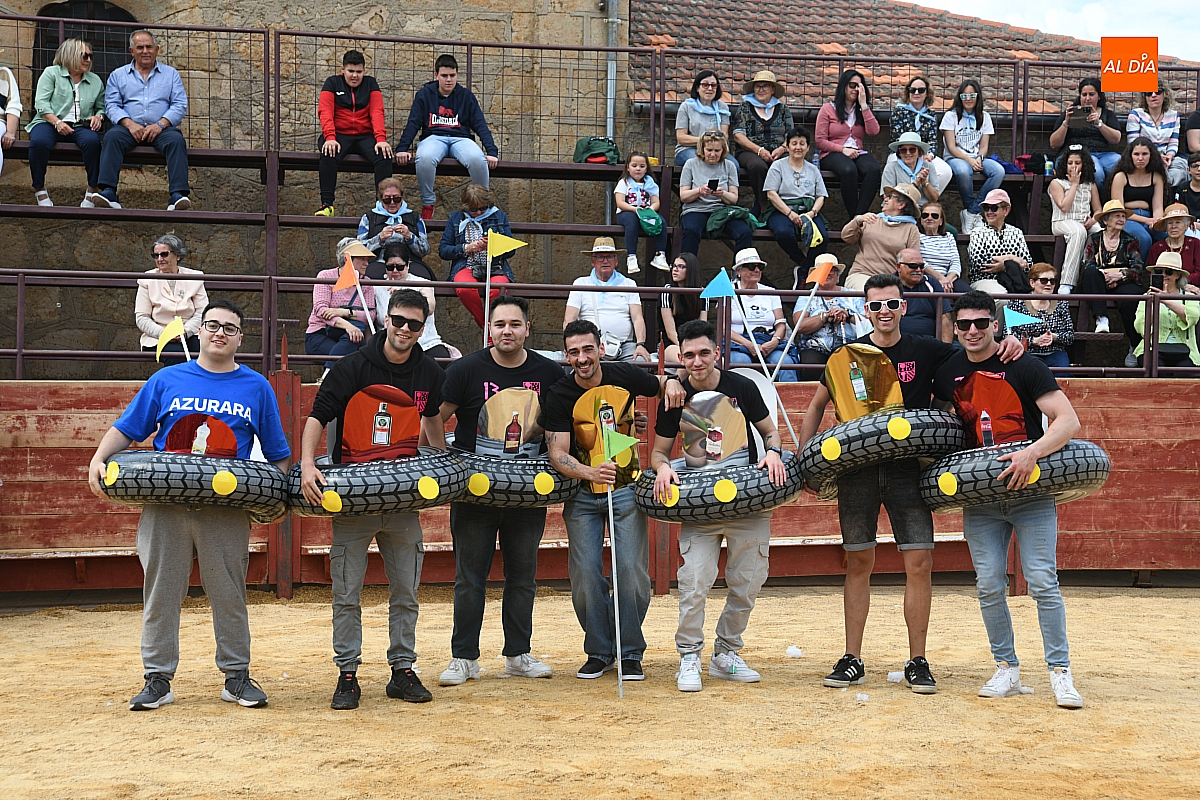 Por la tarde, el pueblo se tiñó de color y creatividad con el desfile de peñas disfrazadas. Grupos de amigos y familias recorrieron las calles con originales atuendos ante el aplauso del público, que llenaba las gradas del improvisado coso taurino. El jurado premió a la peña "Moteros Roqueros" con un lote de embutido ibérico y vino, que seguramente les ayudará a seguir celebrando con buen sabor de boca.