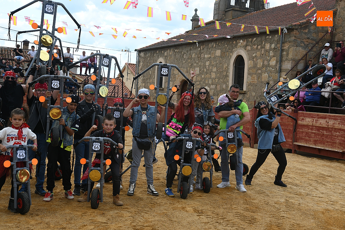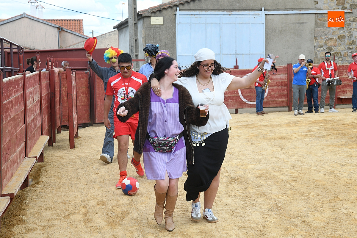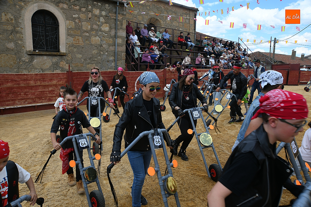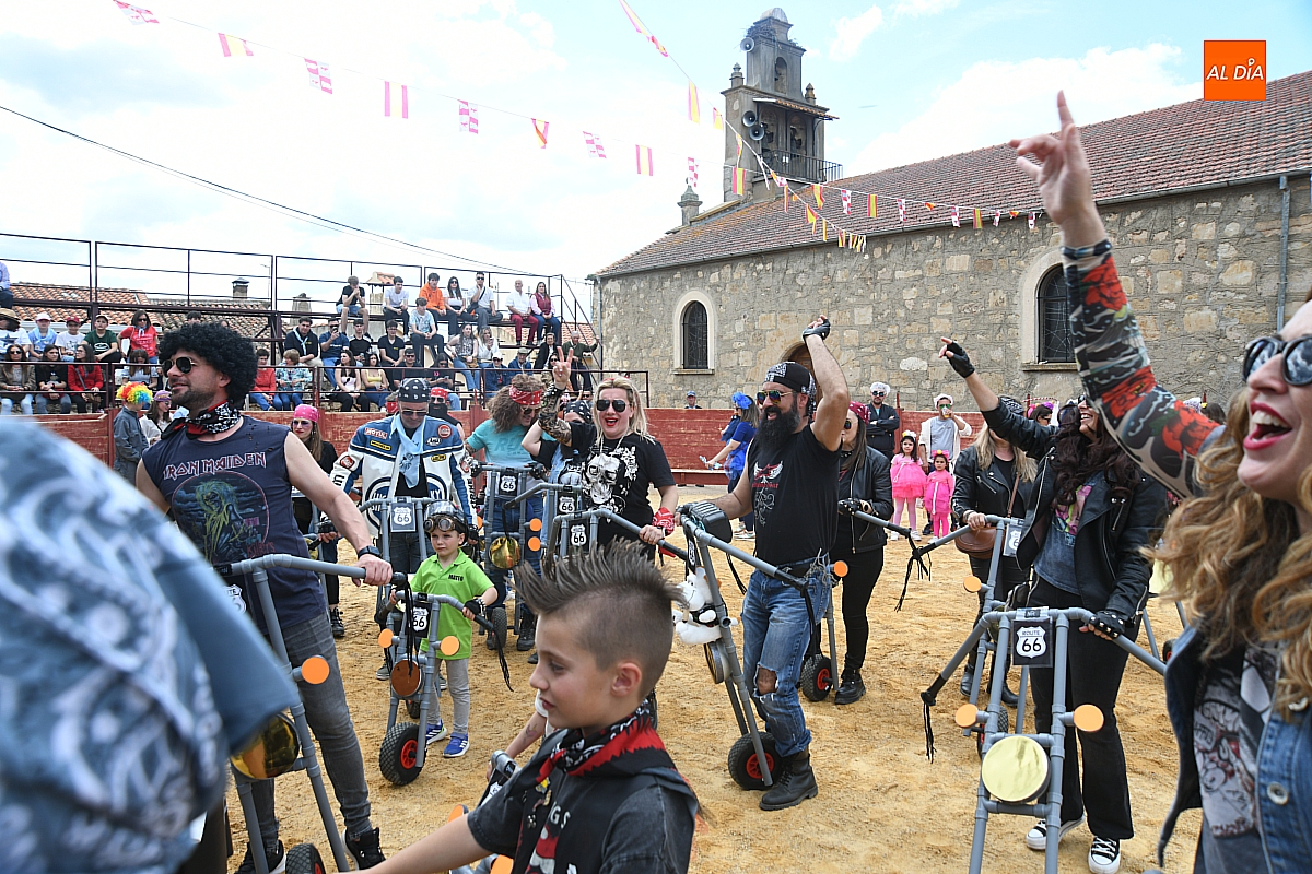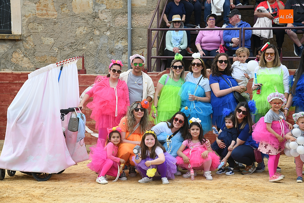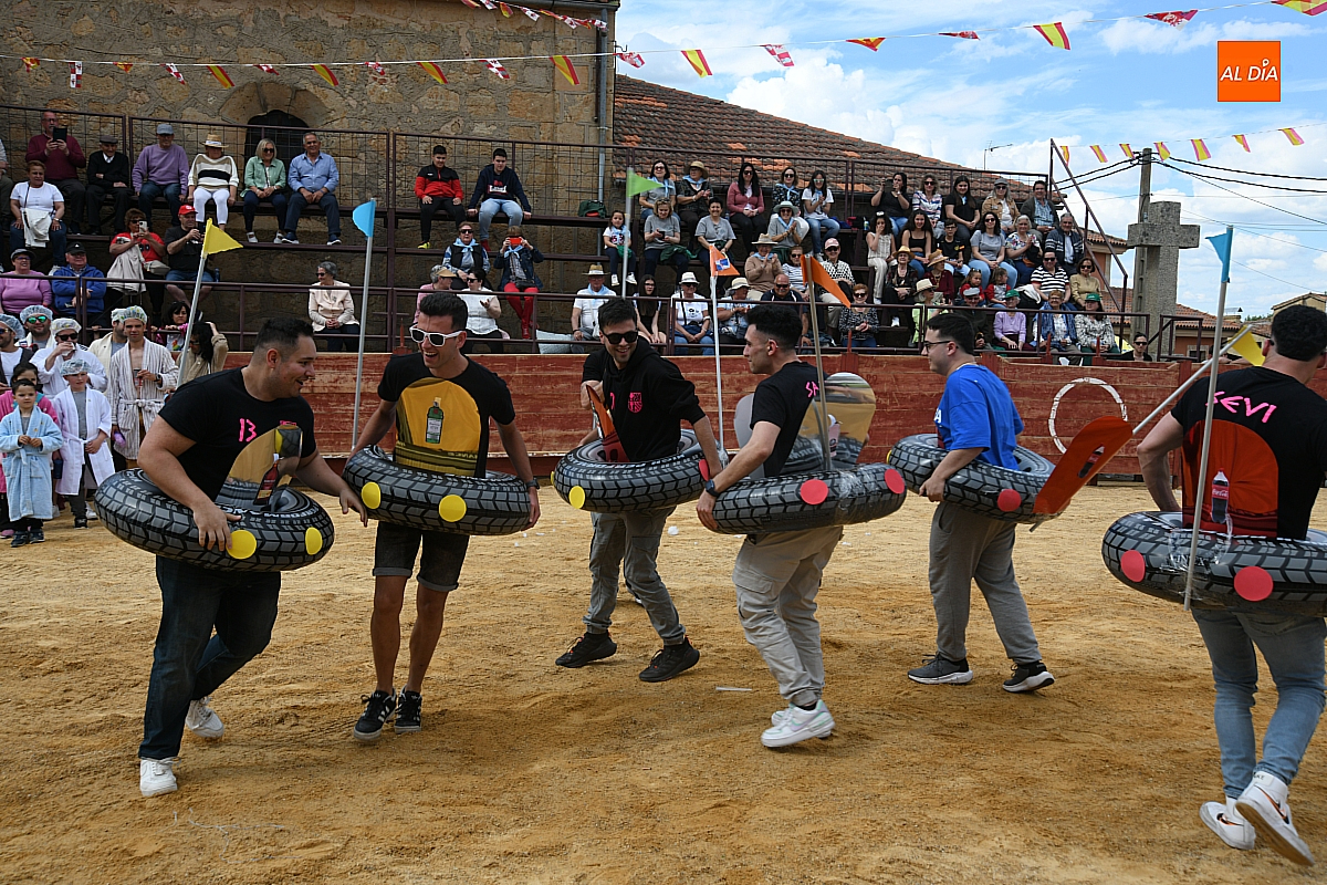 Por la tarde, el pueblo se tiñó de color y creatividad con el desfile de peñas disfrazadas. Grupos de amigos y familias recorrieron las calles con originales atuendos ante el aplauso del público, que llenaba las gradas del improvisado coso taurino. El jurado premió a la peña "Moteros Roqueros" con un lote de embutido ibérico y vino, que seguramente les ayudará a seguir celebrando con buen sabor de boca.