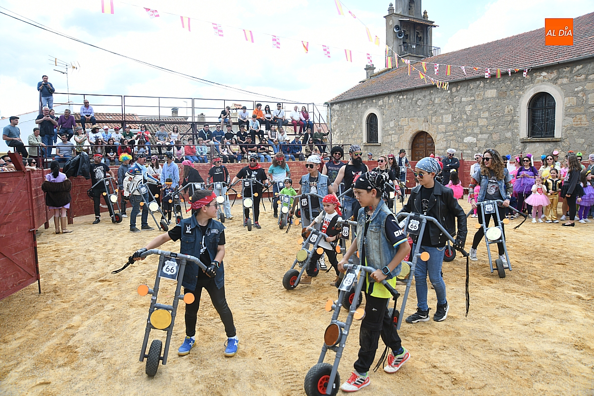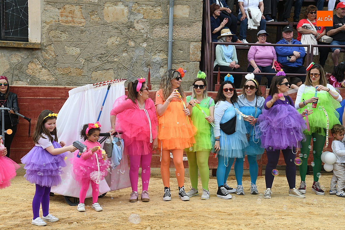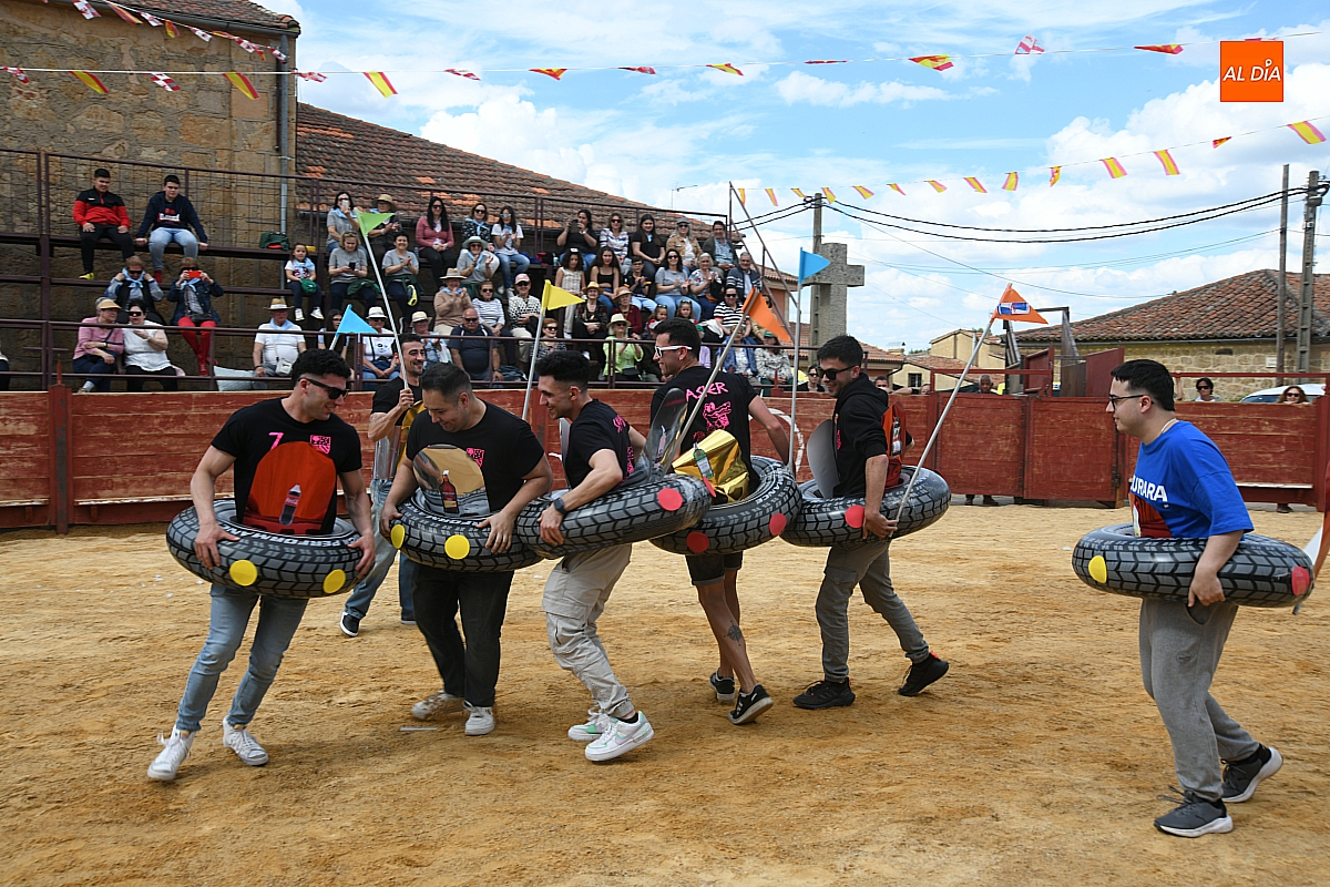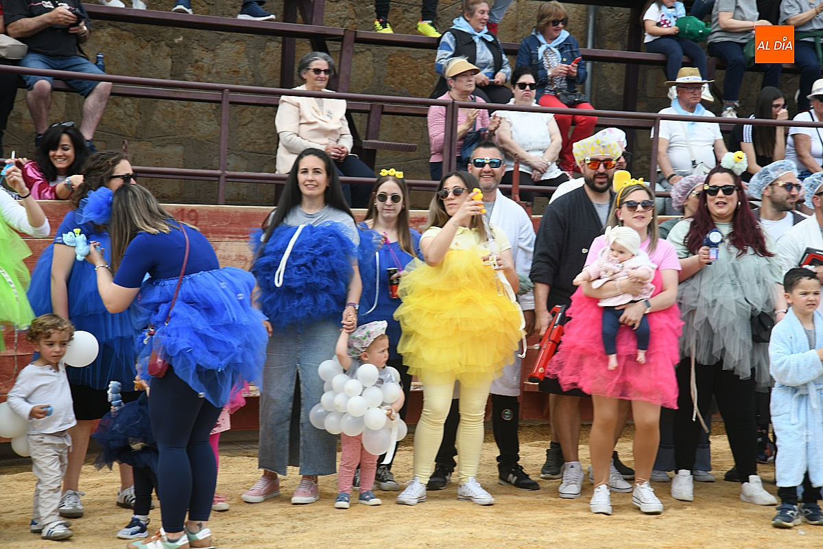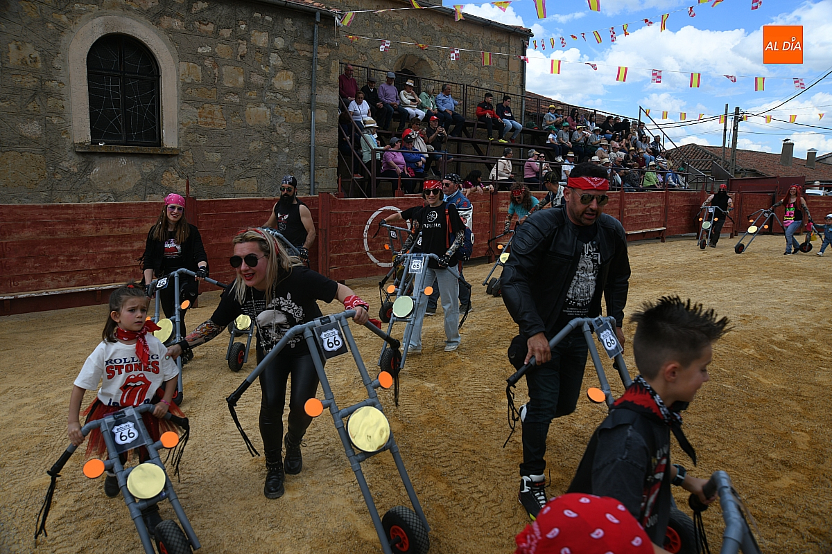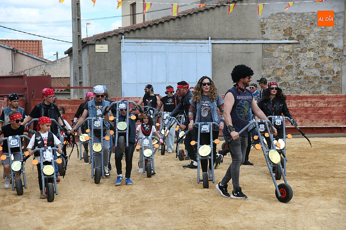 Por la tarde, el pueblo se tiñó de color y creatividad con el desfile de peñas disfrazadas. Grupos de amigos y familias recorrieron las calles con originales atuendos ante el aplauso del público, que llenaba las gradas del improvisado coso taurino. El jurado premió a la peña "Moteros Roqueros" con un lote de embutido ibérico y vino, que seguramente les ayudará a seguir celebrando con buen sabor de boca.