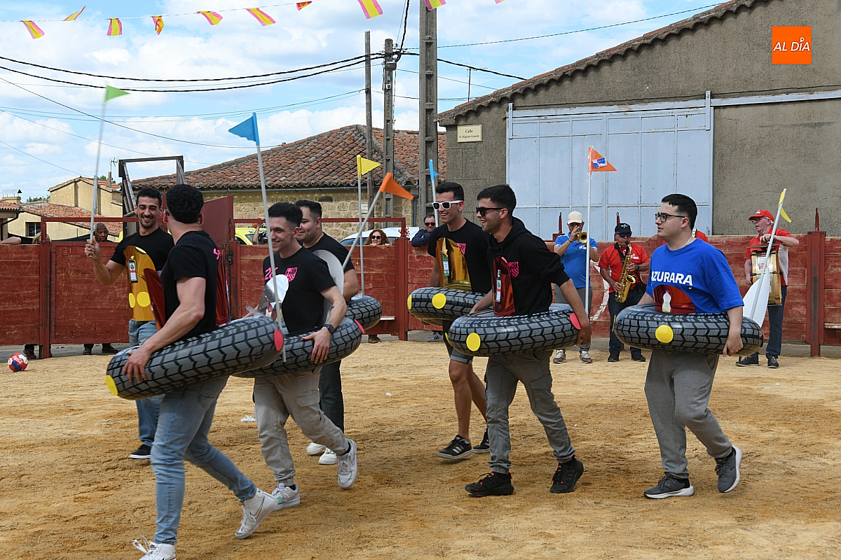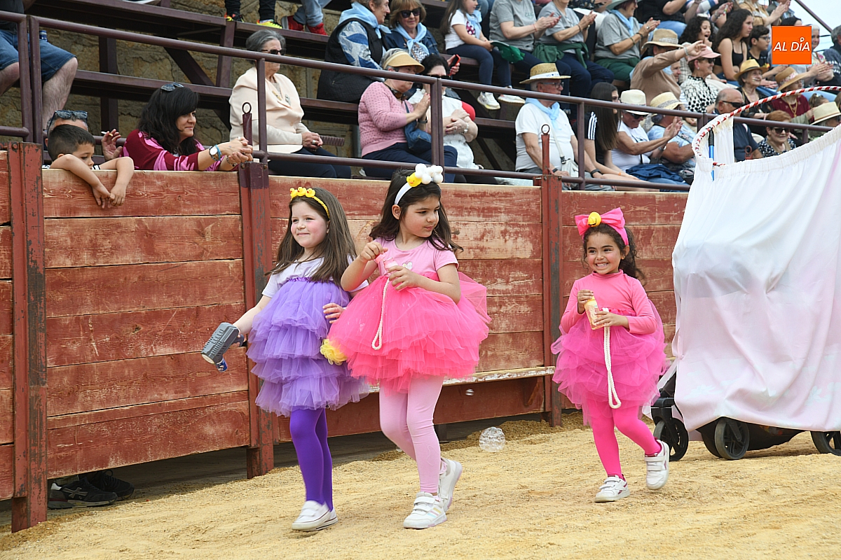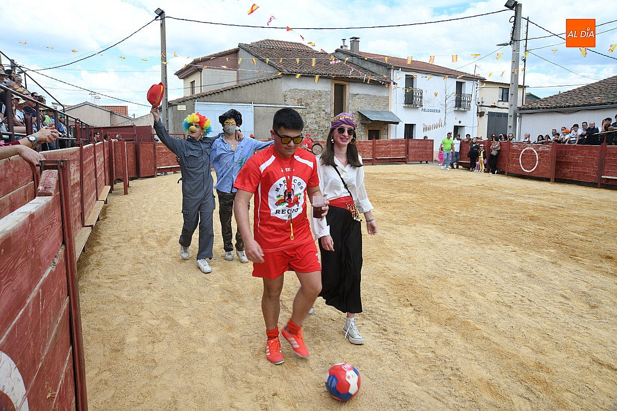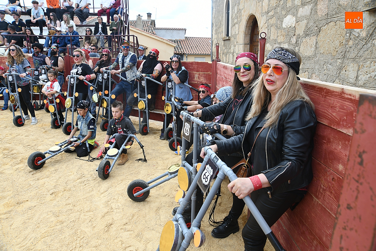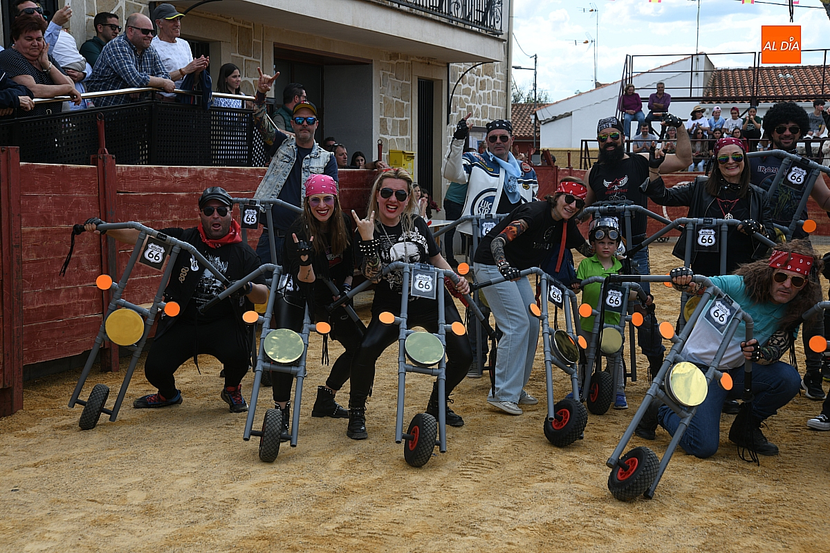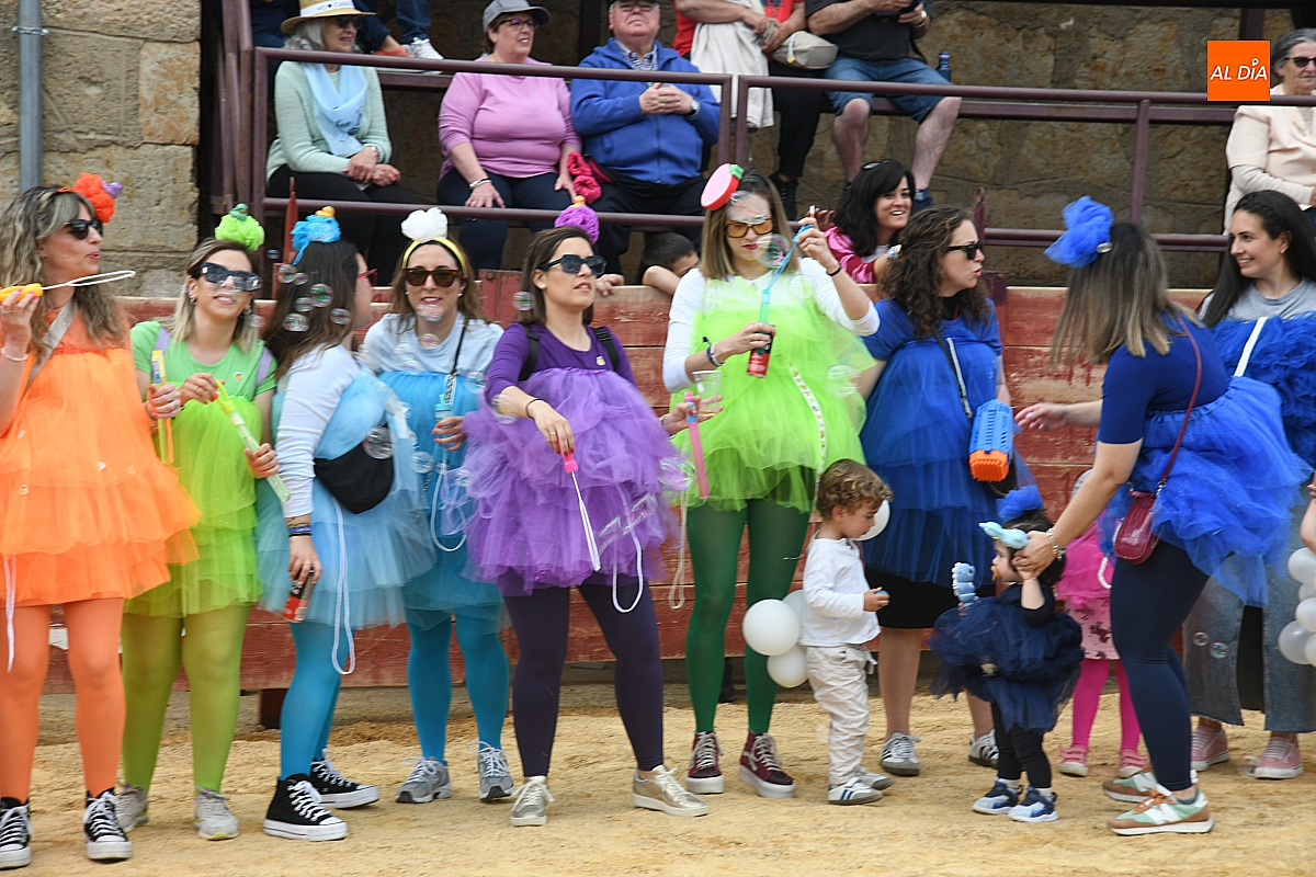 Por la tarde, el pueblo se tiñó de color y creatividad con el desfile de peñas disfrazadas. Grupos de amigos y familias recorrieron las calles con originales atuendos ante el aplauso del público, que llenaba las gradas del improvisado coso taurino. El jurado premió a la peña "Moteros Roqueros" con un lote de embutido ibérico y vino, que seguramente les ayudará a seguir celebrando con buen sabor de boca.
