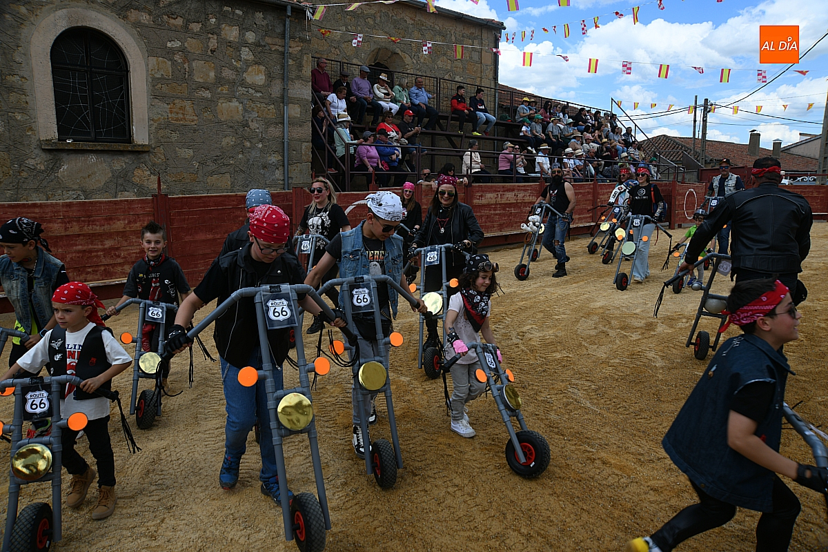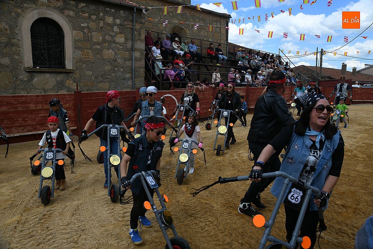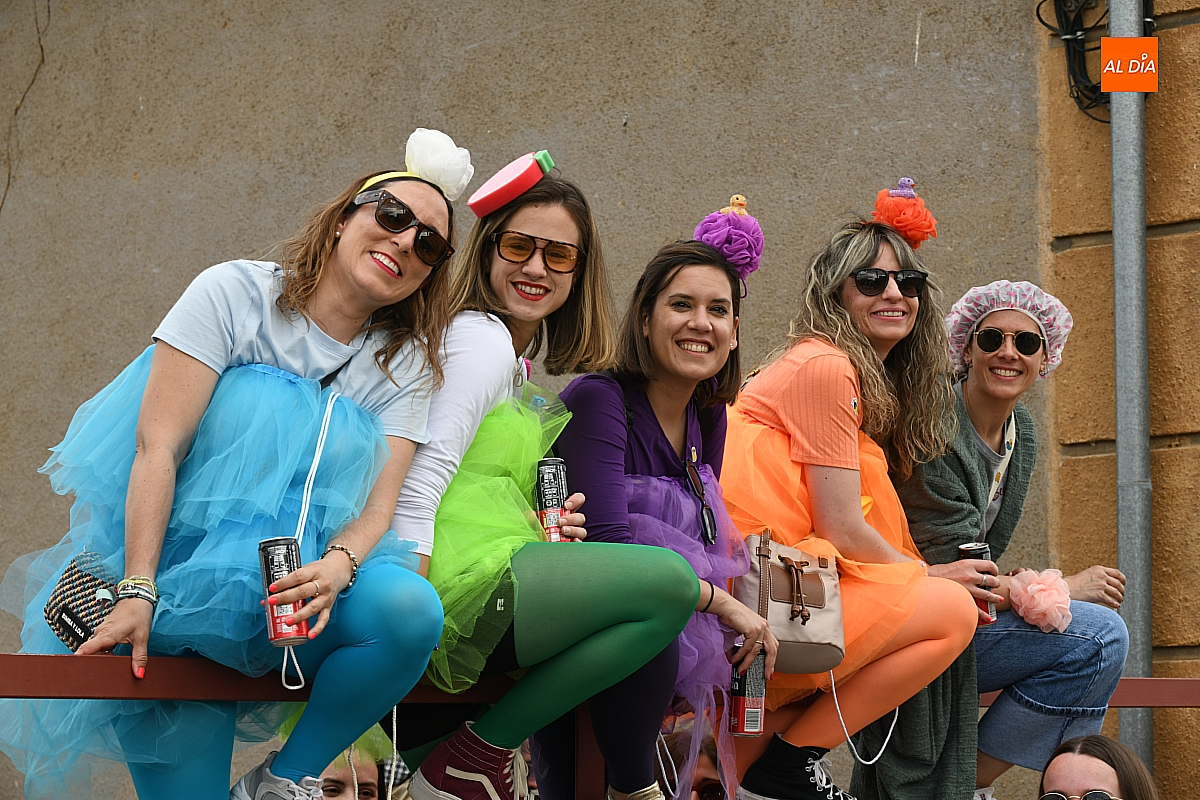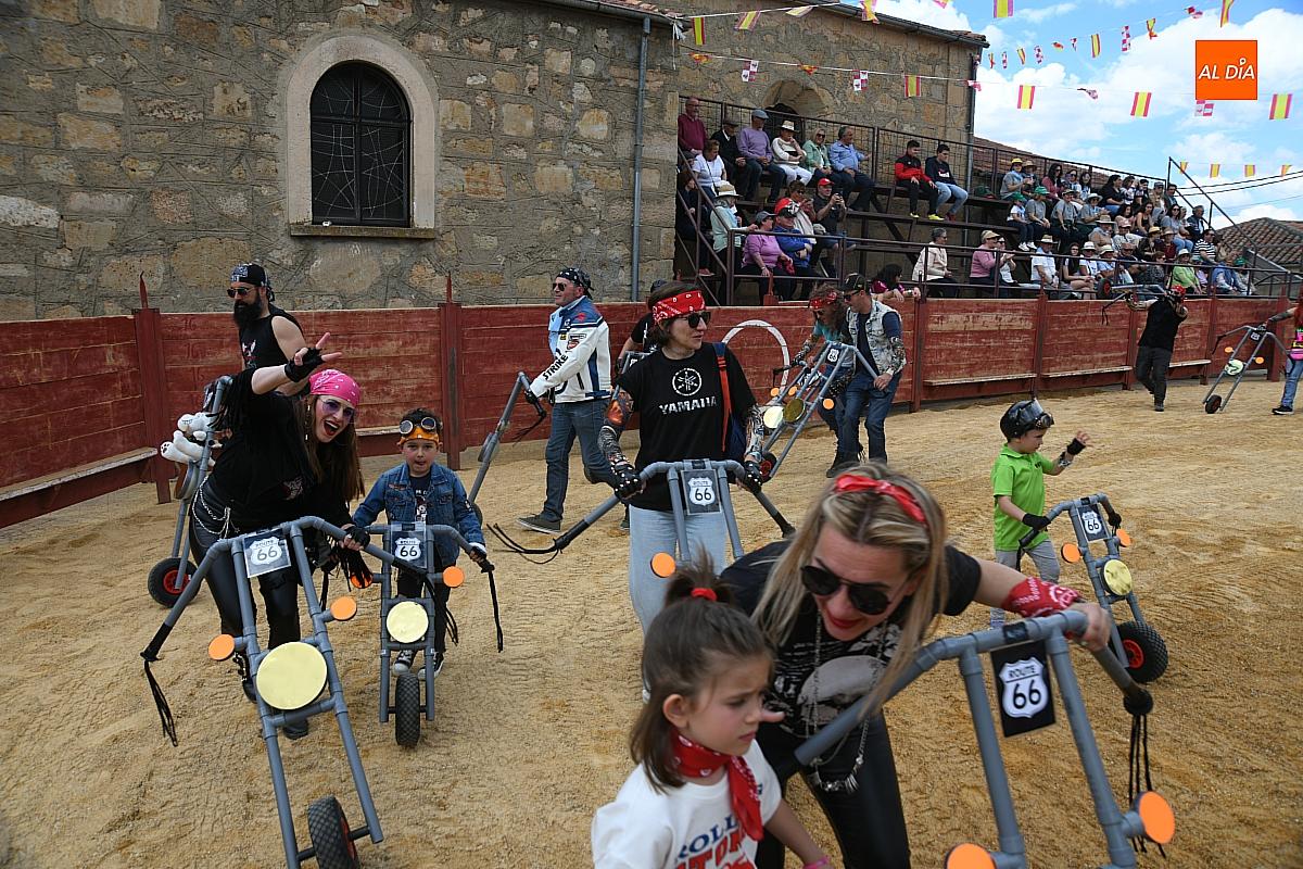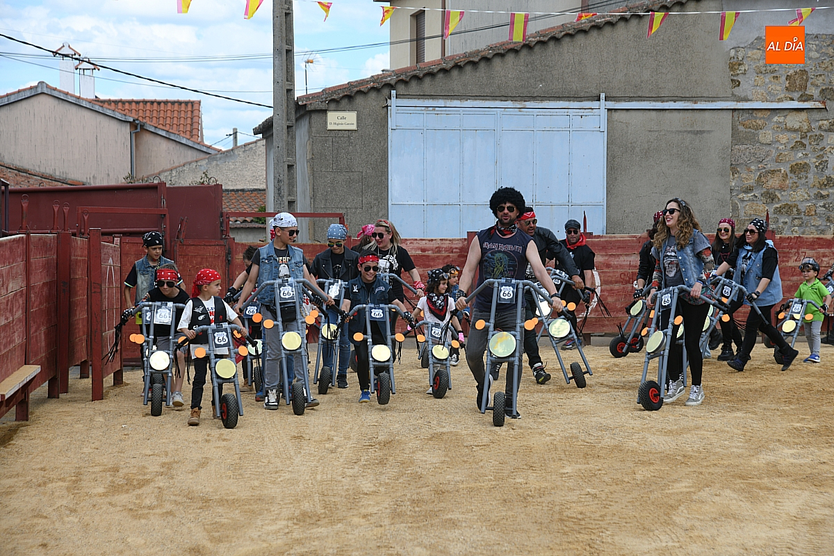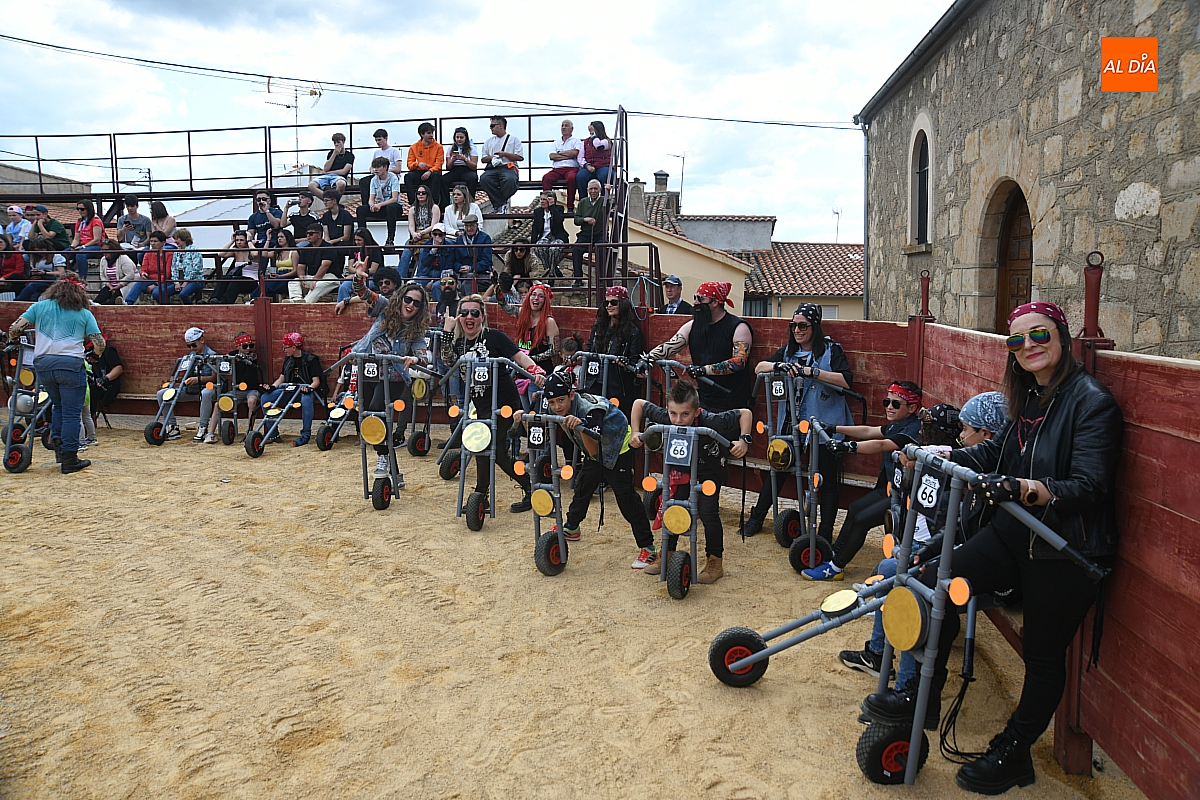 Por la tarde, el pueblo se tiñó de color y creatividad con el desfile de peñas disfrazadas. Grupos de amigos y familias recorrieron las calles con originales atuendos ante el aplauso del público, que llenaba las gradas del improvisado coso taurino. El jurado premió a la peña "Moteros Roqueros" con un lote de embutido ibérico y vino, que seguramente les ayudará a seguir celebrando con buen sabor de boca.