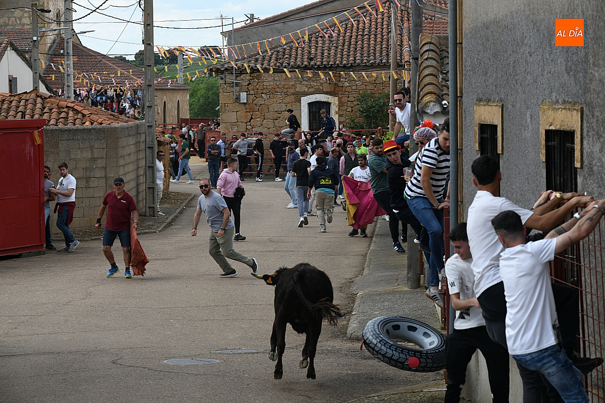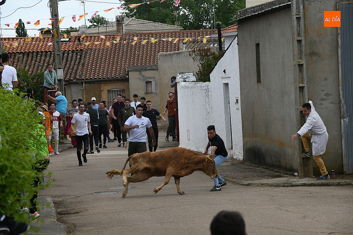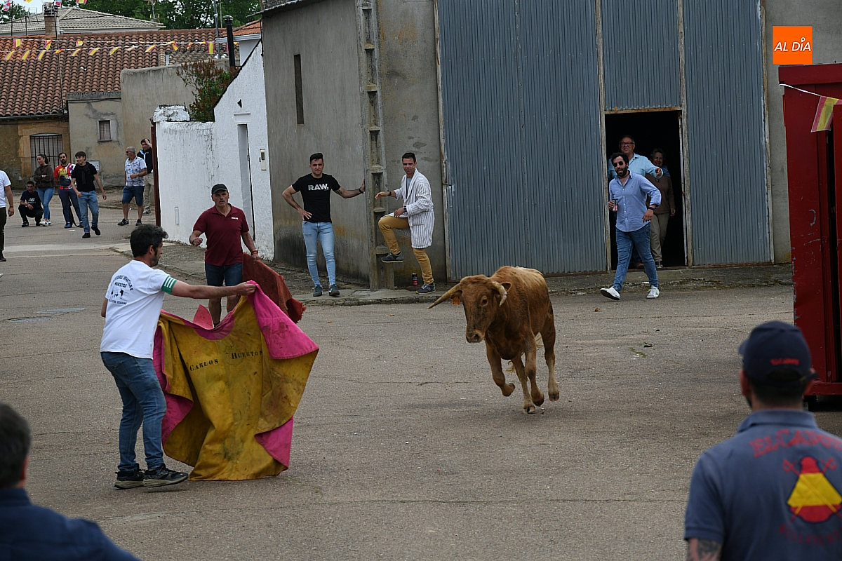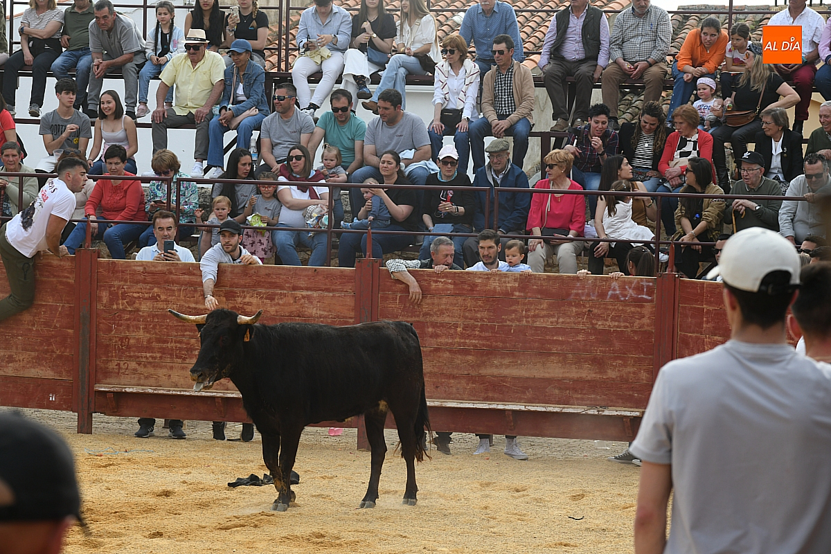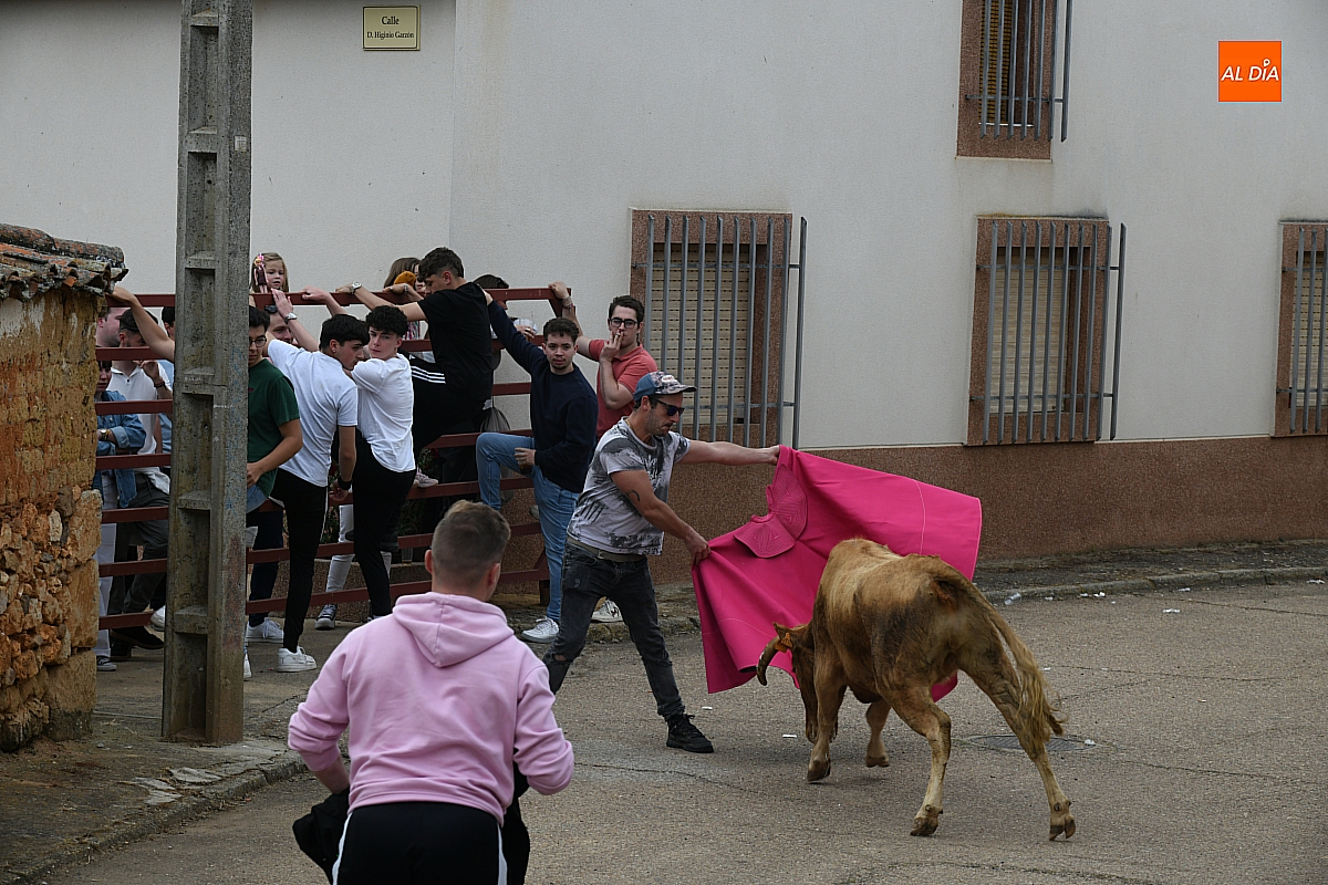 El desfile sirvió de antesala para uno de los momentos más esperados: la capea popular. Cuatro vaquillas fueron soltadas por la calle Calvo Sotelo, en un recorrido que comenzó y terminó en la plaza situada entre el ayuntamiento y la iglesia de La Purísima, convertida por unos días en plaza de toros. Las reses ofrecieron un gran espectáculo, con constantes carreras que mantuvieron a participantes y espectadores en vilo.
