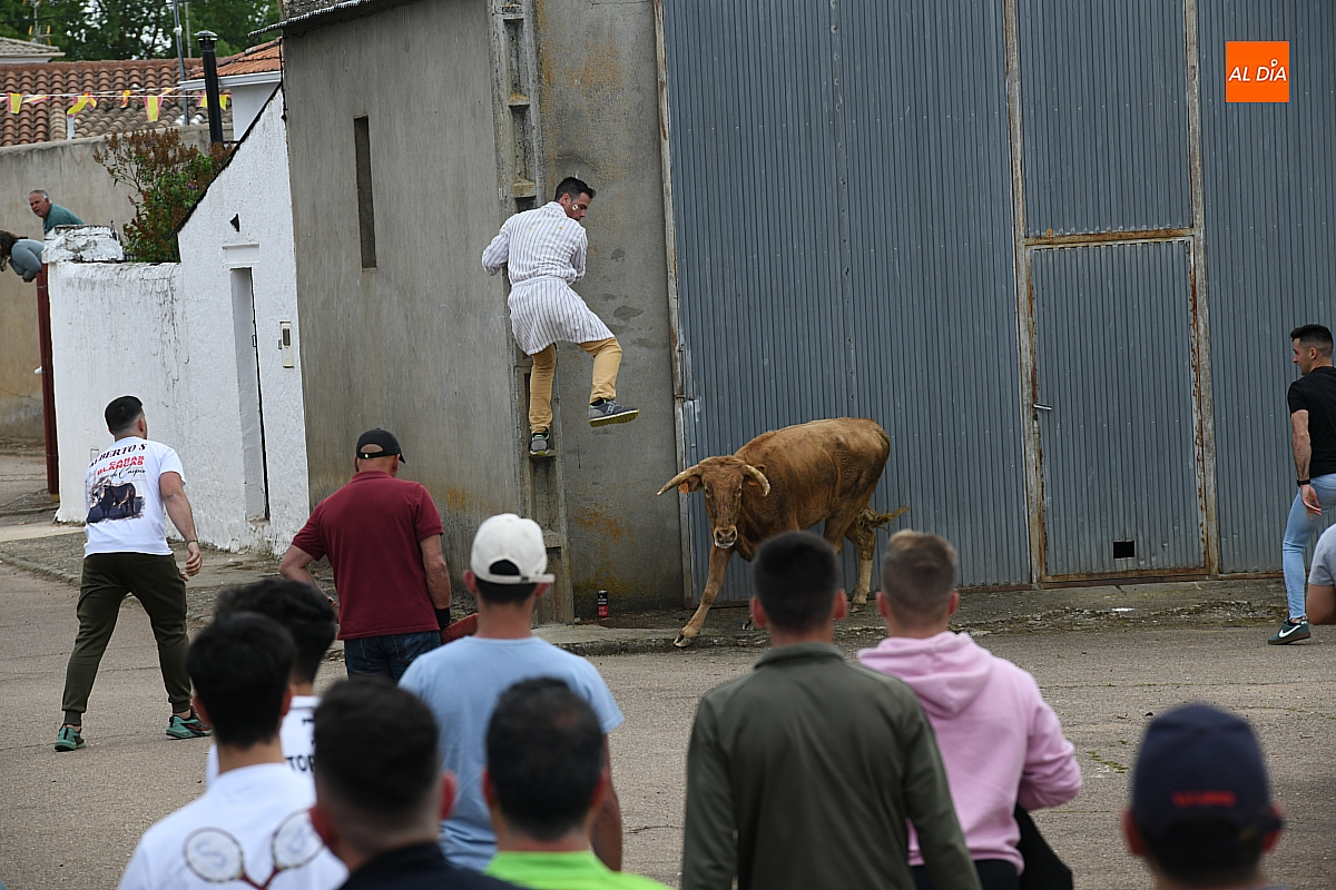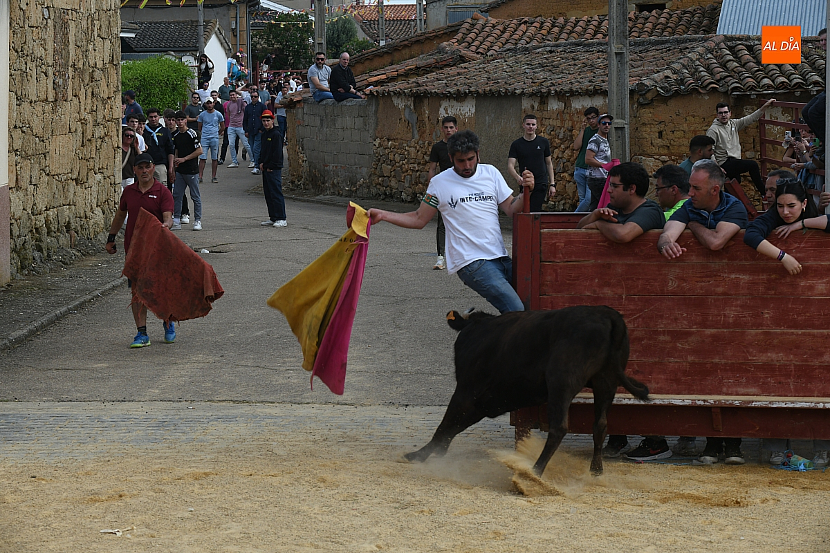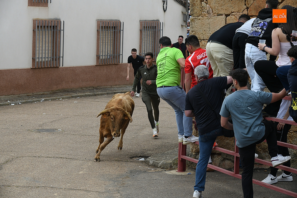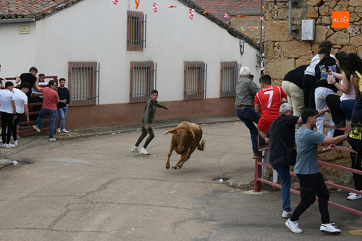 El desfile sirvió de antesala para uno de los momentos más esperados: la capea popular. Cuatro vaquillas fueron soltadas por la calle Calvo Sotelo, en un recorrido que comenzó y terminó en la plaza situada entre el ayuntamiento y la iglesia de La Purísima, convertida por unos días en plaza de toros. Las reses ofrecieron un gran espectáculo, con constantes carreras que mantuvieron a participantes y espectadores en vilo.