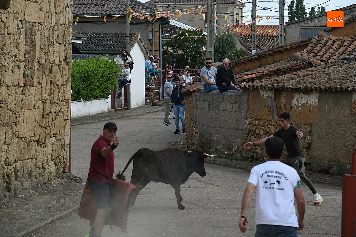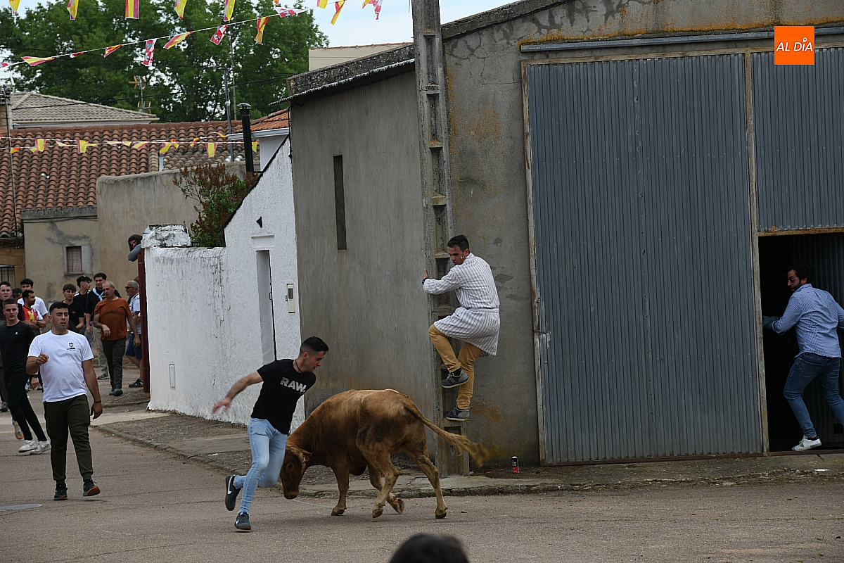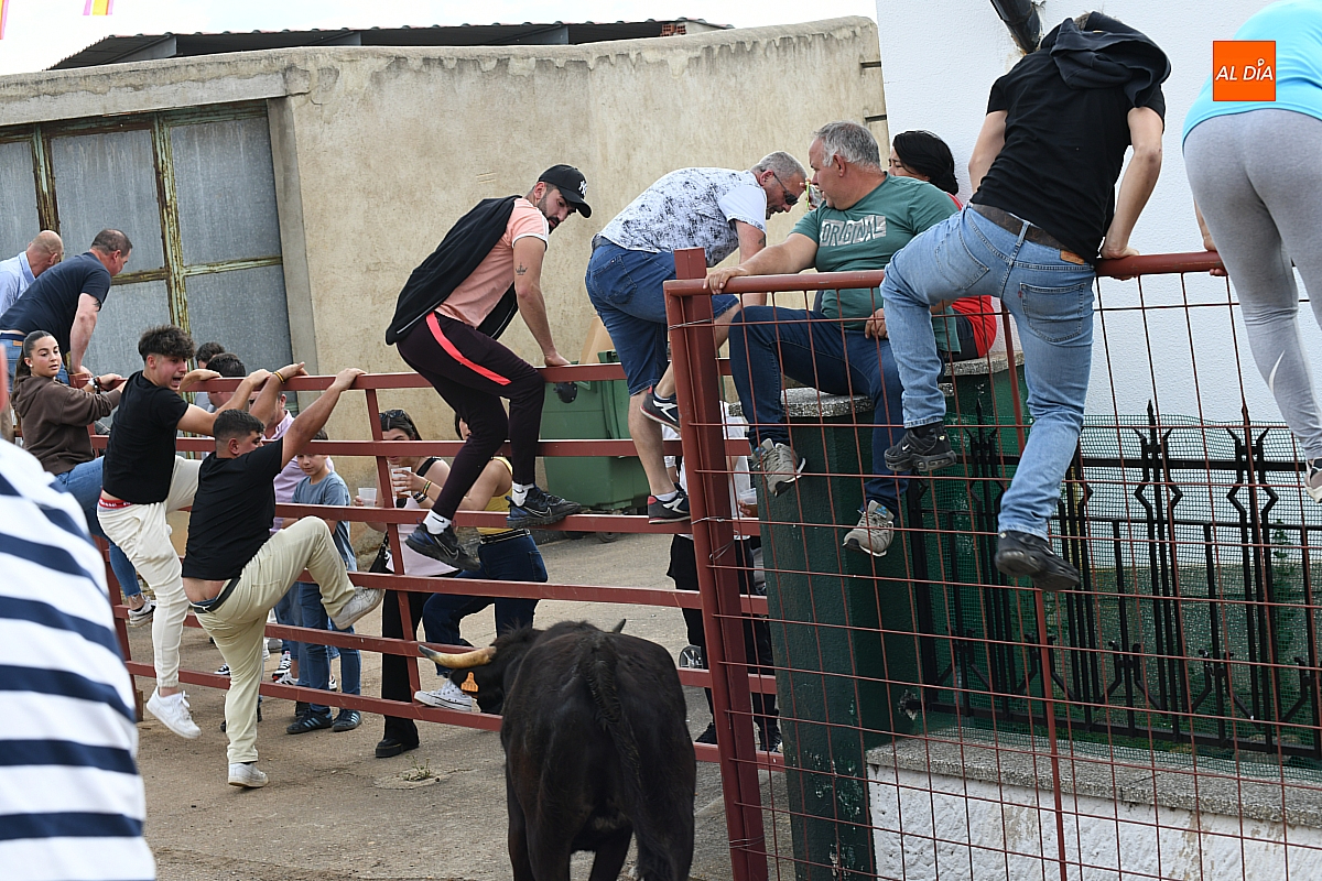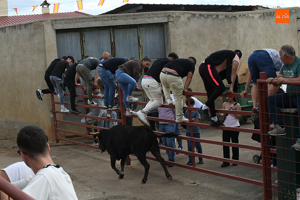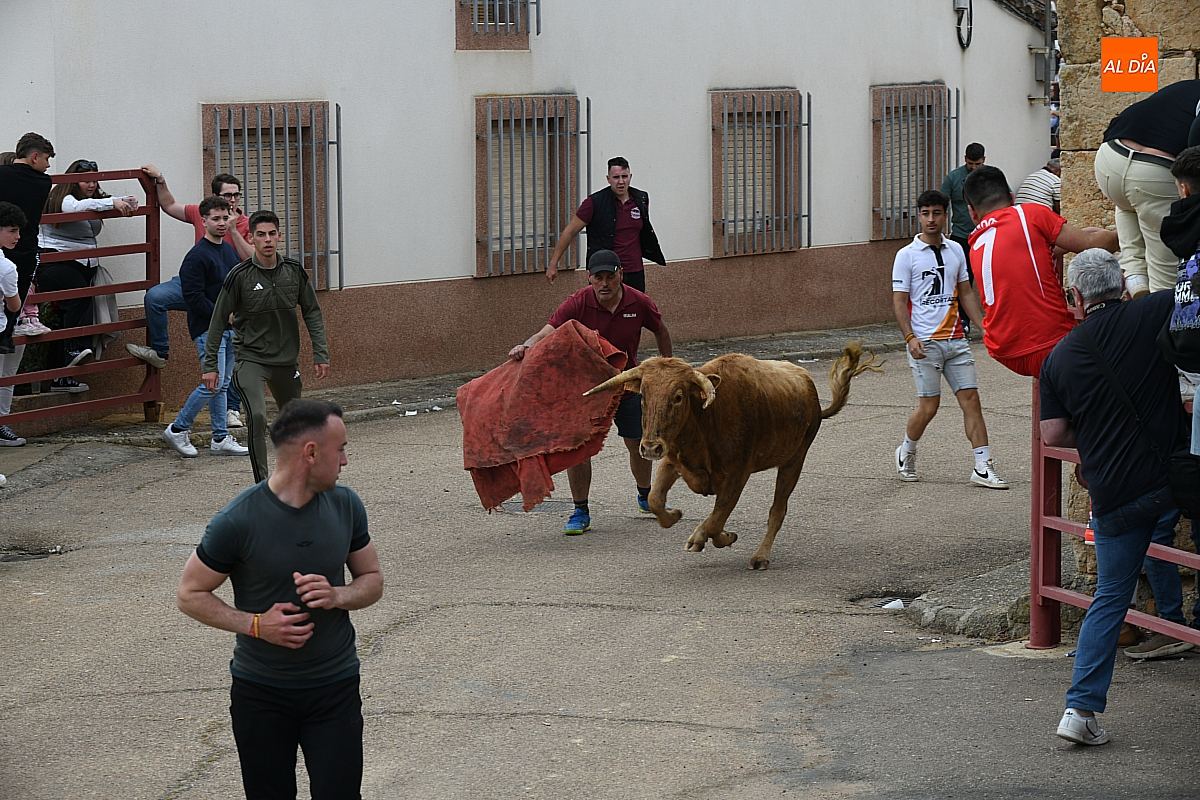 El desfile sirvió de antesala para uno de los momentos más esperados: la capea popular. Cuatro vaquillas fueron soltadas por la calle Calvo Sotelo, en un recorrido que comenzó y terminó en la plaza situada entre el ayuntamiento y la iglesia de La Purísima, convertida por unos días en plaza de toros. Las reses ofrecieron un gran espectáculo, con constantes carreras que mantuvieron a participantes y espectadores en vilo.