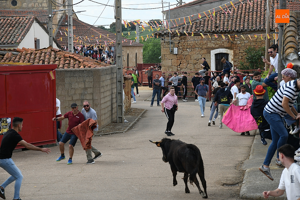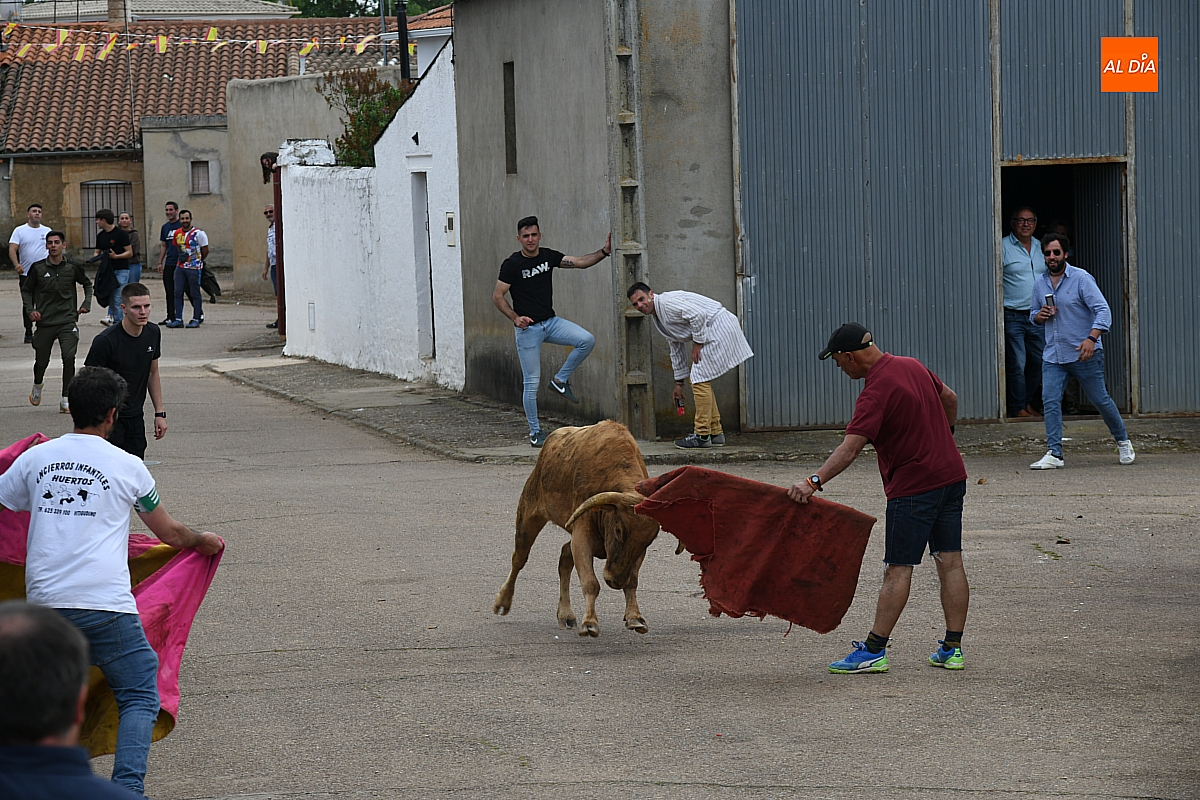 Las peñas salieron con sus disfraces dando paso a una capea de vaquillas por las calles y plaza del poblado