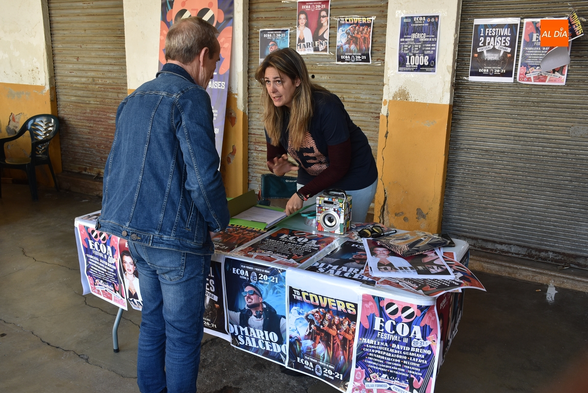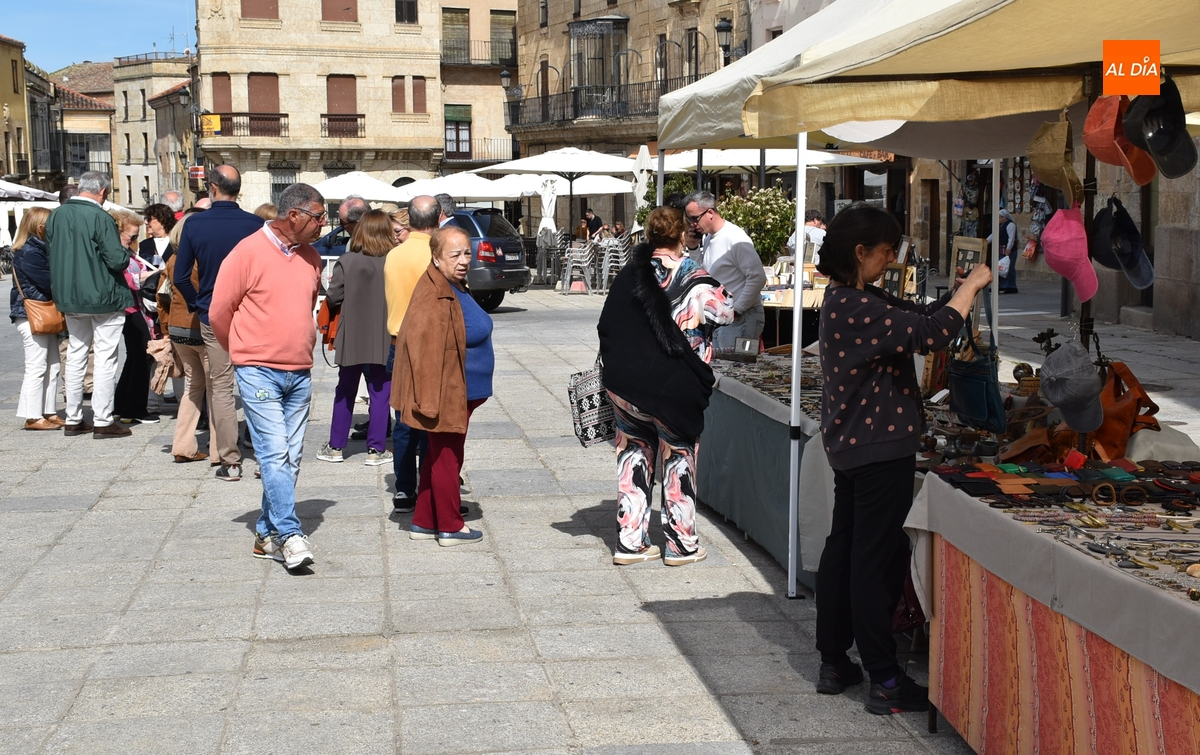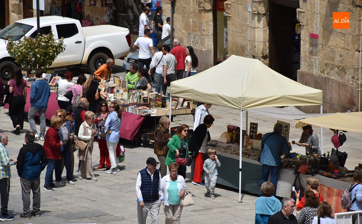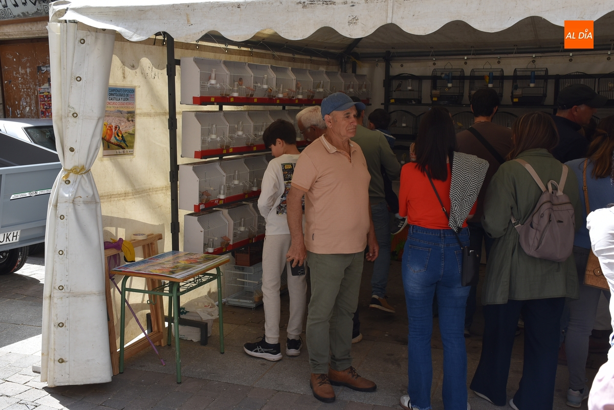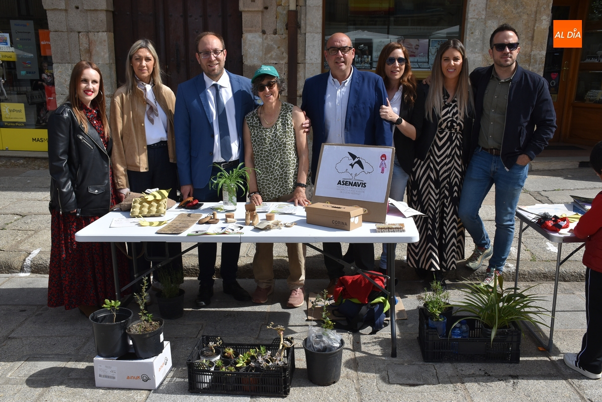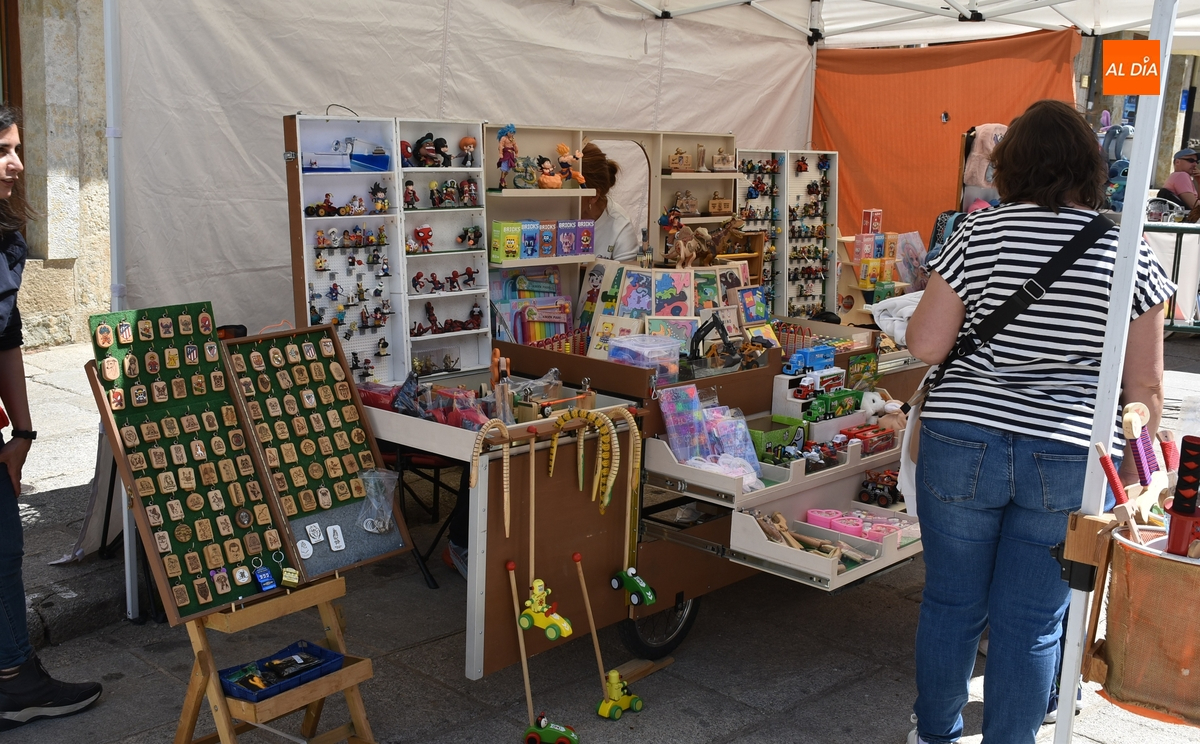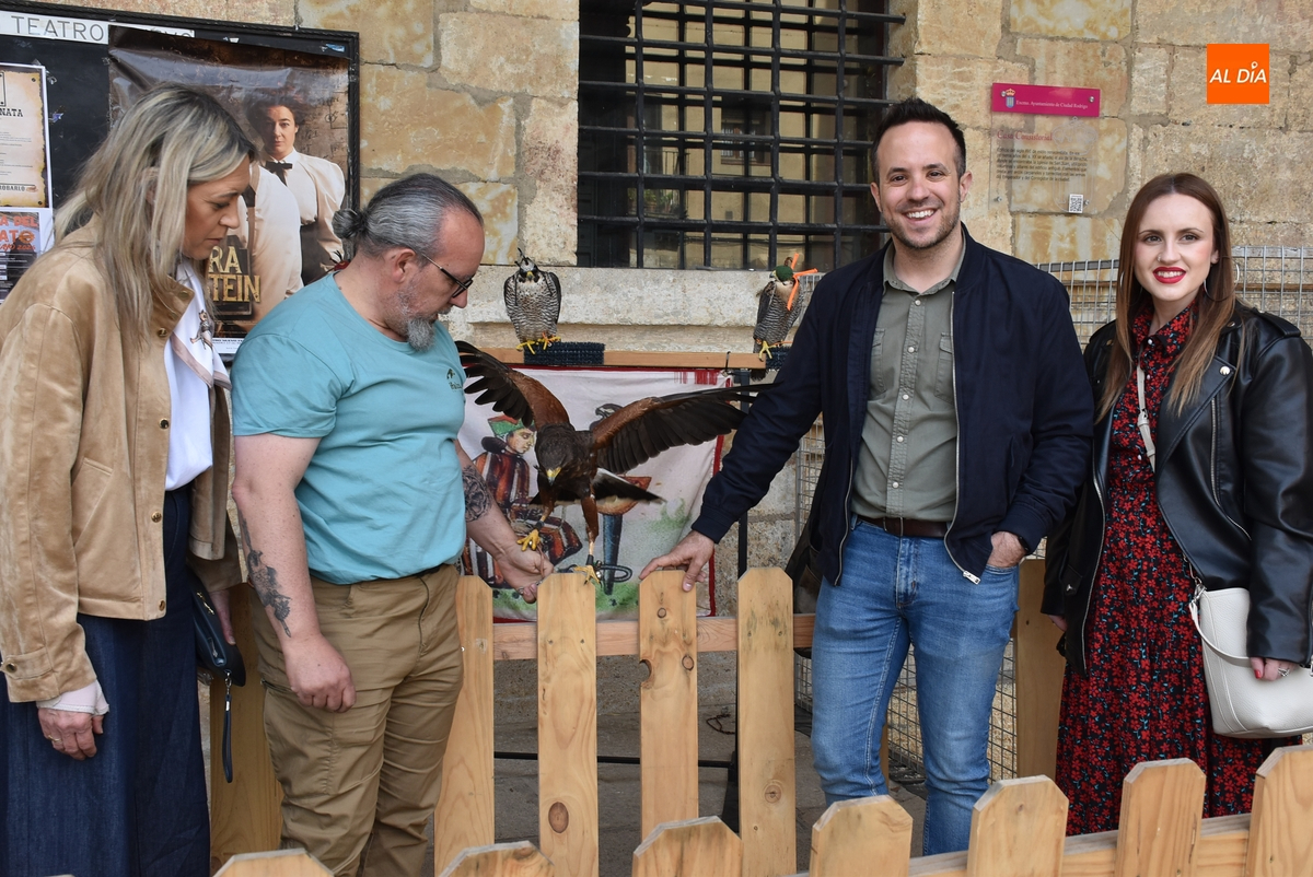 En lo que se refiere a la Plaza Mayor, hubo puestos variados: uno de Asenavis, otro de venta de libros antiguos, otro de camisetas, un par de stands de artesanía variada, etc. En las cercanías estuvieron los elementos propios de la antigua Feria de Mayo (“más enfocados a los niños”, según Joana Veloso), empezando en los soportales de la Casa Consistorial con una muestra de animales de la Granja Escuela La Noria (ocas, gallinas, cabras, etc.) e ifalcon (aves de cetrería).