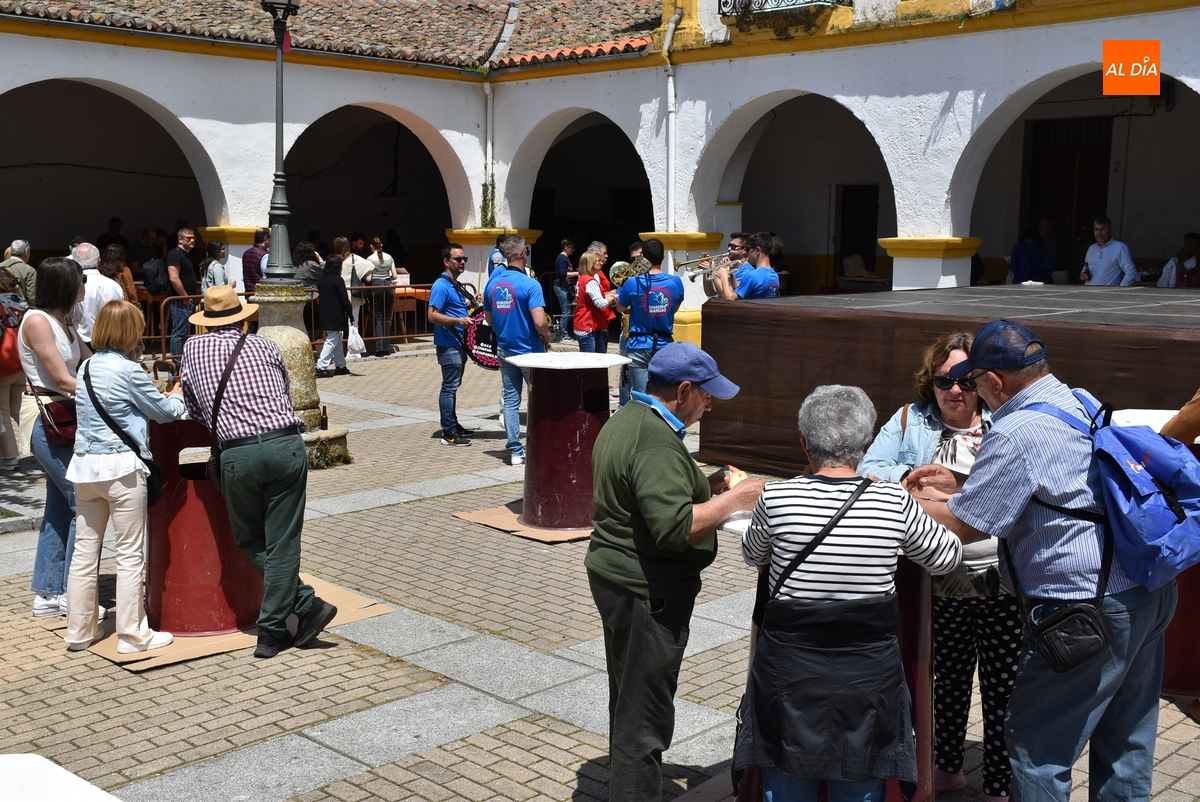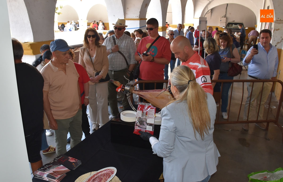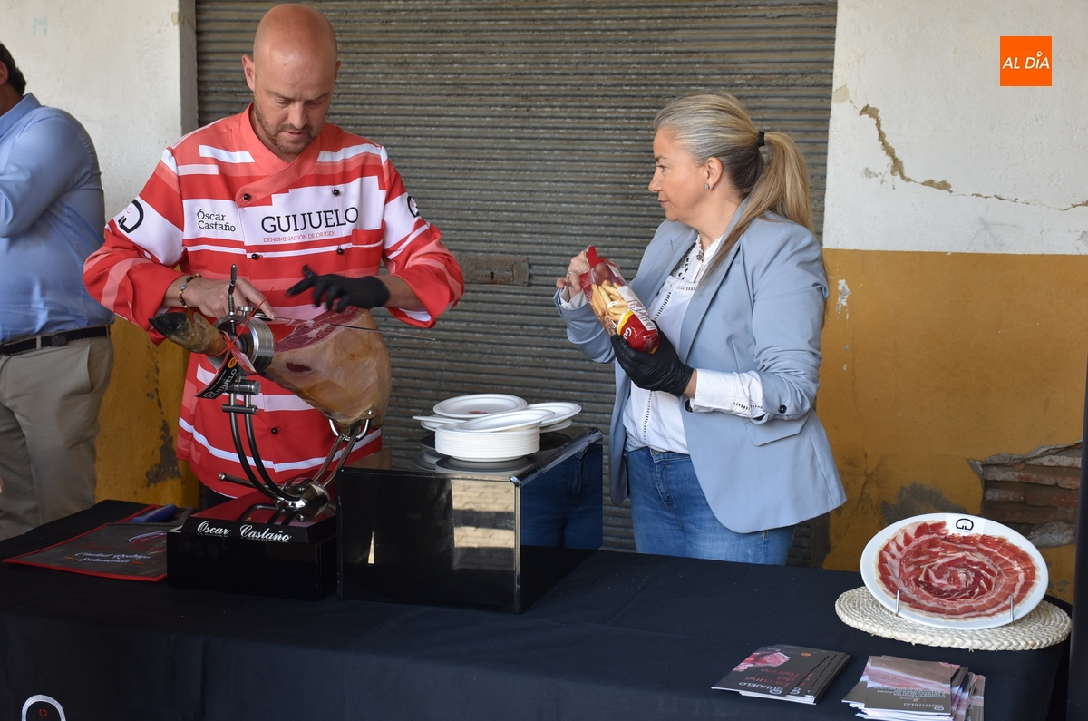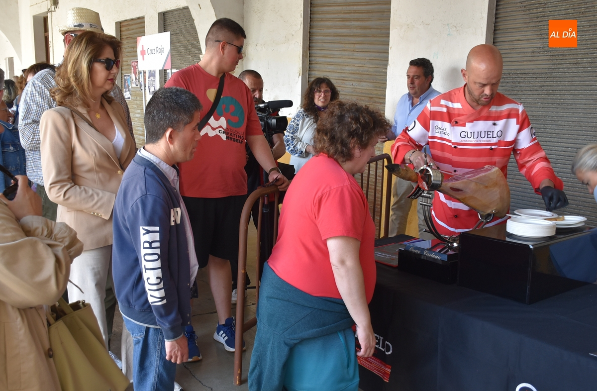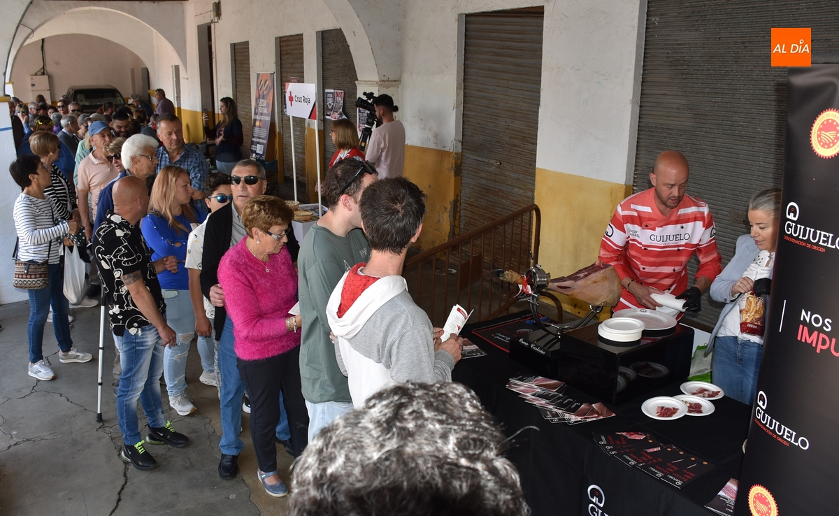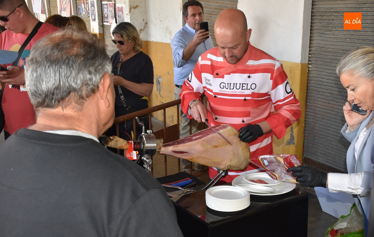 La mañana festiva tuvo dos citas gastronómicas. Por un lado, hubo una degustación a cargo de la D.O.P. Jamón de Guijuelo, encargándose Óscar Castaño de ir cortando jamón para que lo degustasen de forma gratuita todos aquellos que quisieron.