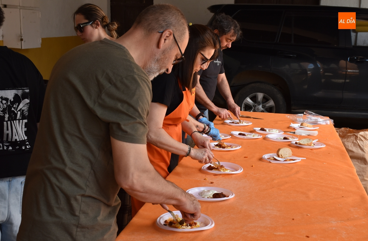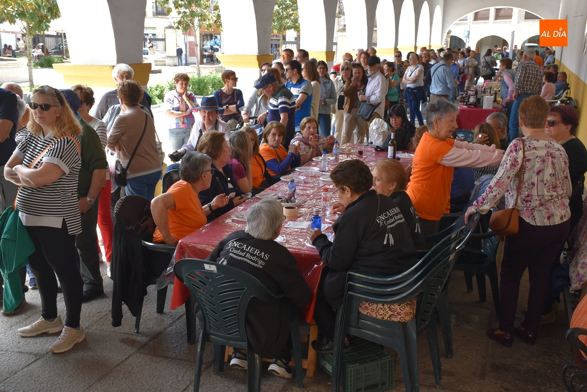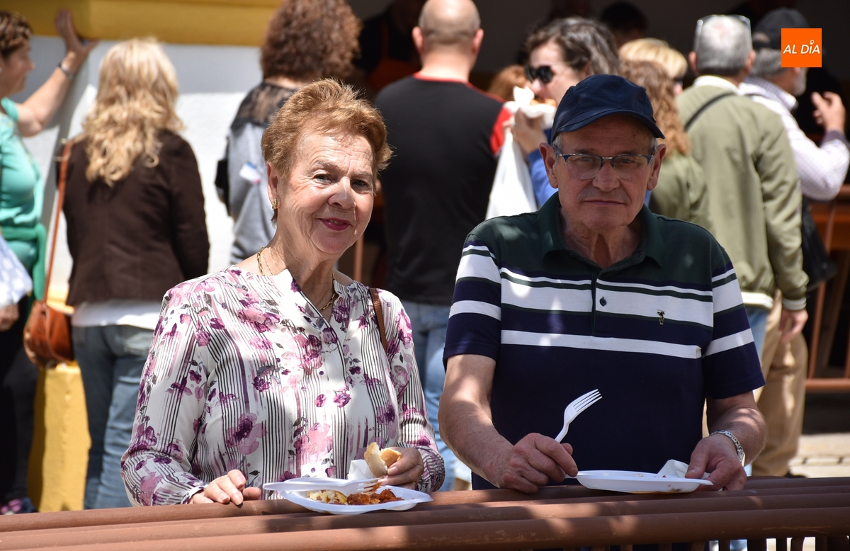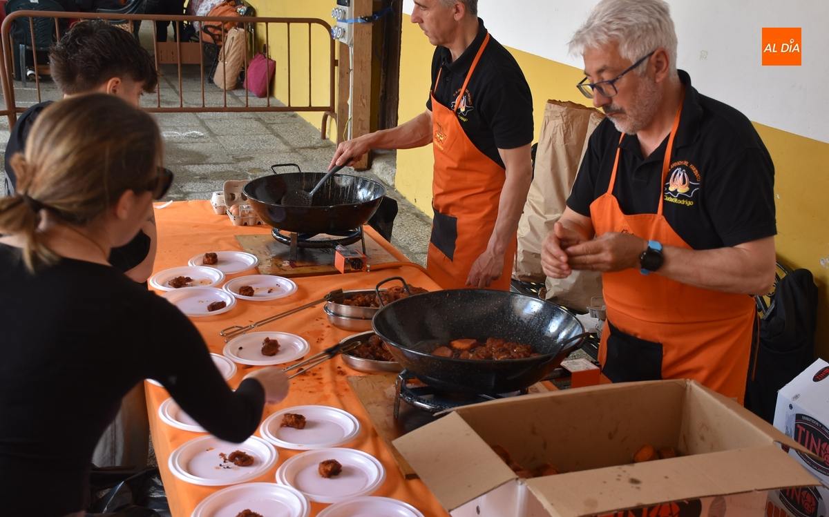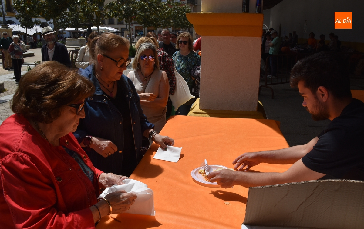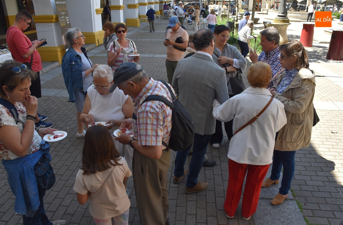 La mañana festiva tuvo dos citas gastronómicas. Por un lado, hubo una degustación a cargo de la D.O.P. Jamón de Guijuelo, encargándose Óscar Castaño de ir cortando jamón para que lo degustasen de forma gratuita todos aquellos que quisieron.
