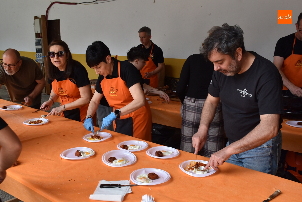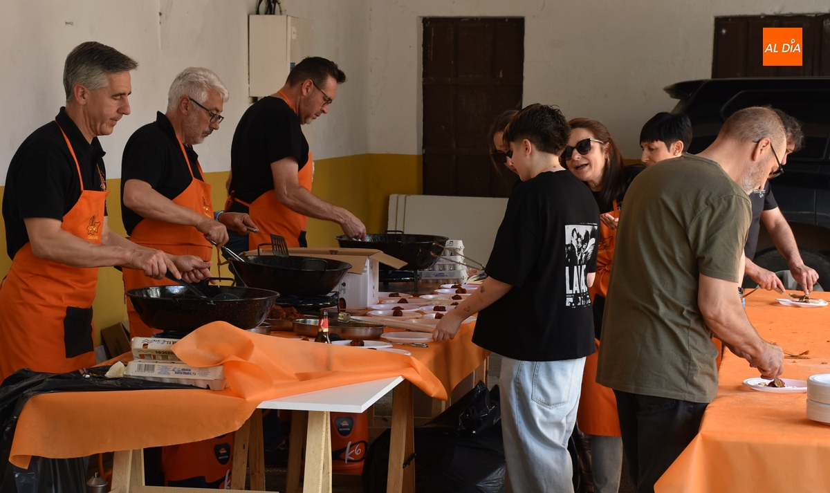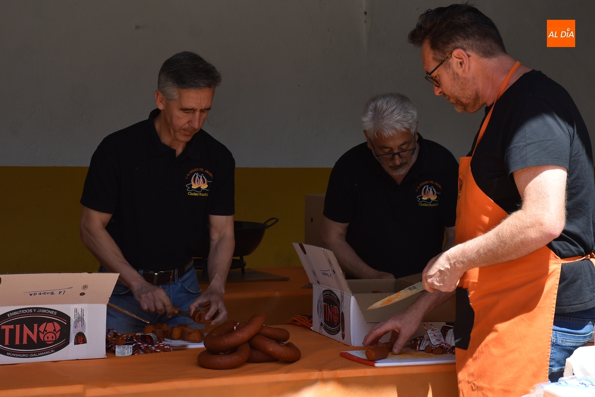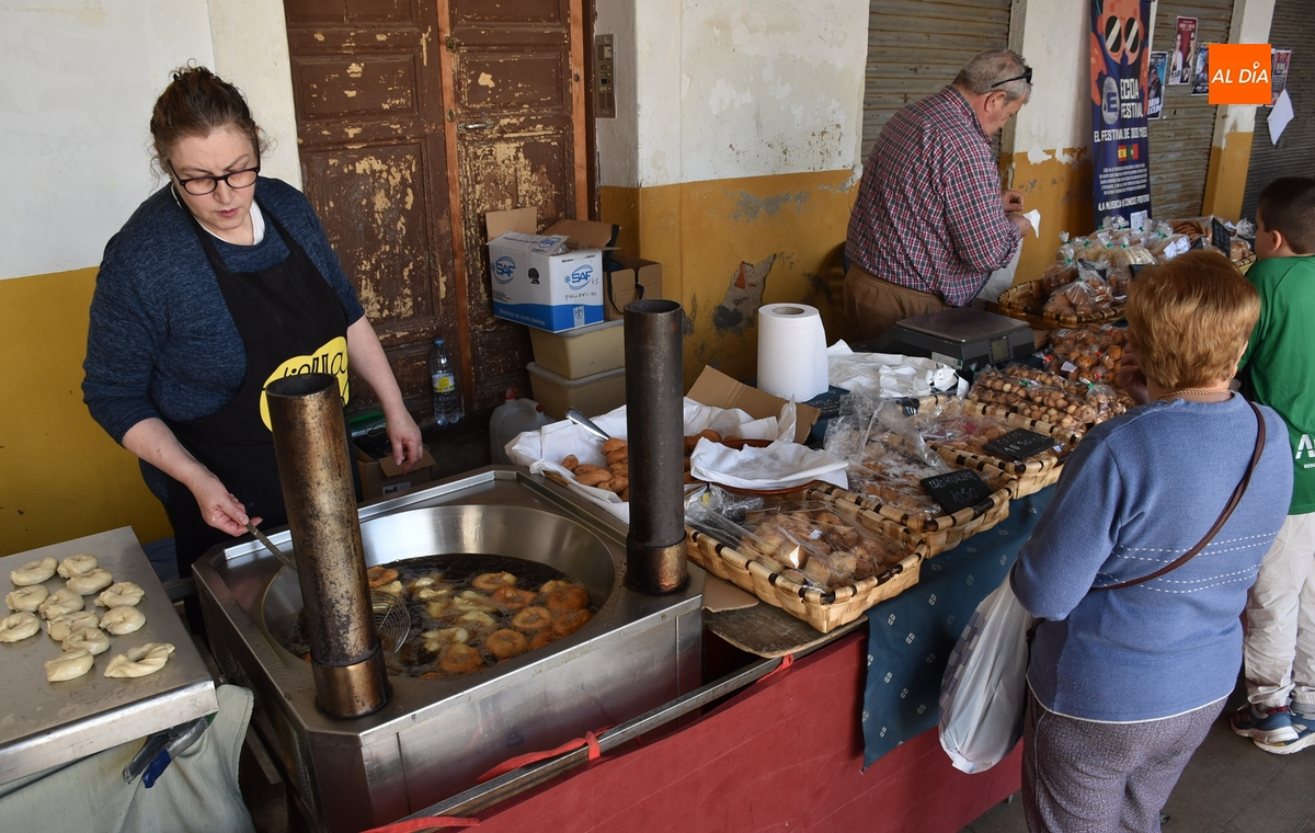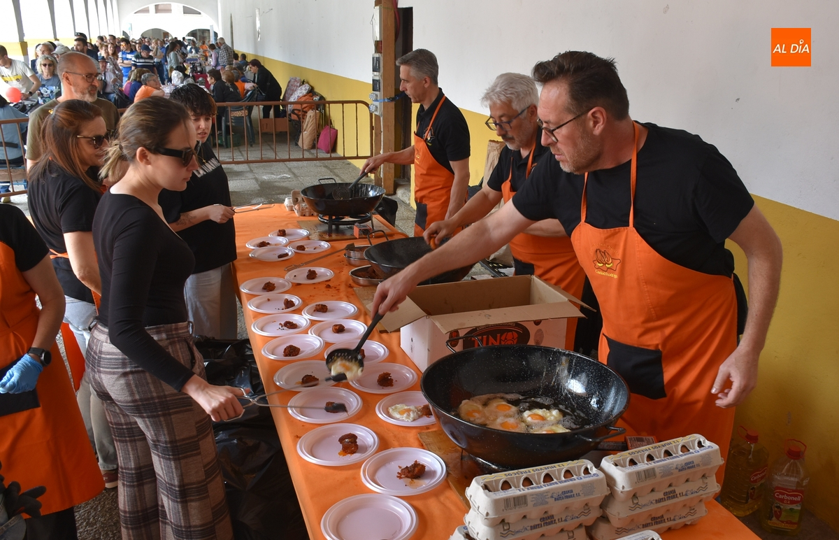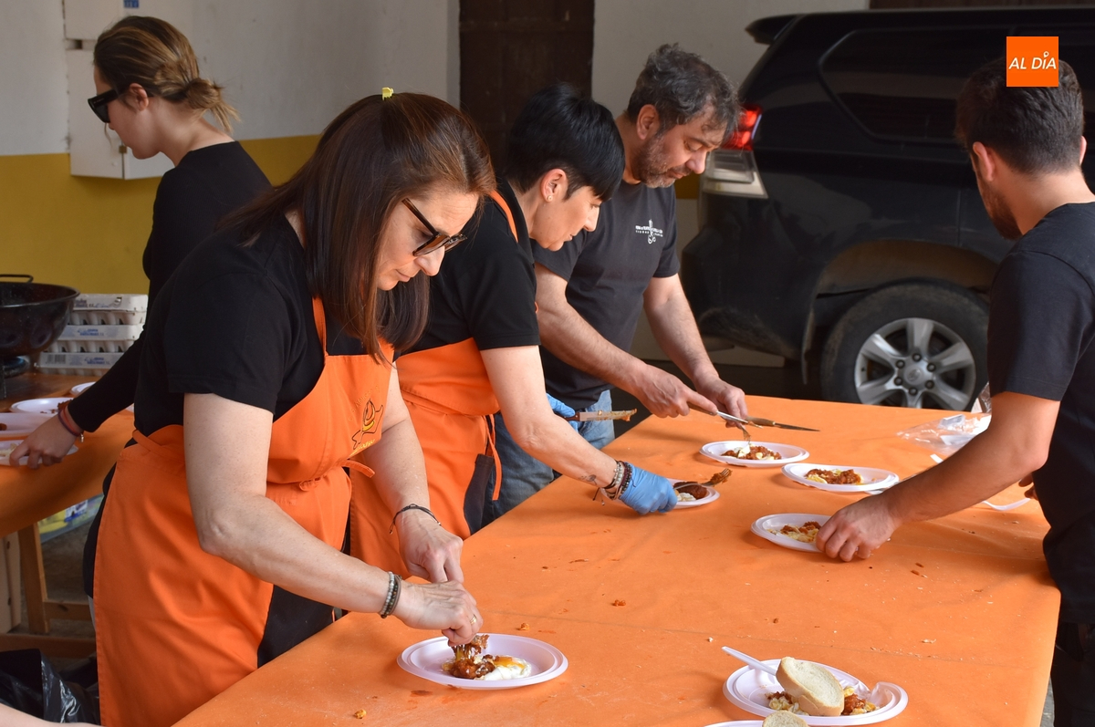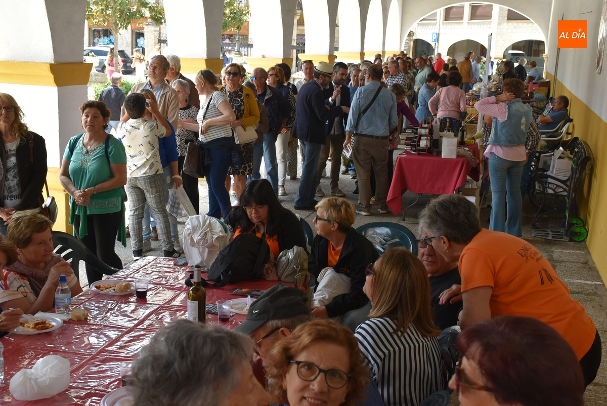 La mañana festiva tuvo dos citas gastronómicas. Por un lado, hubo una degustación a cargo de la D.O.P. Jamón de Guijuelo, encargándose Óscar Castaño de ir cortando jamón para que lo degustasen de forma gratuita todos aquellos que quisieron.