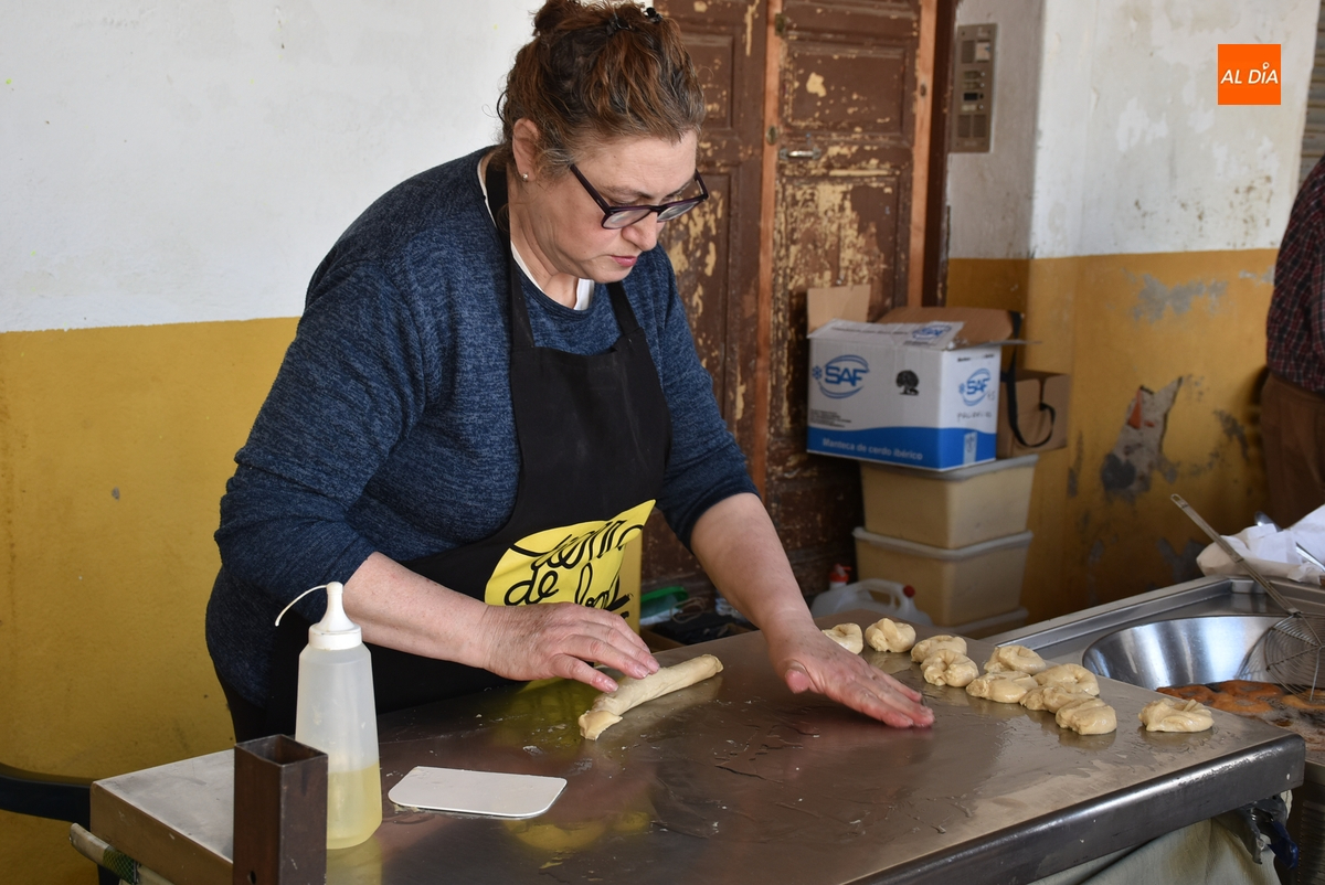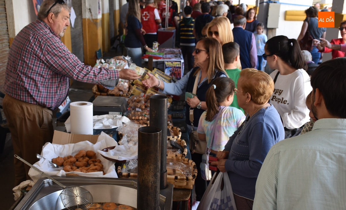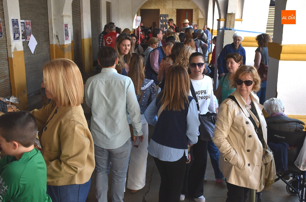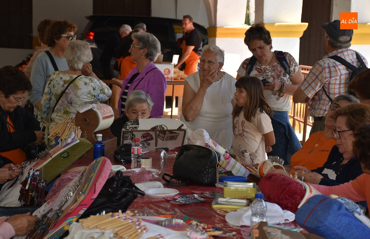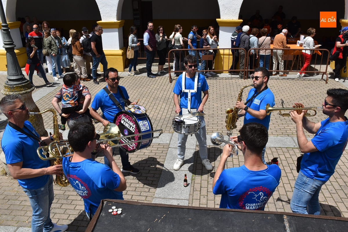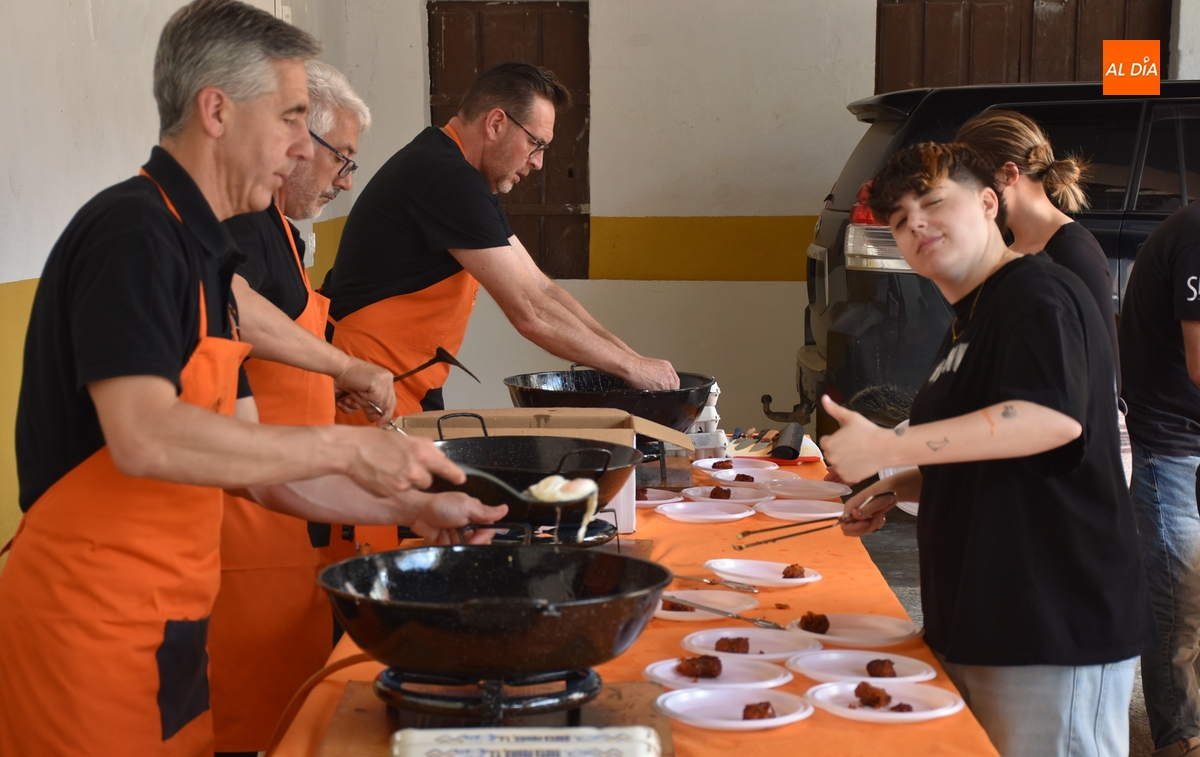 La mañana festiva tuvo dos citas gastronómicas. Por un lado, hubo una degustación a cargo de la D.O.P. Jamón de Guijuelo, encargándose Óscar Castaño de ir cortando jamón para que lo degustasen de forma gratuita todos aquellos que quisieron.