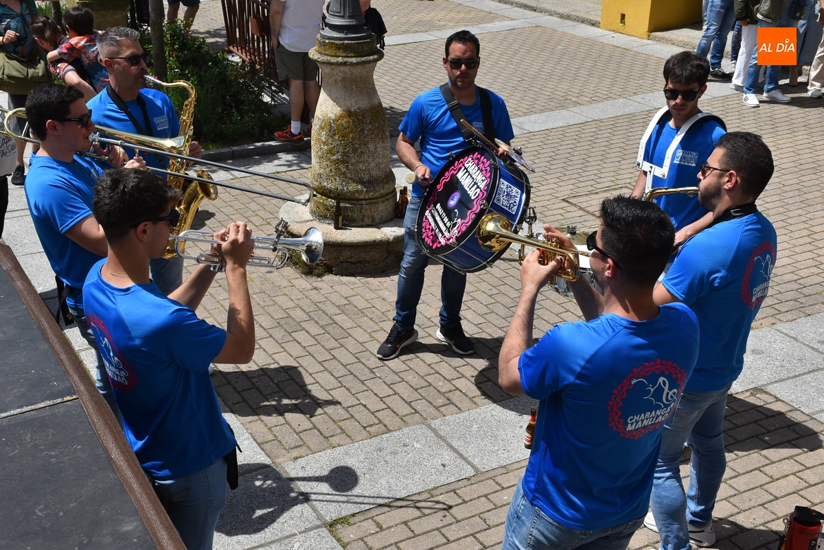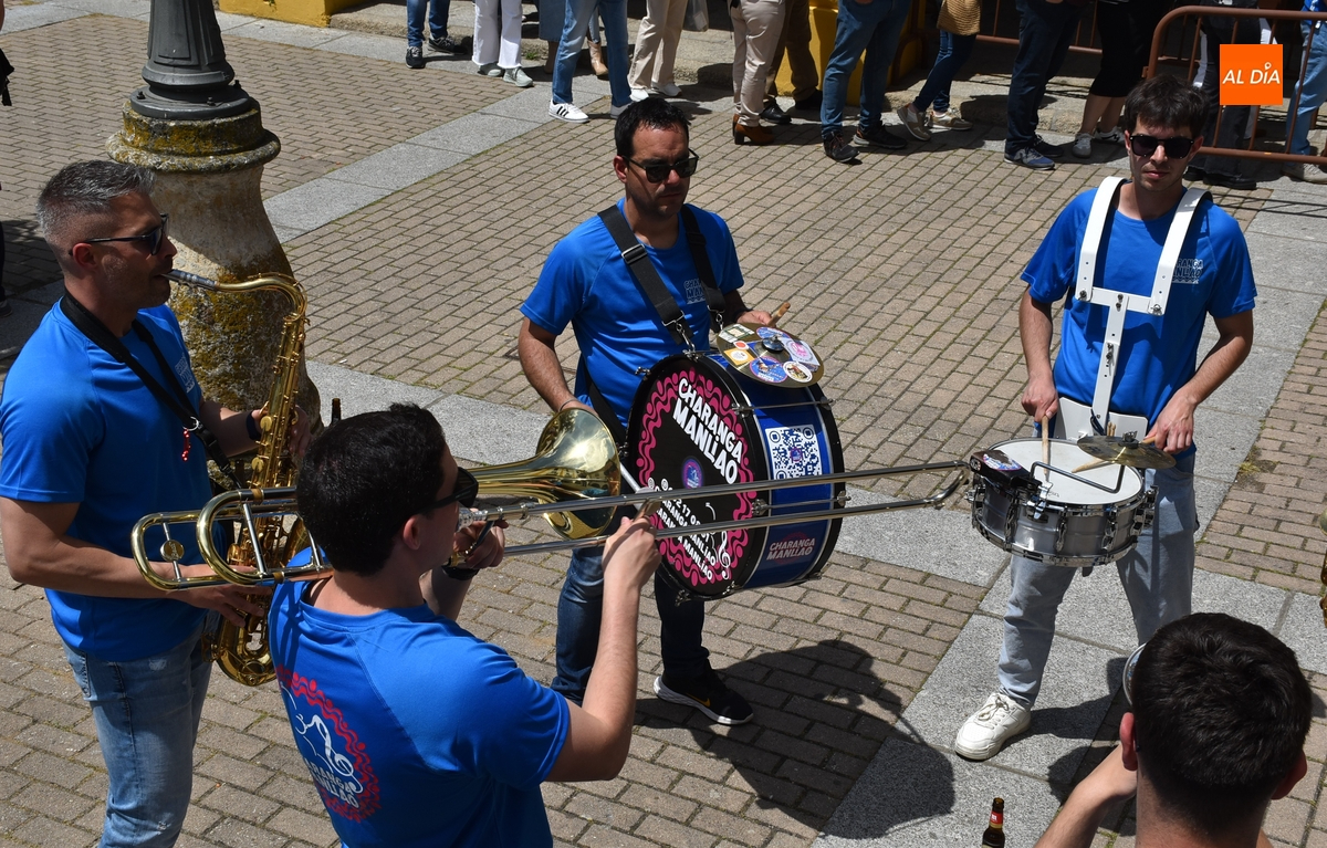 Y por otro lado, en el tramo final de la mañana, se desarrolló una nueva edición de la Gran farinatada comandada por la Cofradía Gastronómica de Amigos del Farinato, en la que se entregó un plato de huevo fritos con farinato a todos los que se pusieron en la larga cola que se conformó. Esa espera para recoger el plato, así como la farinatada en sí, fue animada por la Charanga Manliao.