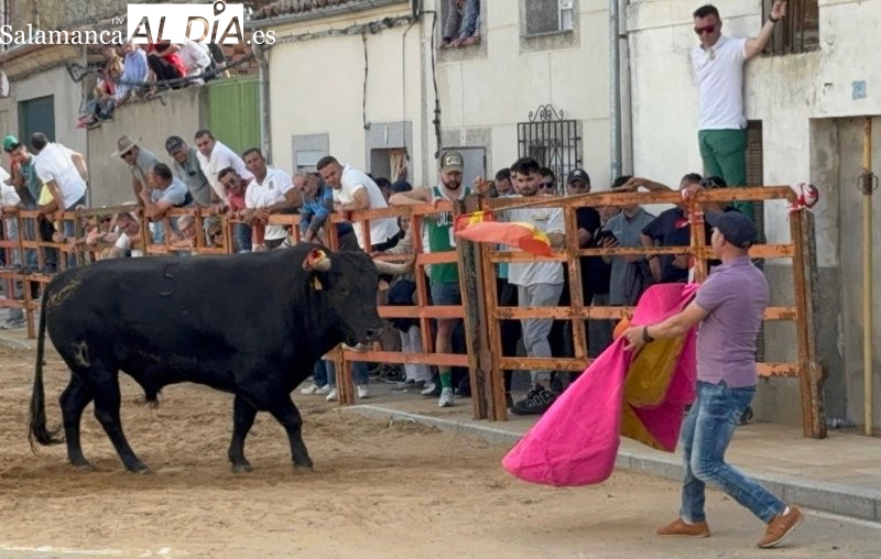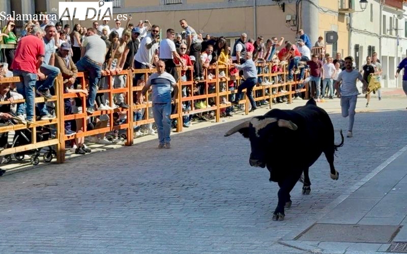 La Asociación Cultural Taurina de Cantalpino ha sido un año más la encargada de organizar y desarrollar el encierro, con la colaboración del Ayuntamiento, acto que arrancaba cerca de las cinco y media de la tarde con la salida a las calles de ‘Turinés’, astado de Mercedes Pérez Tabernero y que protagonizaba una vibrante carrera inicial, tras lo que llegaban los pases, los cortes y los quiebros en el lugar del recorrido en el que el animal decidía asentarse.