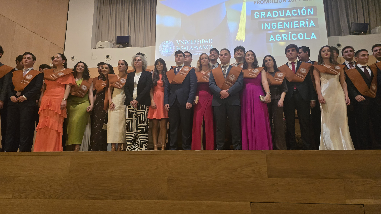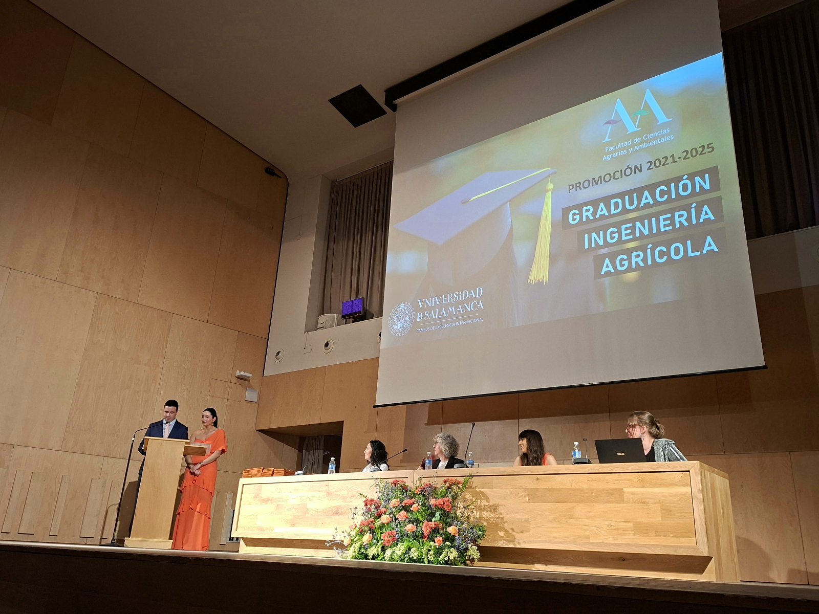 Posteriormente, fue el momento para los estudiantes del Grado en Ingeniería Agrícola. La Dra. Leticia Merchán Hernández repitió como madrina en esta segunda parte de la jornada, guiando también a esta nueva generación de ingenieros que se incorpora al mundo laboral.