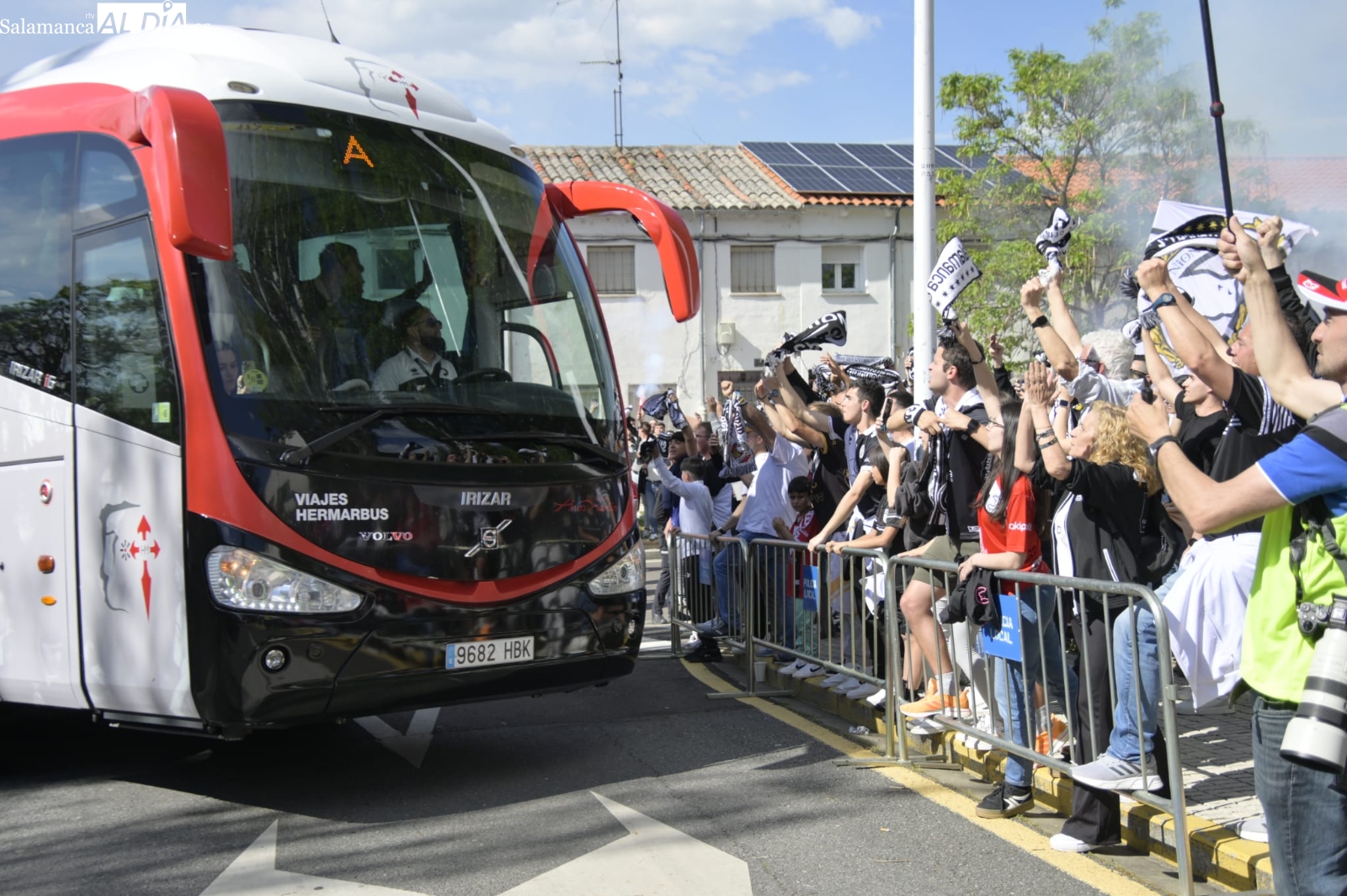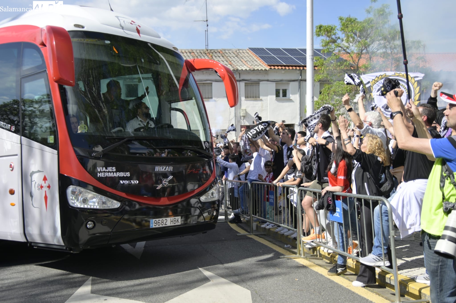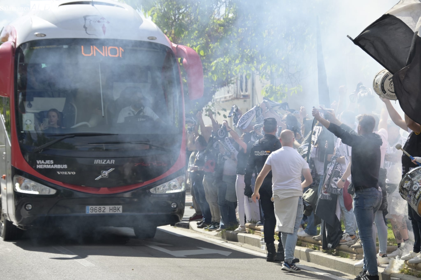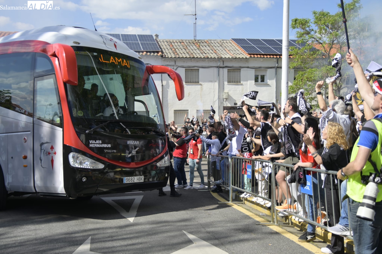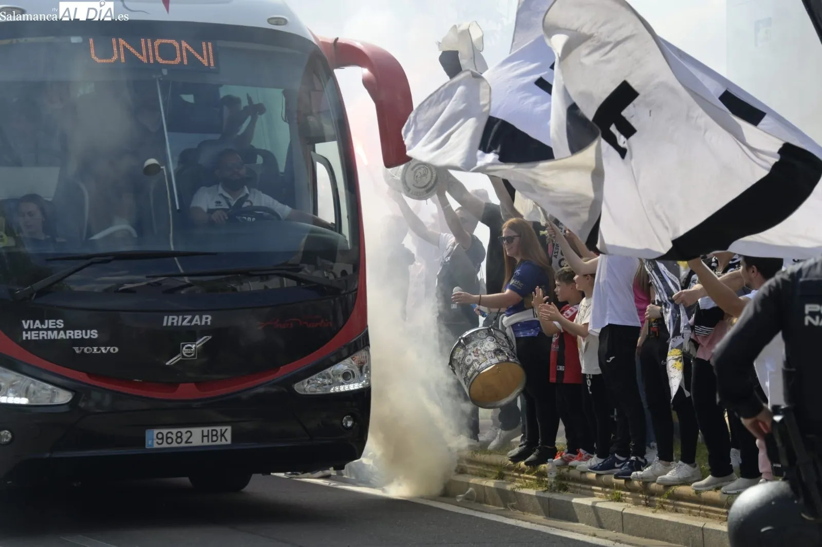 ¡Locura en el recibimiento al bus de Unionistas y ambientazo en el Reina Sofía para lograr la salvación en la penúltima jornada! El estadio se ha llenado con entradas agotadas y los jugadores han recibido un gran aliento a su llegada al barrio de San José.