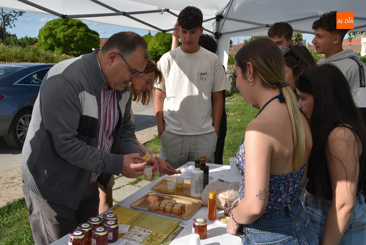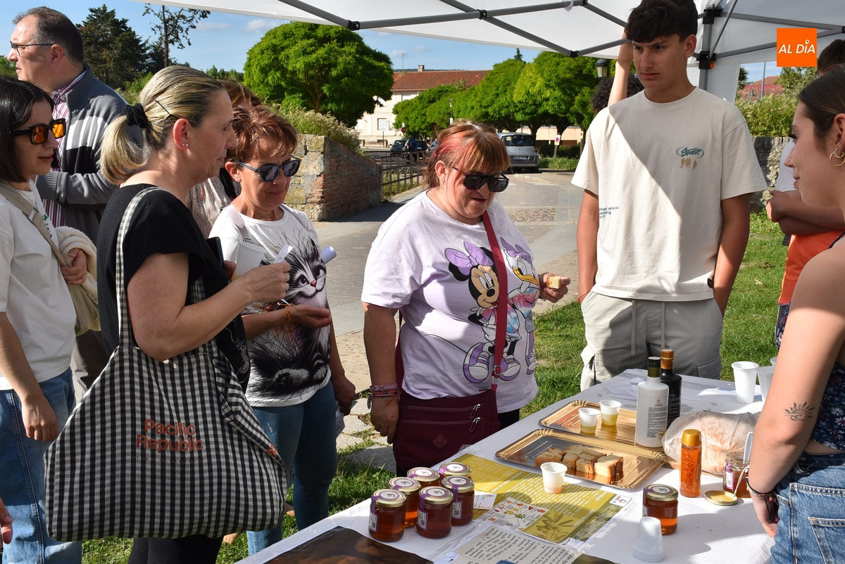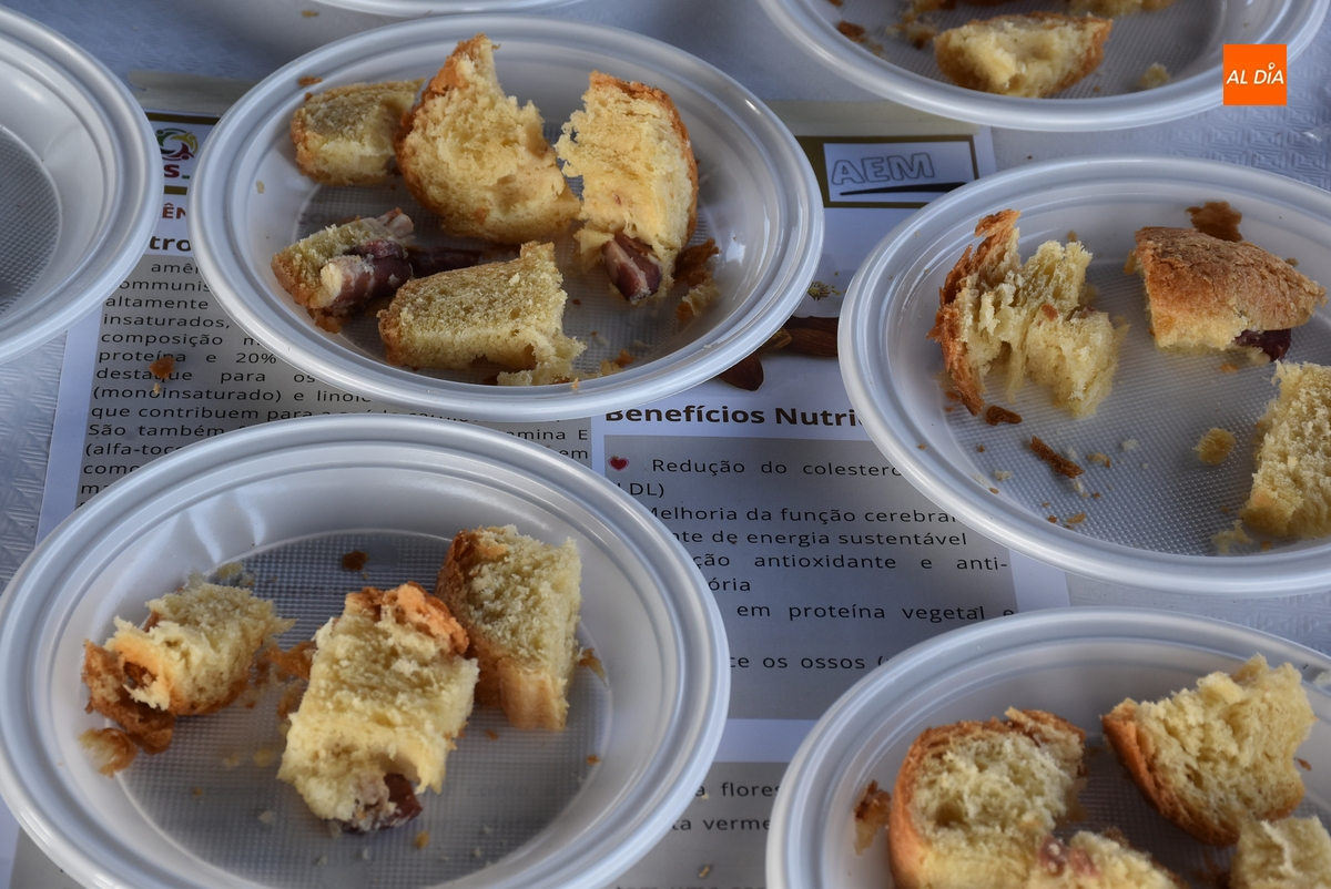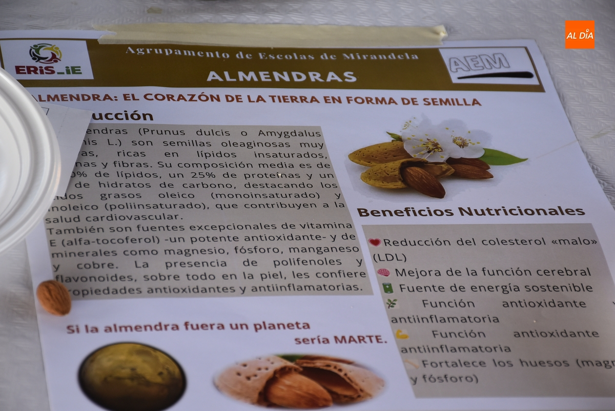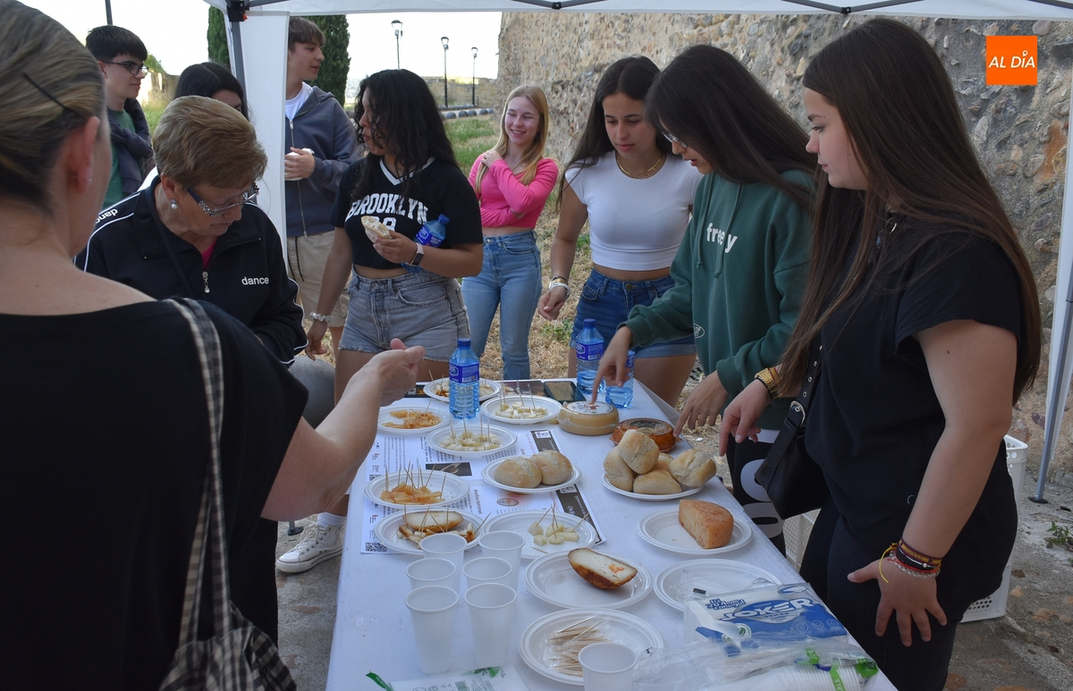 La alheira también fue probada por el director del CFIE de Ciudad Rodrigo, Luis María Álvarez, y las ediles del Ayuntamiento Paola Martín Muñoz, Joana Veloso y Carmen Lorenzo, que recorrieron varios de los stands. De ese punto inicial se podía pasar al situado junto al planeta Mercurio, donde se ofrecía untar una especie de bizcocho en miel y aceite (en cada stand había alumnos tanto portugueses como españoles).