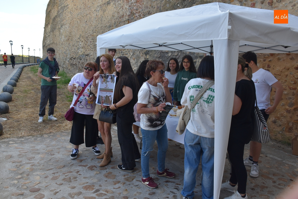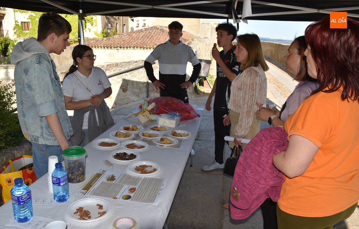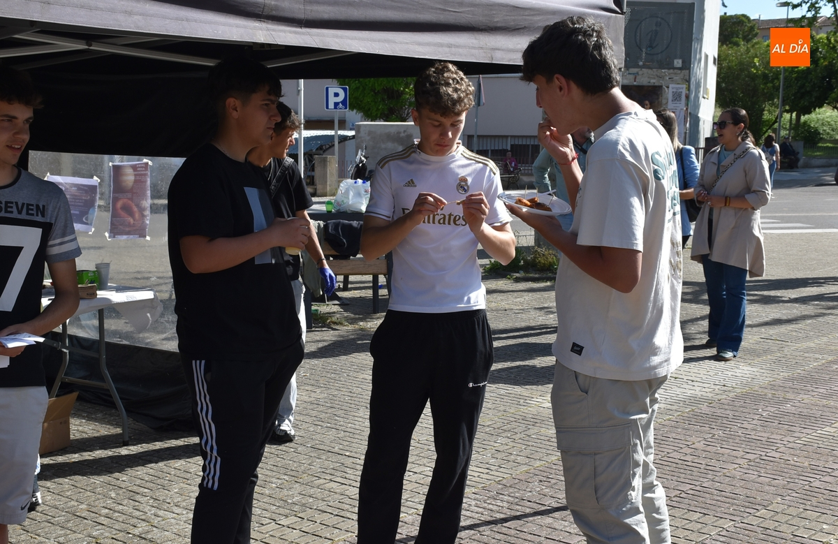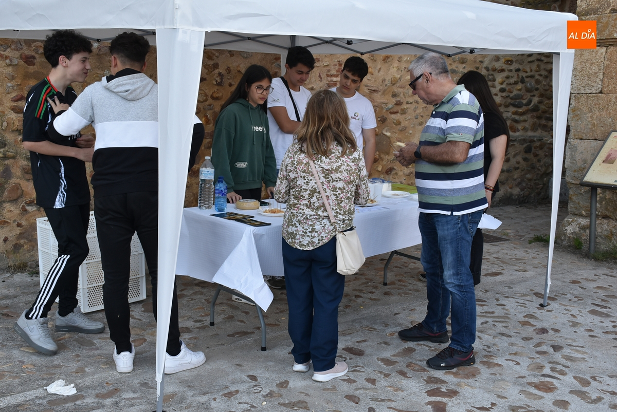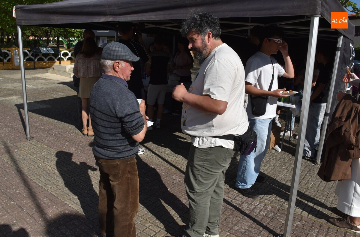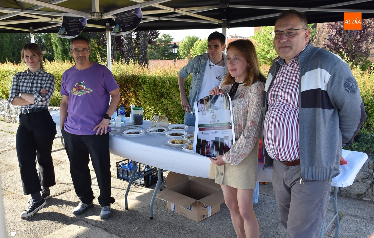 La alheira también fue probada por el director del CFIE de Ciudad Rodrigo, Luis María Álvarez, y las ediles del Ayuntamiento Paola Martín Muñoz, Joana Veloso y Carmen Lorenzo, que recorrieron varios de los stands. De ese punto inicial se podía pasar al situado junto al planeta Mercurio, donde se ofrecía untar una especie de bizcocho en miel y aceite (en cada stand había alumnos tanto portugueses como españoles).
