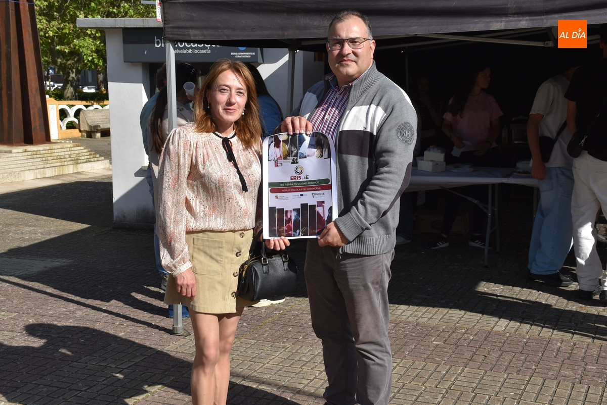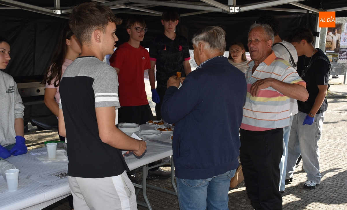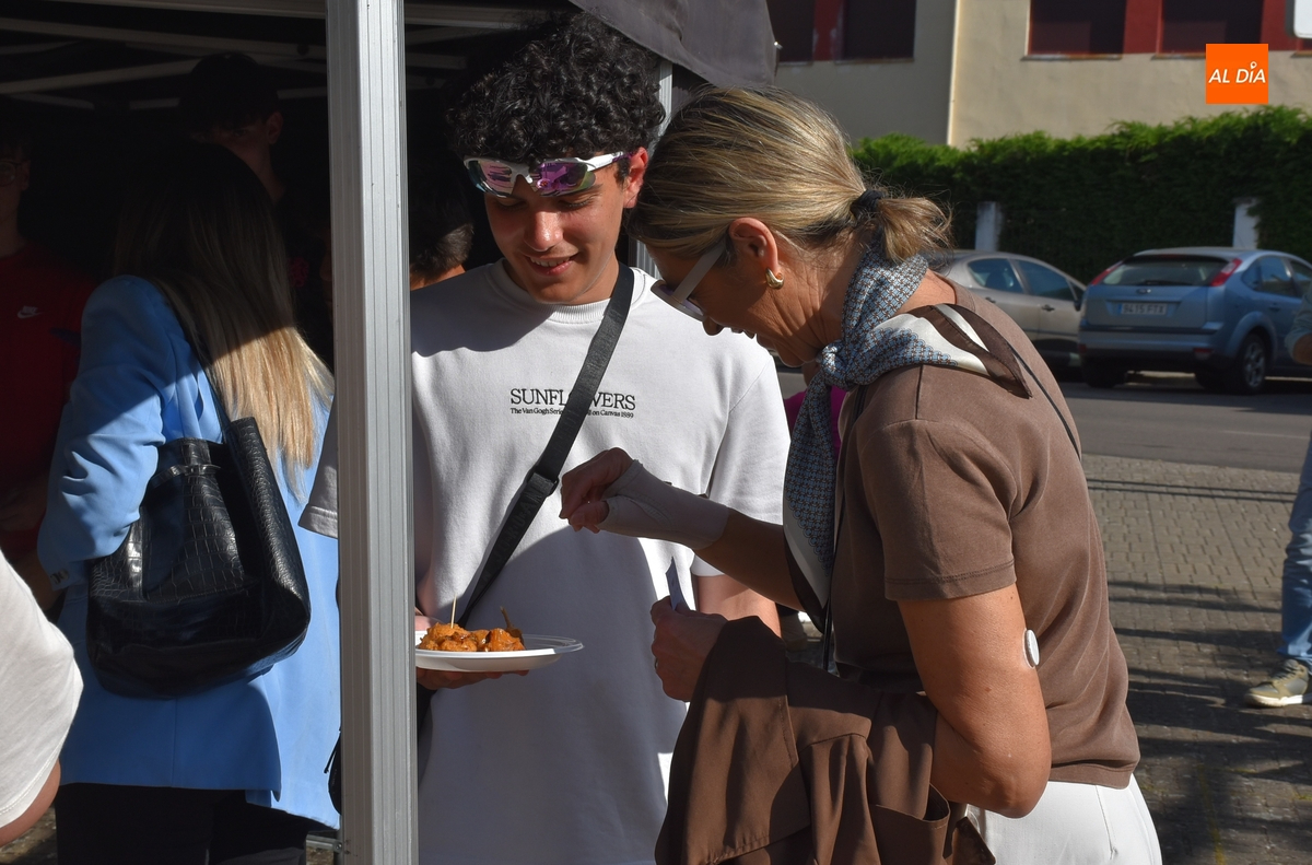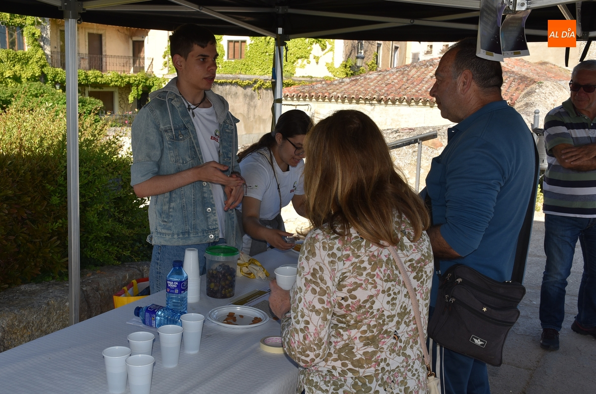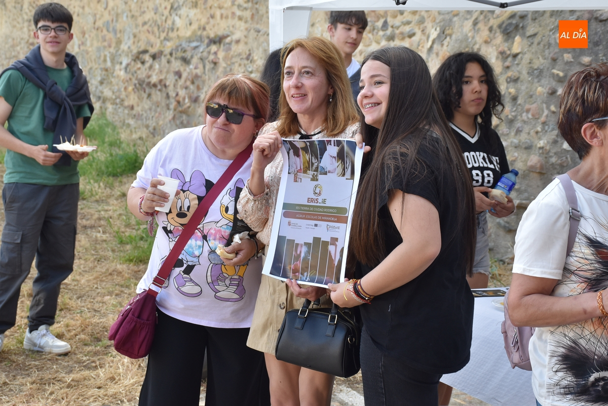 La alheira también fue probada por el director del CFIE de Ciudad Rodrigo, Luis María Álvarez, y las ediles del Ayuntamiento Paola Martín Muñoz, Joana Veloso y Carmen Lorenzo, que recorrieron varios de los stands. De ese punto inicial se podía pasar al situado junto al planeta Mercurio, donde se ofrecía untar una especie de bizcocho en miel y aceite (en cada stand había alumnos tanto portugueses como españoles).