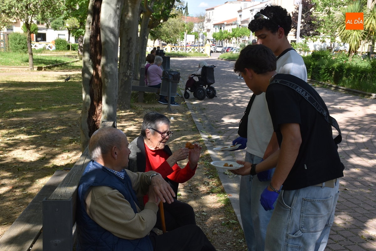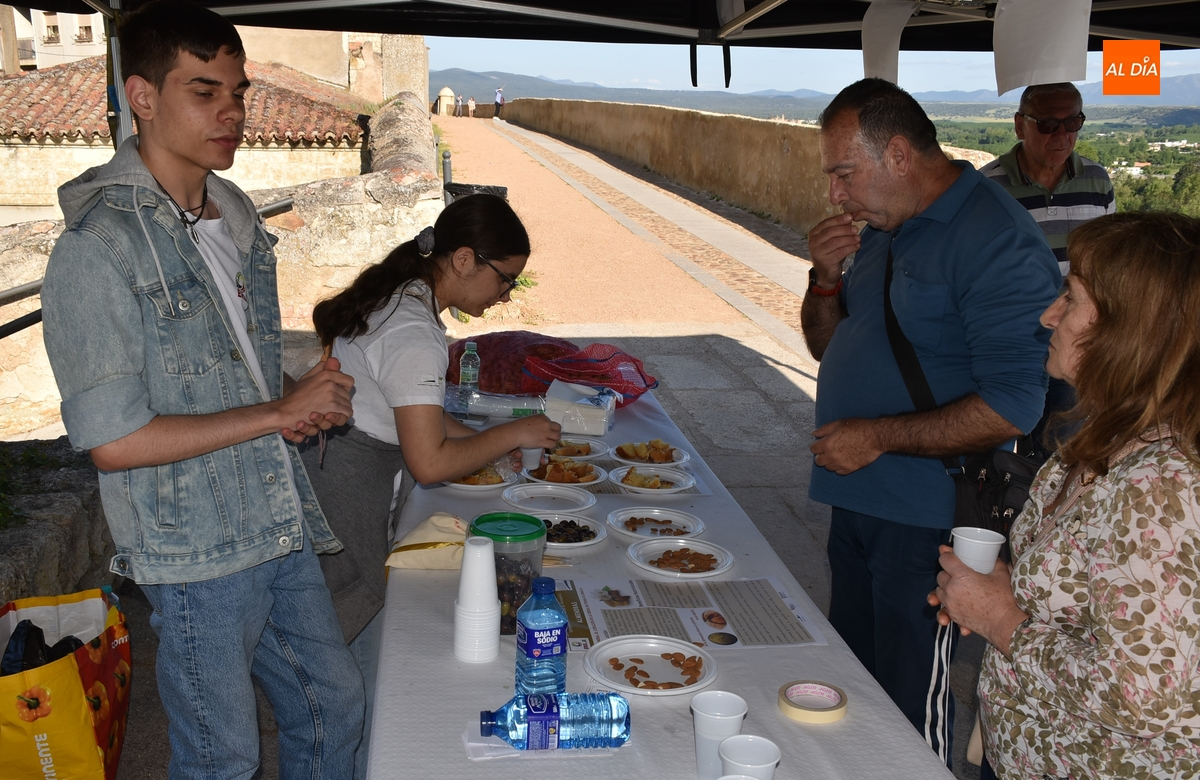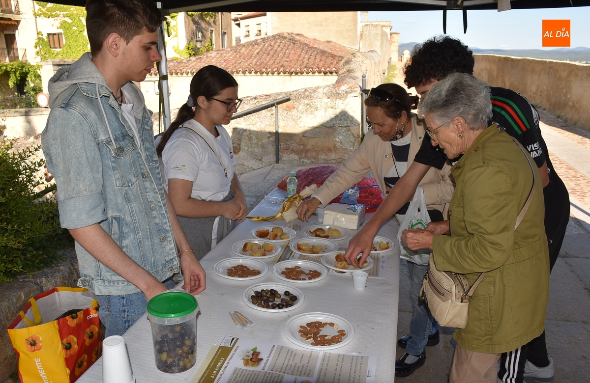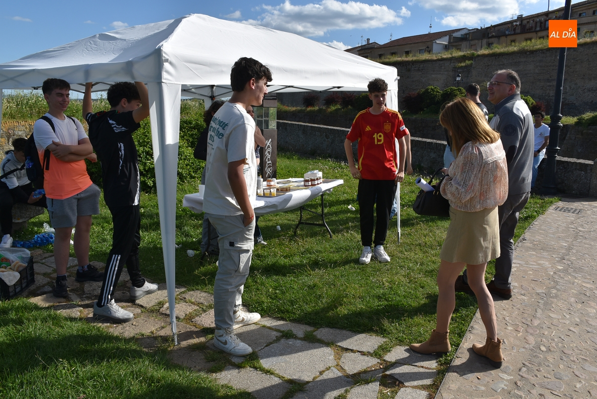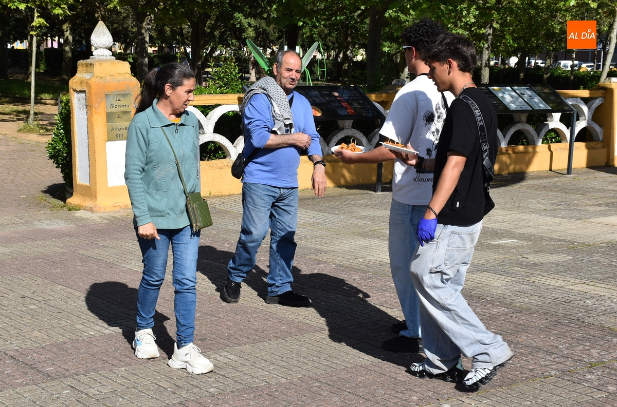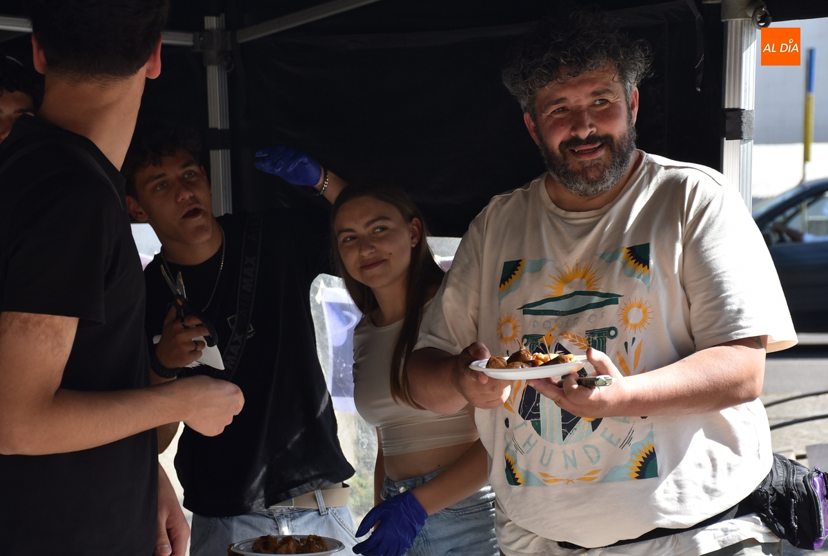 La alheira también fue probada por el director del CFIE de Ciudad Rodrigo, Luis María Álvarez, y las ediles del Ayuntamiento Paola Martín Muñoz, Joana Veloso y Carmen Lorenzo, que recorrieron varios de los stands. De ese punto inicial se podía pasar al situado junto al planeta Mercurio, donde se ofrecía untar una especie de bizcocho en miel y aceite (en cada stand había alumnos tanto portugueses como españoles).
