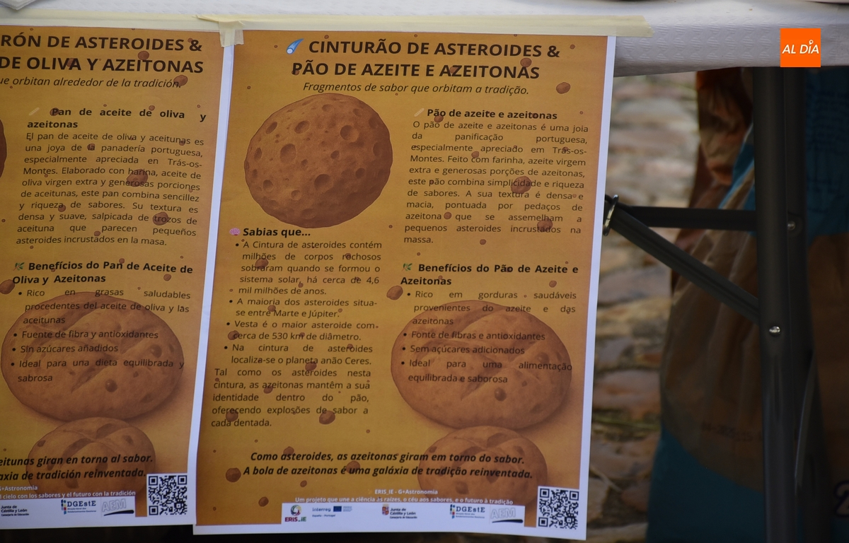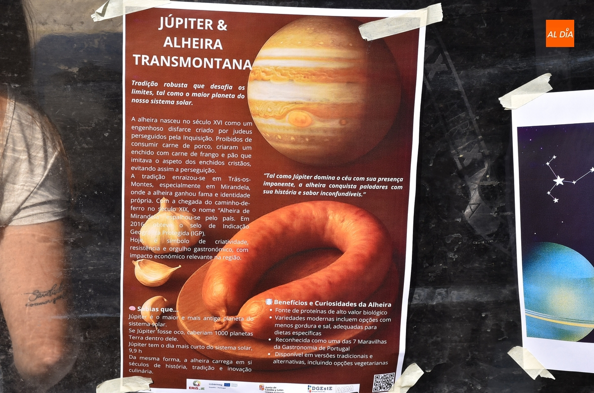 Por ejemplo, como arranque de la ruta, se pudo disfrutar junto al Sol de la alheira (un embutido parecido al farinato), asociándolo con Júpiter, ya que ese producto es una “tradición robusta que desafía los límites, como el mayor planeta de nuestro Sistema Solar”. En este punto de partida de la ruta, alumnos portugueses involucrados incluso se acercaron a repartir la alheira a los que estaban sentados en bancos en los alrededores.