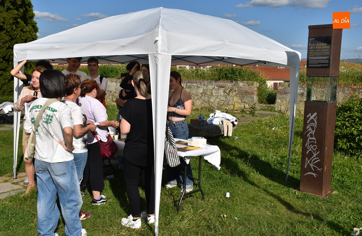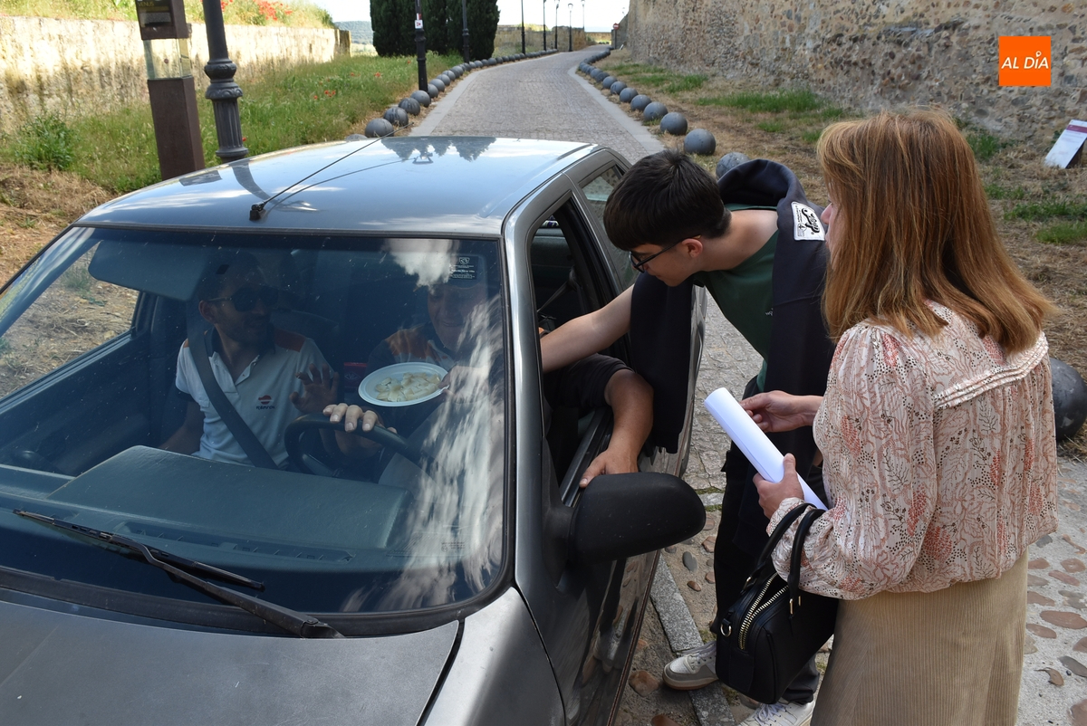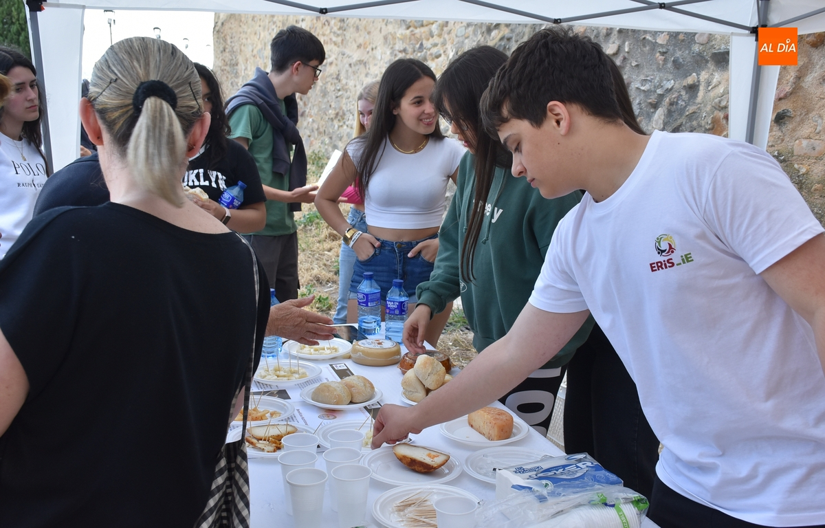 La ruta continuaba junto al Cuerpo de Guardia de San Pelayo (donde se encuentra Venus), con un surtido de quesos, que los alumnos decidieron ofrecer no solo a los transeúntes sino también a los conductores que pasaron por allí (que son más de los habituales estas semanas debido a que se está usando más la Puerta de Santiago ante las obras de la Rúa del Sol).