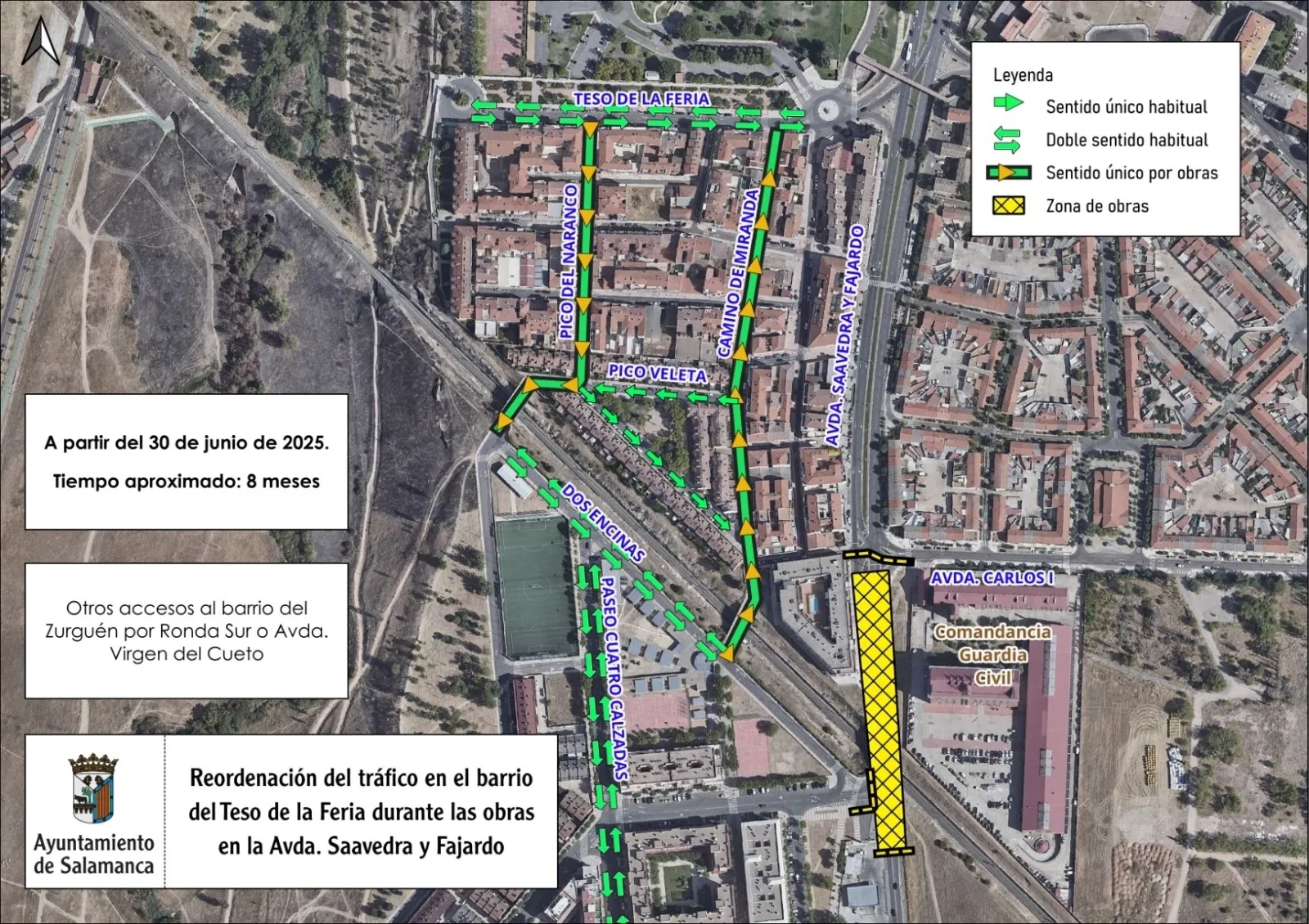 Los vecinos de Salamanca y, en particular, los residentes de los barrios de El Zurguén y Teso de la Feria, deberán prepararse para una importante alteración en sus rutinas de movilidad. La avenida Saavedra y Fajardo, en el tramo comprendido entre la avenida de Carlos I y la calle Castroverde, permanecerá cerrada al tráfico a partir del próximo 30 de junio.