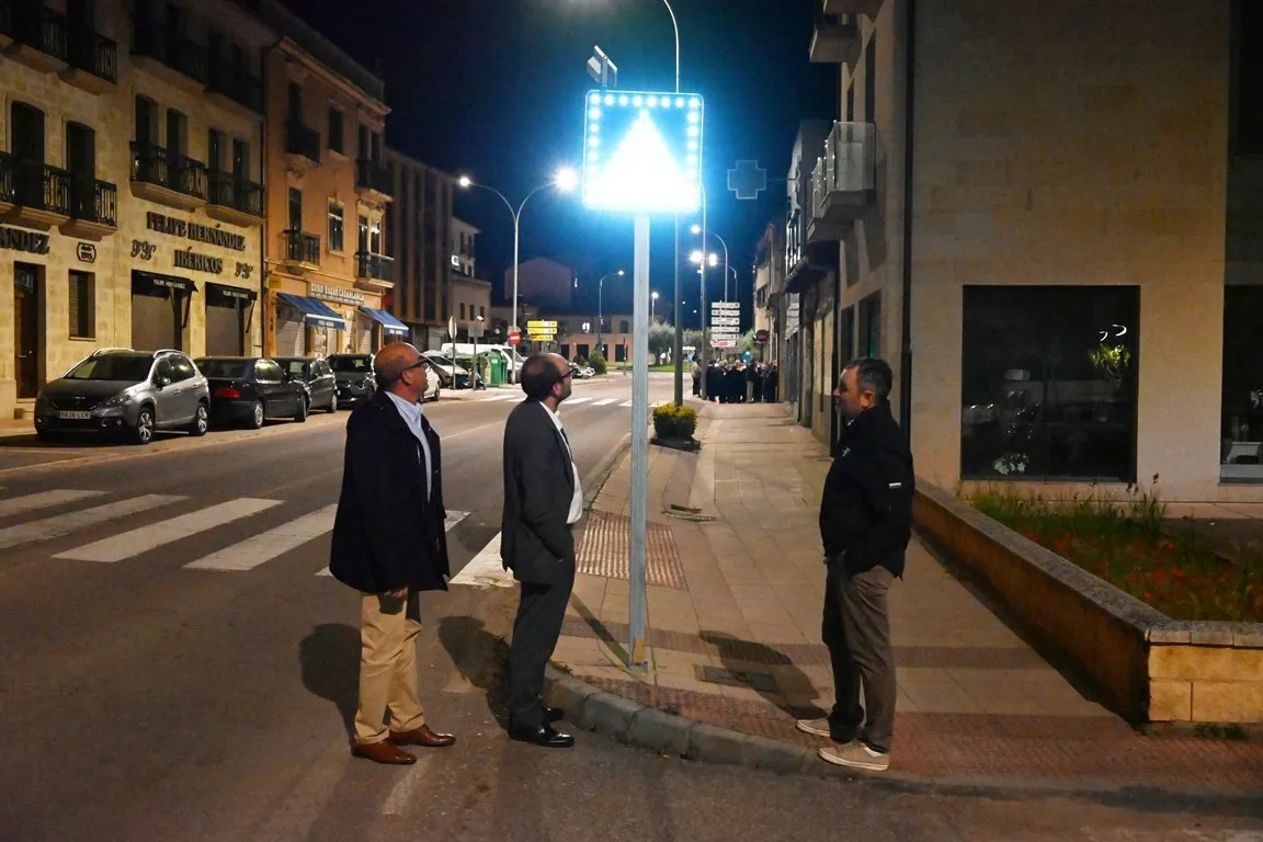 El Ayuntamiento de Ciudad Rodrigo ha completado la colocación de las señales luminosas que ha adquirido la Delegación de Tráfico y Policía Local para “reforzar la seguridad en las zonas escolares, parques y puntos problemáticos”, según apunta el delegado del área, Rubén Benito, quién junto al alcalde Marcos Iglesias, Ramón Sastre y José Manuel Jerez, visitaron las zonas donde se han dispuesto.
