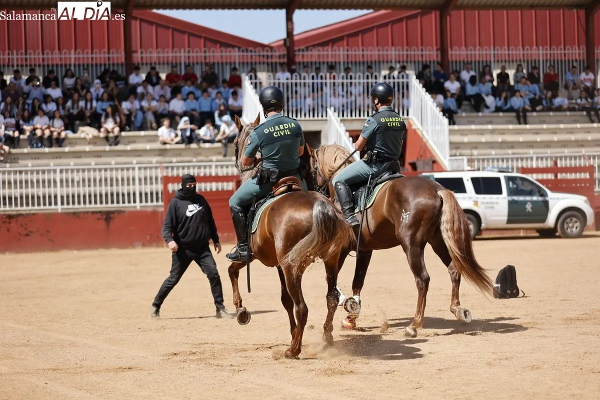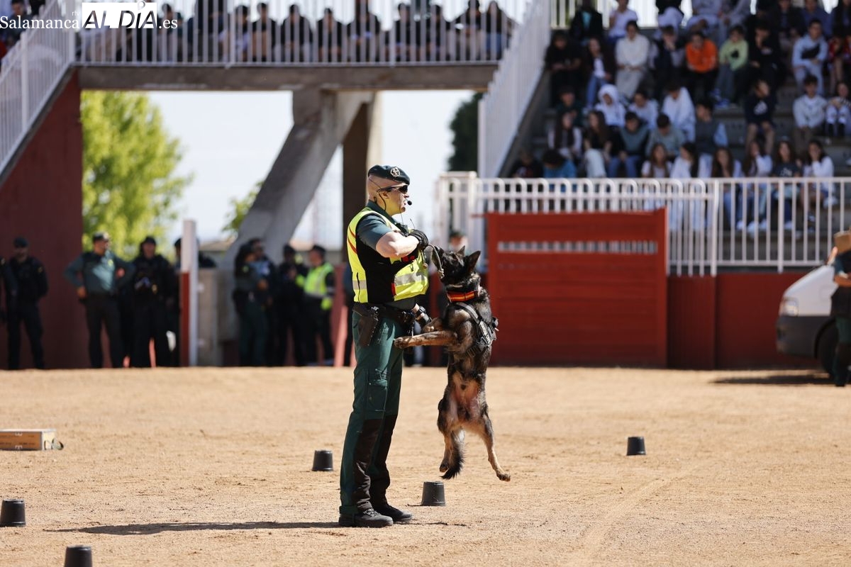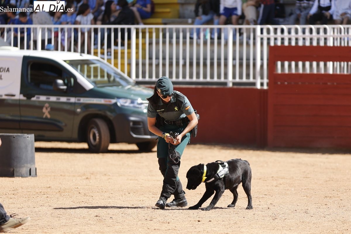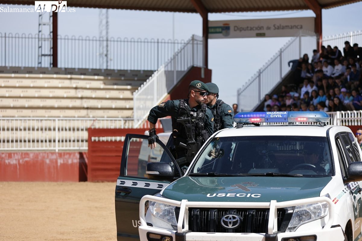 Asimismo, distintas especialidades de la Comandancia de la Guardia Civil de Salamanca realizaron demostraciones de sus capacidades operativas, ofreciendo una visión práctica de su trabajo en diferentes escenarios. Esta parte del evento fue, sin duda, una de las que más expectación generó entre los 2.000 asistentes.