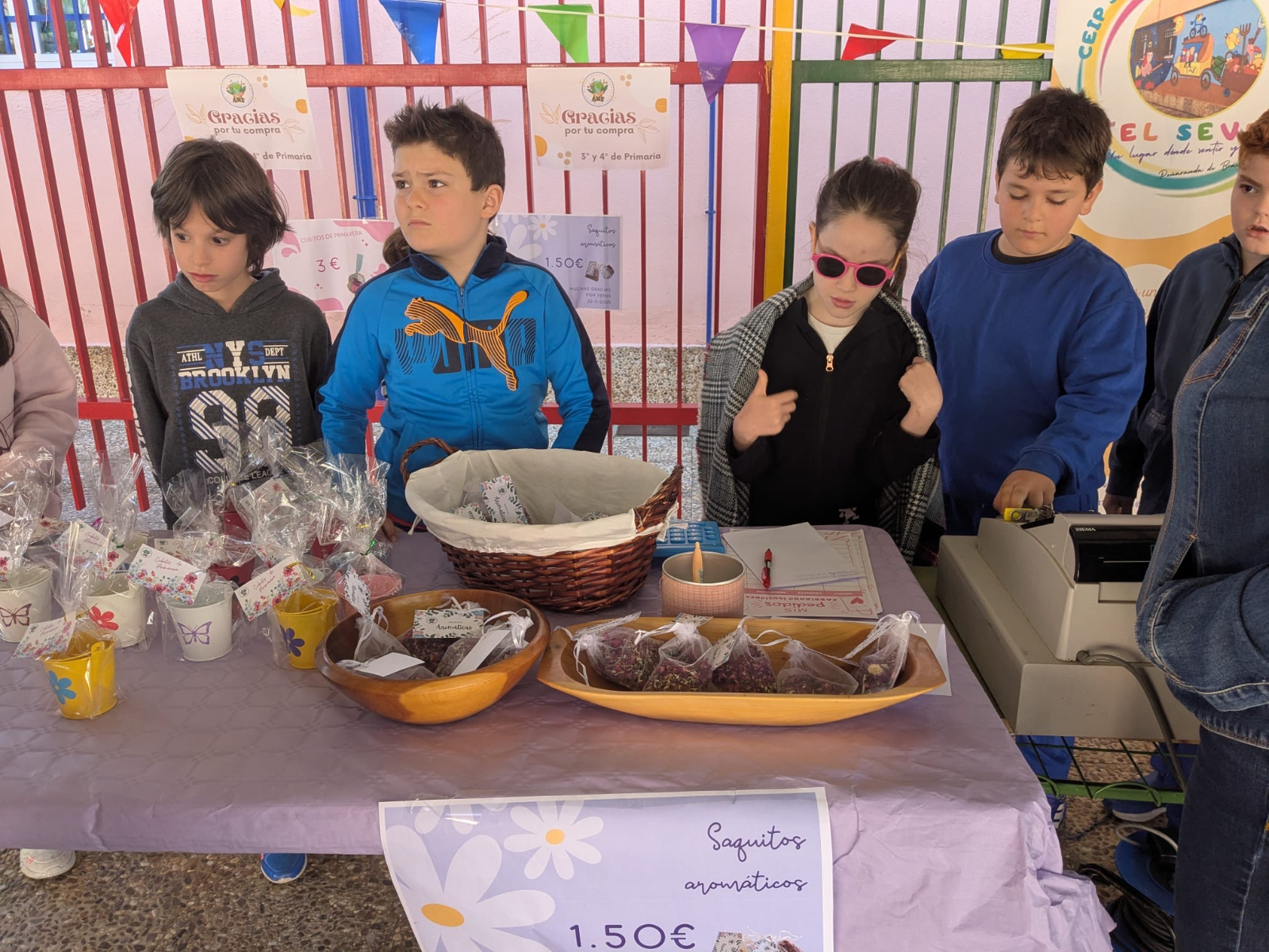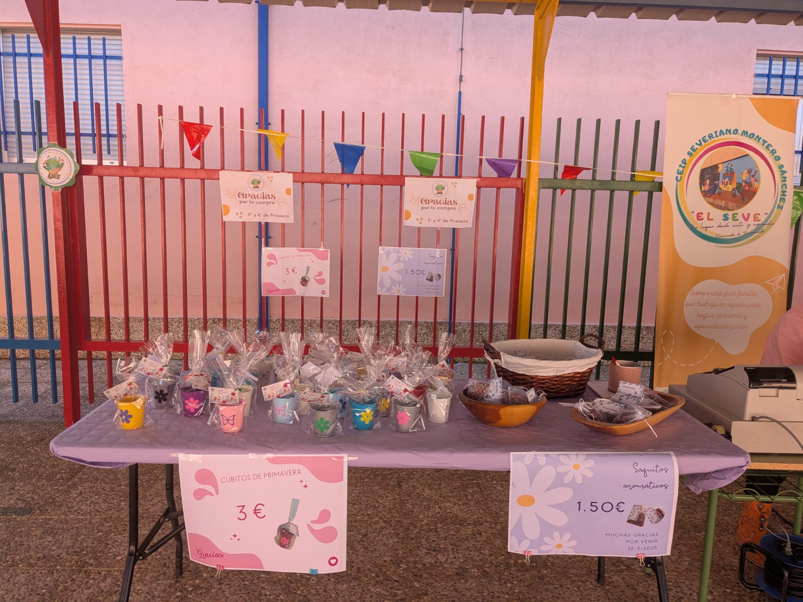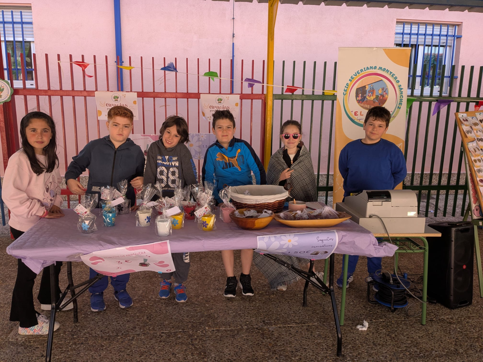 Jabones, posavasos, bolsas decoradas, platos decorados, pendientes, llaveros con nombres de municipios de la comarca, portajoyas, portamacetas y sacos aromáticos han sido solo algunos de los productos ofrecidos al público, todos ellos surgidos de las manos y la creatividad de los escolares de diferentes cursos, desde Infantil hasta sexto de Primaria.