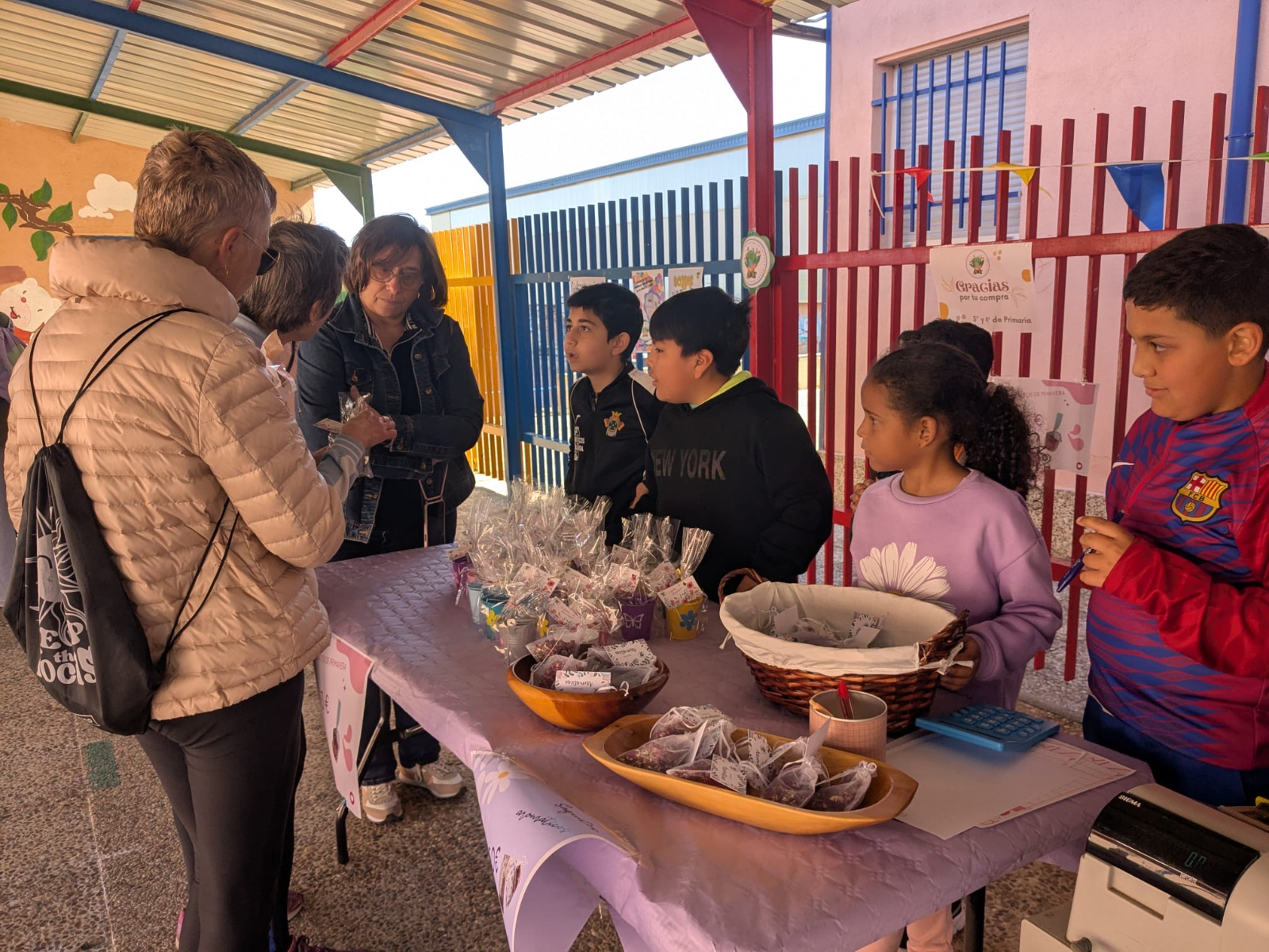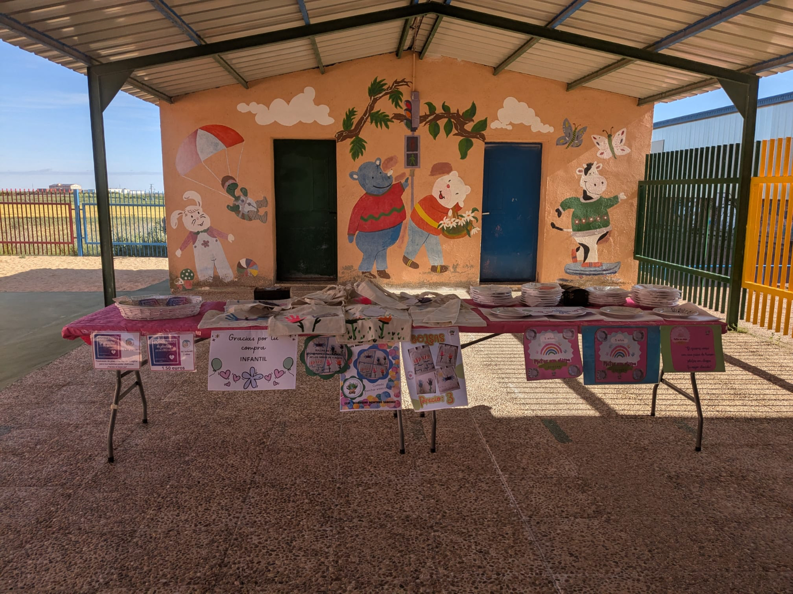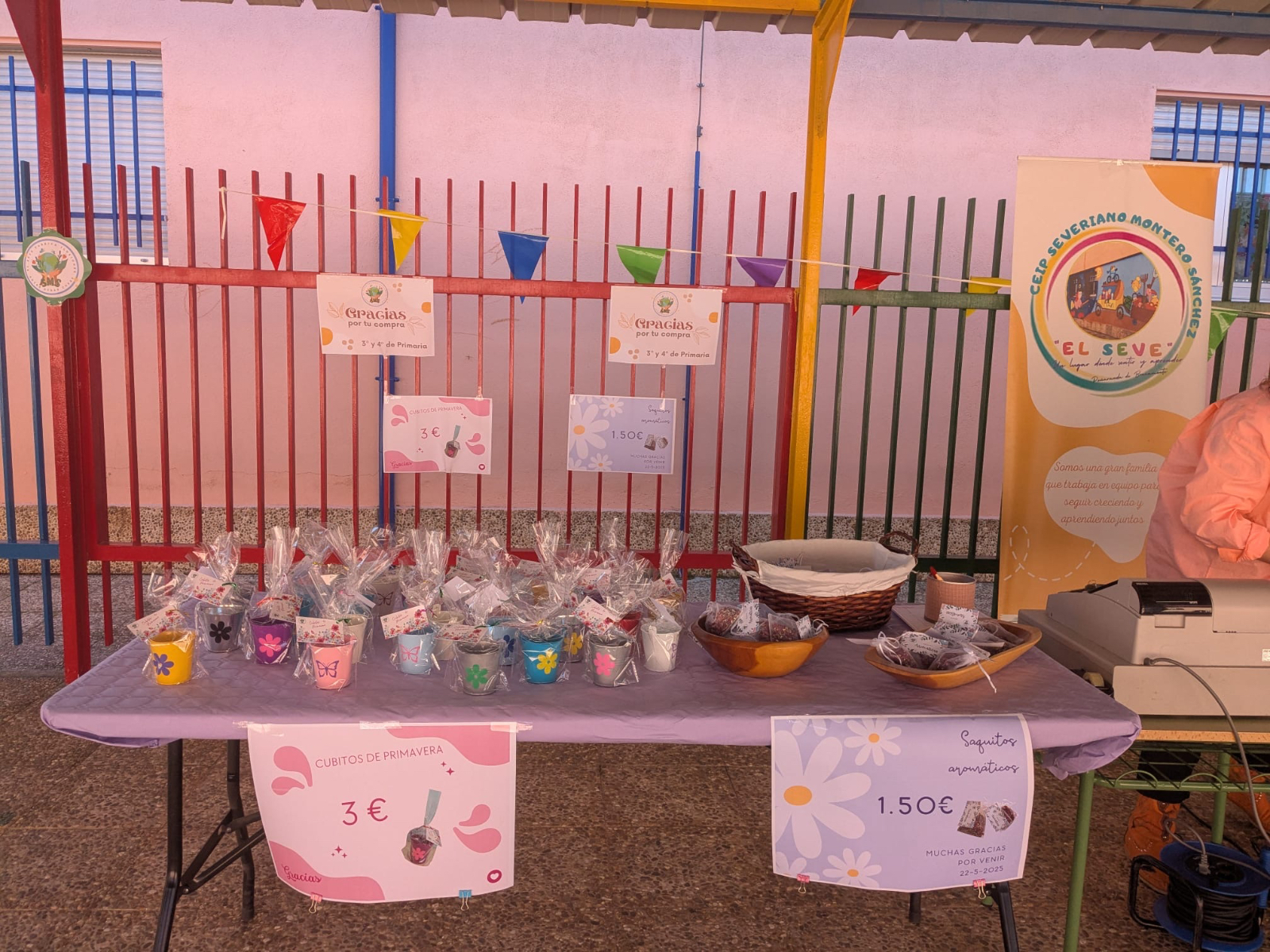 Jabones, posavasos, bolsas decoradas, platos decorados, pendientes, llaveros con nombres de municipios de la comarca, portajoyas, portamacetas y sacos aromáticos han sido solo algunos de los productos ofrecidos al público, todos ellos surgidos de las manos y la creatividad de los escolares de diferentes cursos, desde Infantil hasta sexto de Primaria.