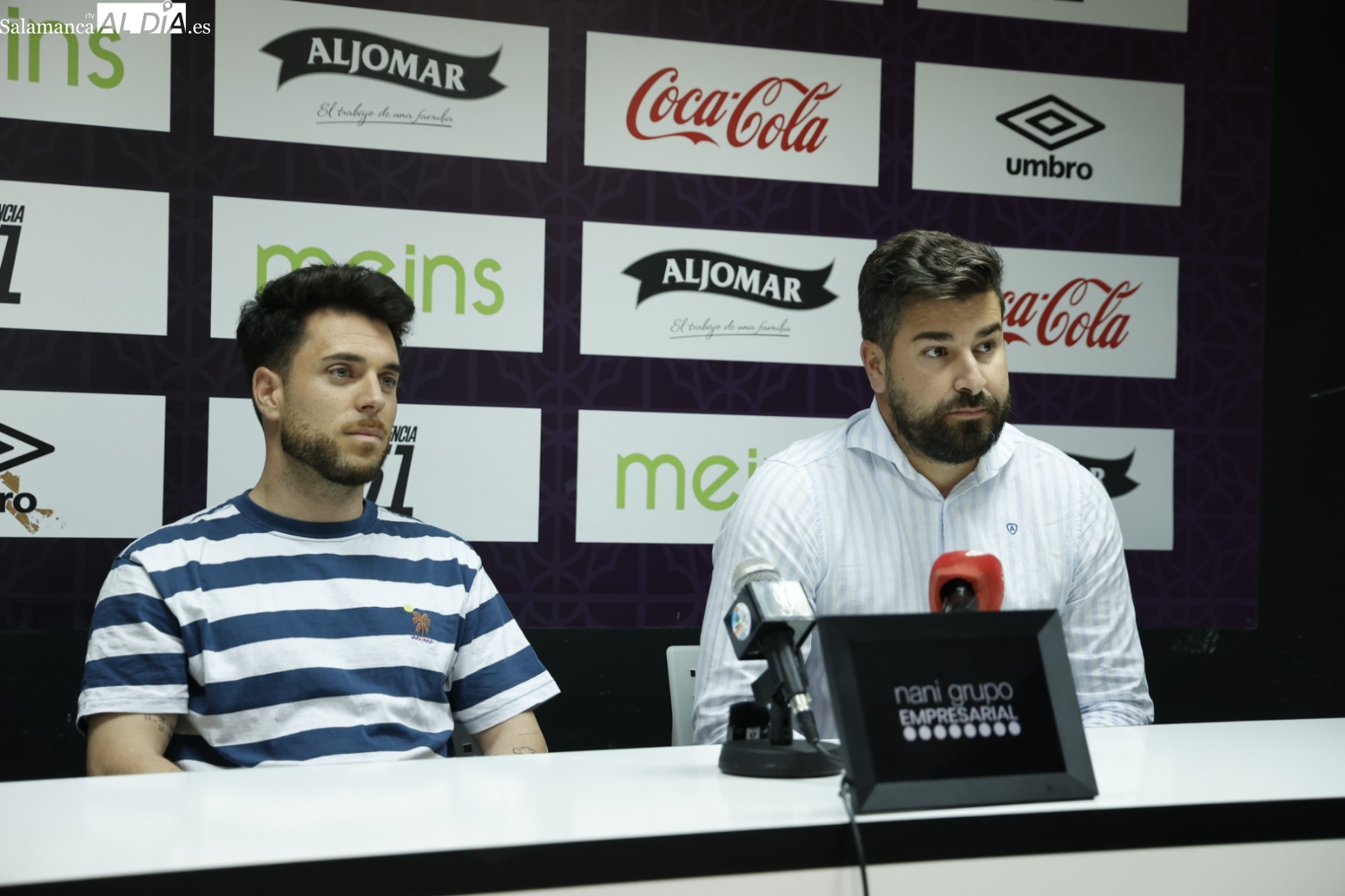 Carlos Valverde, director deportivo del Salamanca UDS, y Jorge García, entrenador del primer equipo, han comparecido en rueda de prensa esta tarde en el Estadio Helmántico para hablar sobre la temporada 2025-2026. El primero en tomar la palabra fue Valverde, quien manifestó sentirse "muy motivado y con mucha ilusión. Es un puesto de mucho peso porque estamos hablando de 'un Salamanca' y es un reto muy bonito".