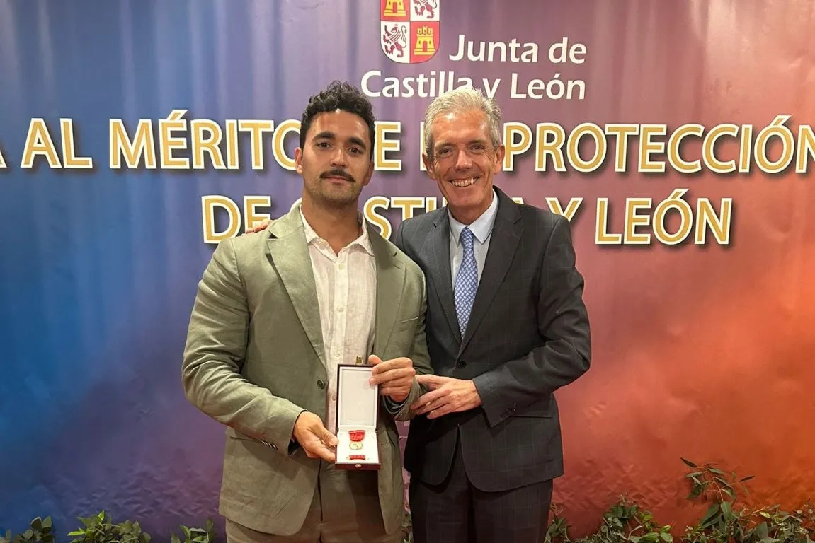 Junto al agente de la Guardia Civil Juan Antonio Calzada Sánchez, en el acto de entrega en Astorga (León) de las Medallas al Mérito de la Protección Ciudadana de Castilla y León a personas e instituciones (en reconocimiento a su trayectoria profesional o a actuaciones excepcionales en situaciones de riesgo) fue distinguido otro mirobrigense, Pablo José Montejo Barreña, por su participación en el operativo puesto en marcha a raíz de la DANA en Valencia.