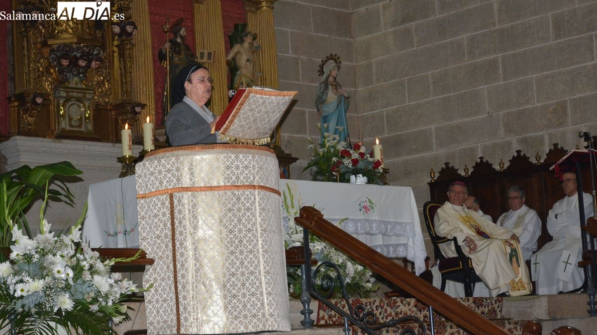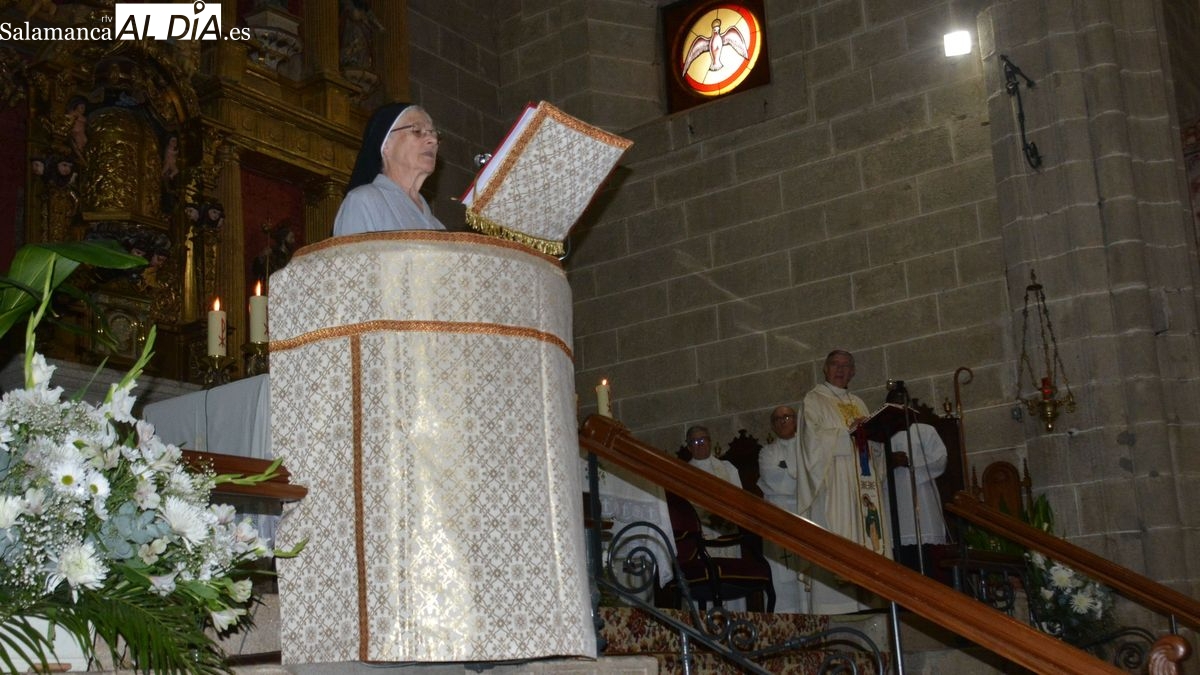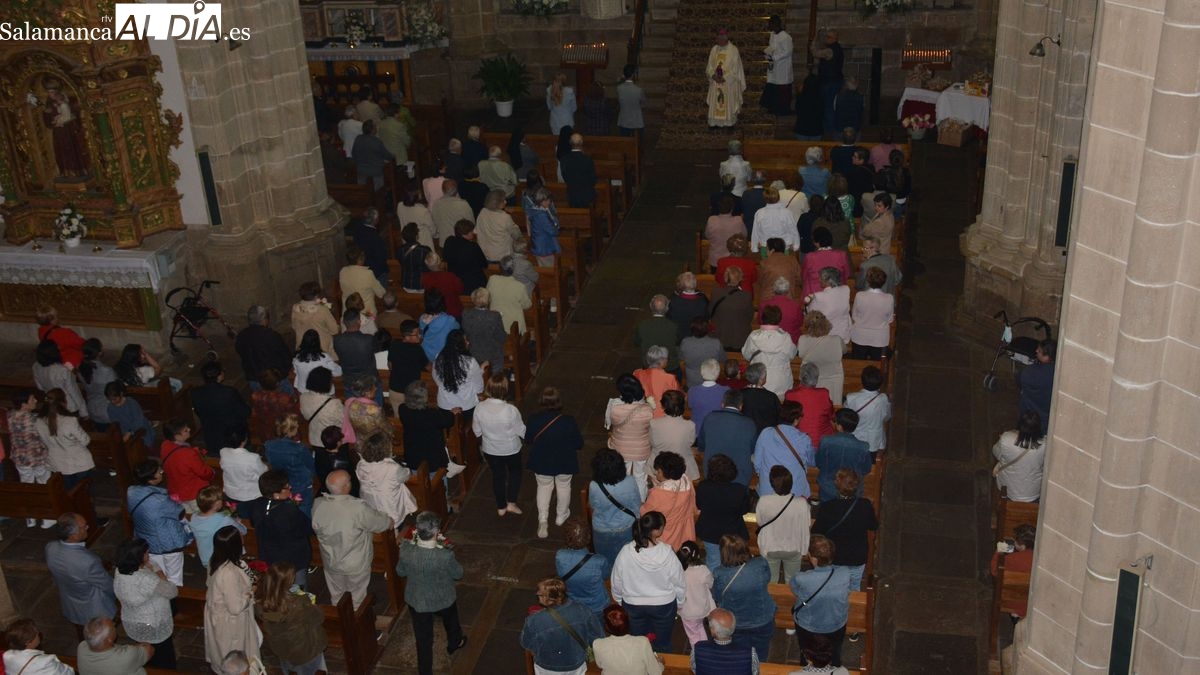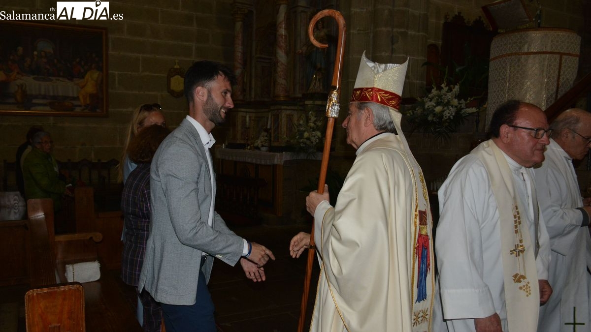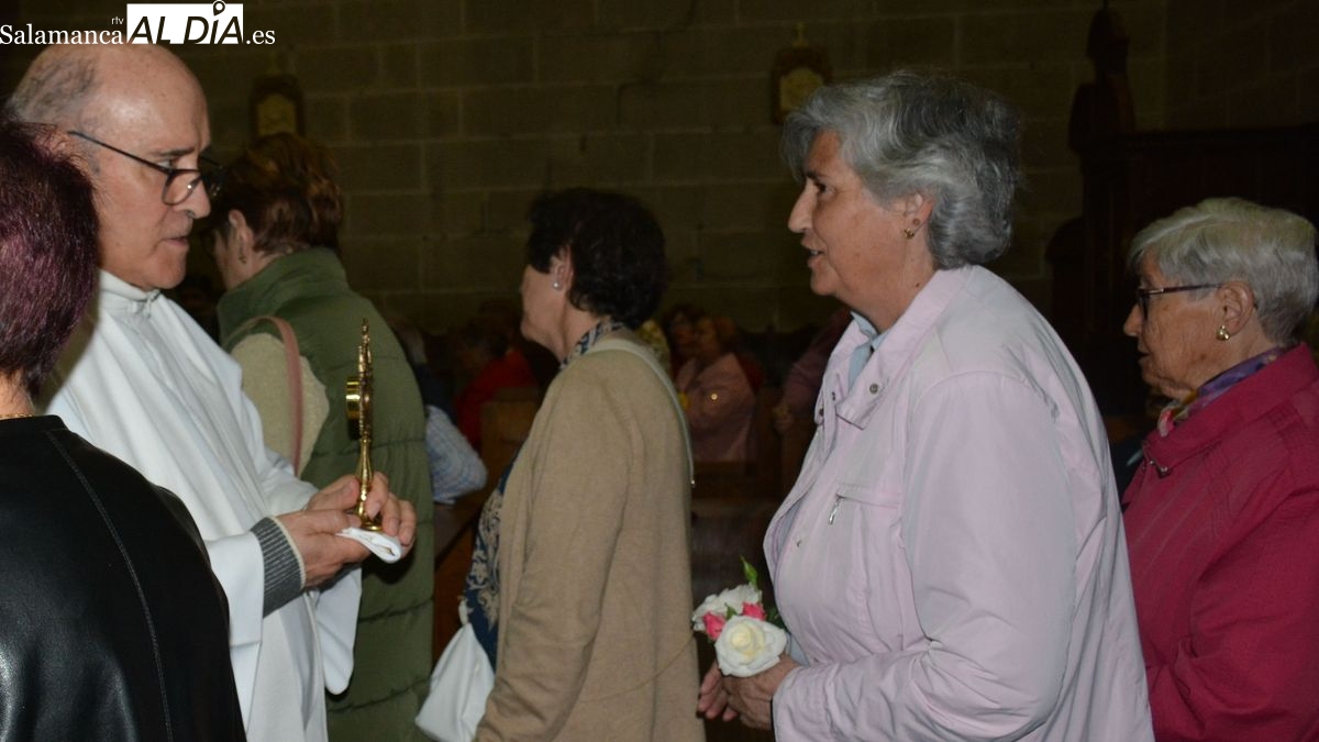 Las autoridades locales, la diputada de ferias y mercados y convenios con las diócesis, Nieves García Mateos, el obispo de Ciudad Rodrigo y Salamanca, José Luis Retama, y los sacerdotes del arciprestazgo del Abadengo, además de numerosos vecinos han acompañado a los mayores residentes y a las trabajadoras de este centro asistencial, cuyo titular es la Diputación Provincial de Salamanca, y que regenta desde hace más de 30 años la Congregación de Hermanas Agustinas del Ámparo.