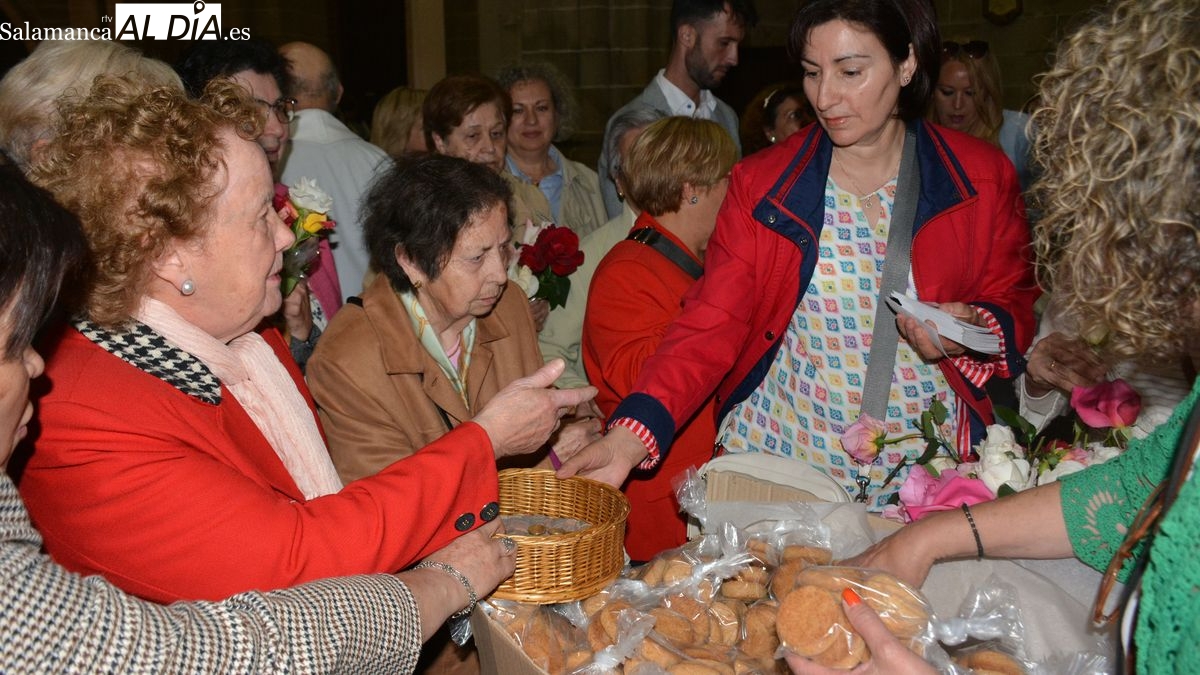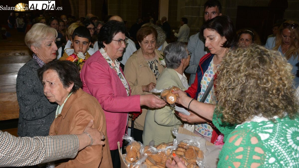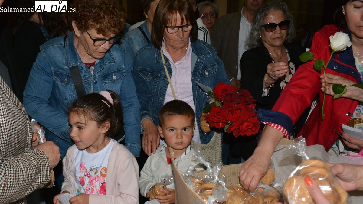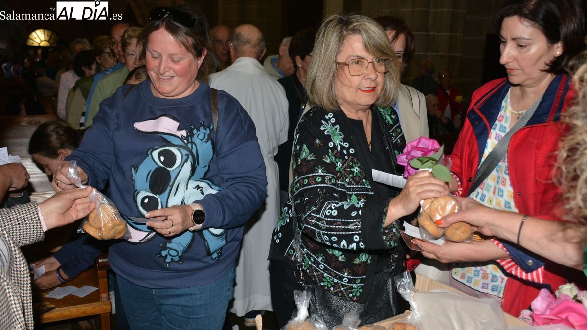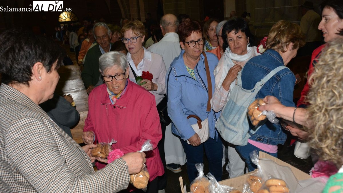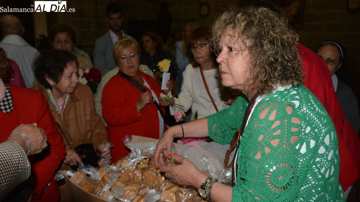 Finalizado el oficio religioso, y por iniciativa de las Madres Agustinas, los asistentes recibieron los típicos panecillos de Santa Rita y una rosa, que previamente habían sido bendecidos por el Obispo, además de una estampa de la Santa. Esta tradición mantiene la creencia popular de los efectos beneficiosos que para la salud tienen los panecitos de la Santa, así como las rosas bendecidas que se colocaban, y se siguen colocando,en las casas para evitar malos augurios. Muchos de los fieles llevaron flores a esta cita.