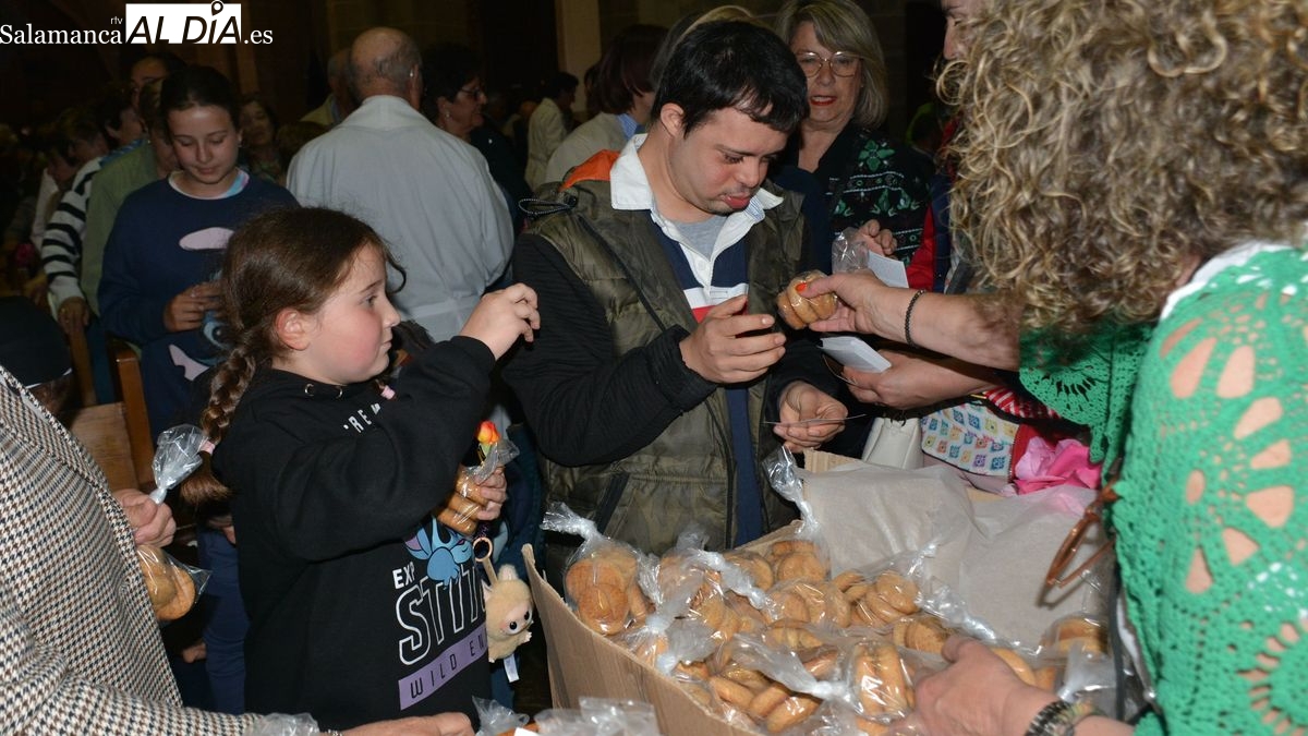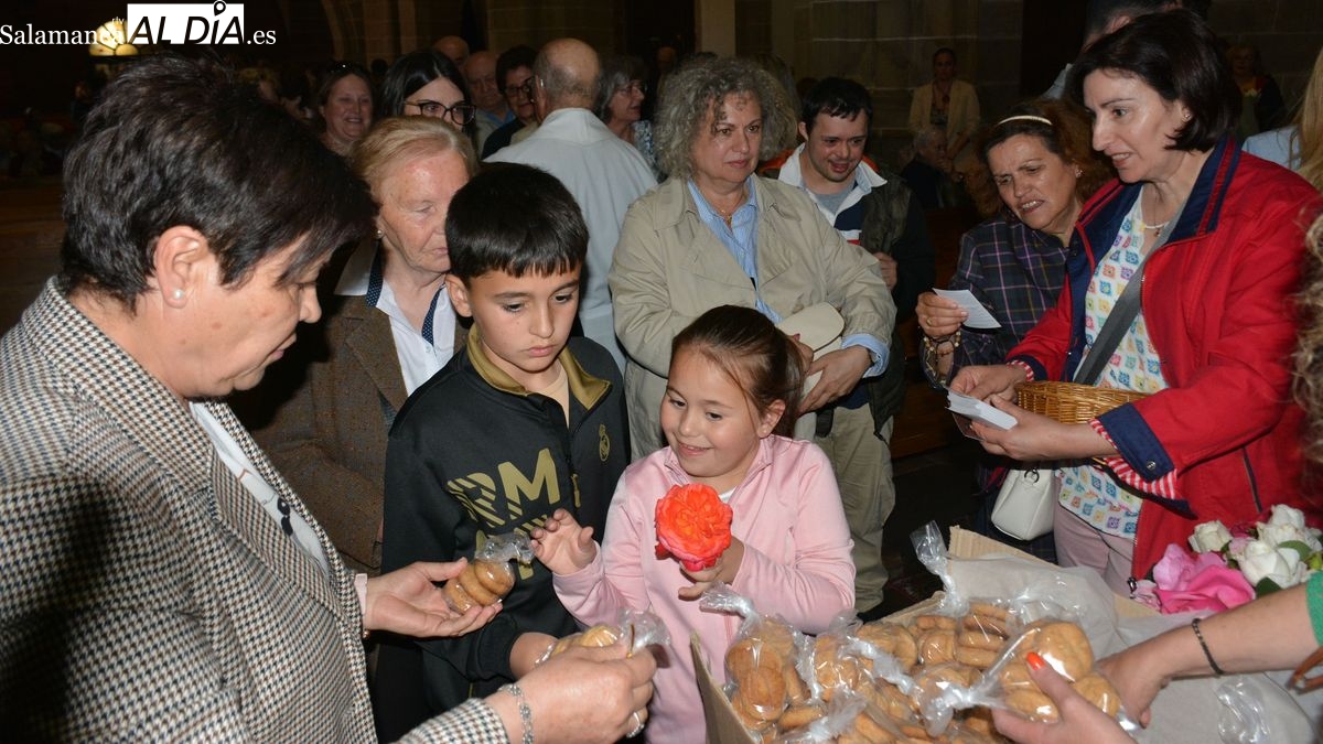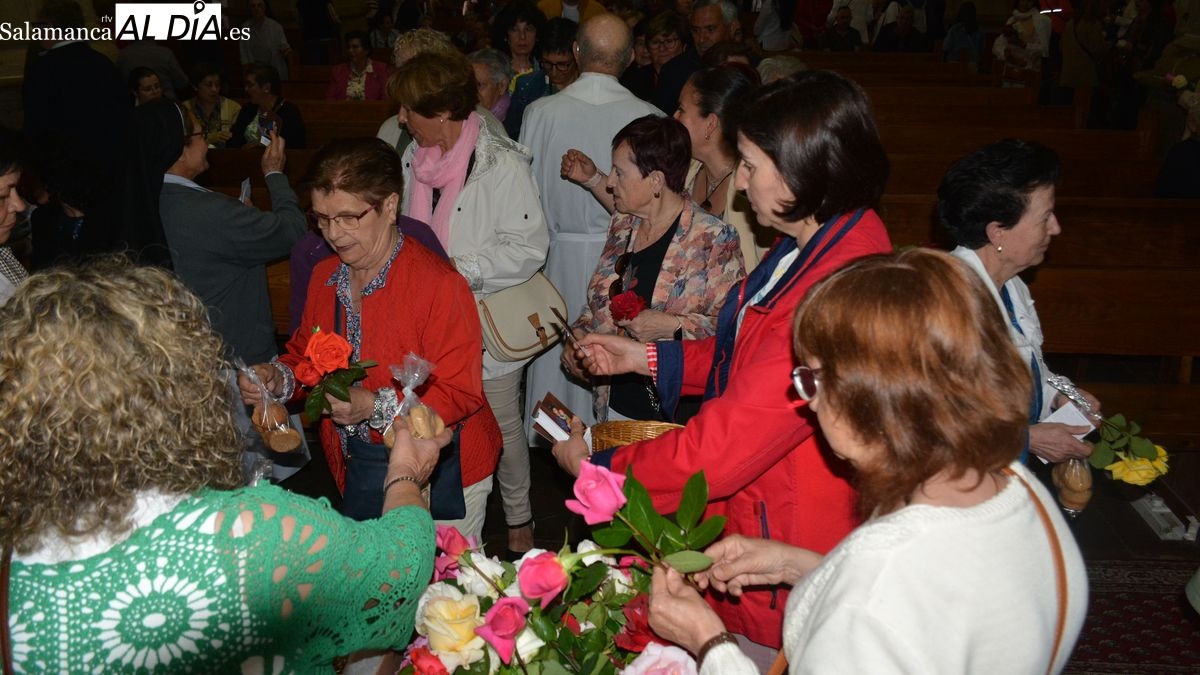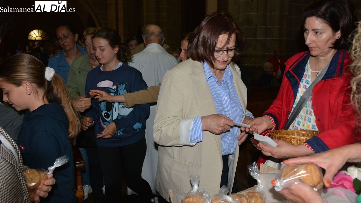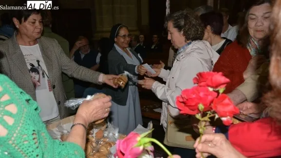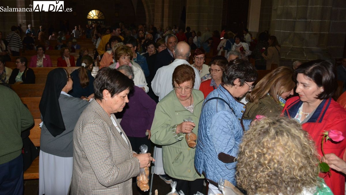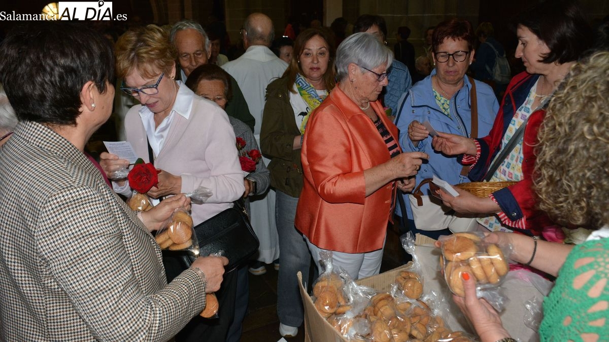 Finalizado el oficio religioso, y por iniciativa de las Madres Agustinas, los asistentes recibieron los típicos panecillos de Santa Rita y una rosa, que previamente habían sido bendecidos por el Obispo, además de una estampa de la Santa. Esta tradición mantiene la creencia popular de los efectos beneficiosos que para la salud tienen los panecitos de la Santa, así como las rosas bendecidas que se colocaban, y se siguen colocando,en las casas para evitar malos augurios. Muchos de los fieles llevaron flores a esta cita.