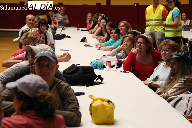 La segunda edición de la peregrinación organizada por la Diputación de Salamanca ha congregado a un nutrido grupo que disfrutará de la villa ducal y venerará a Santa Teresa, antes de degustar patatas meneás en la plaza de toros.