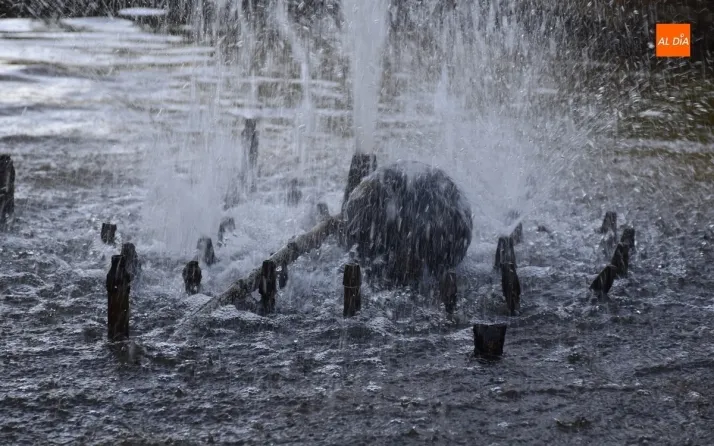 El balón con el que estaban jugando unos chavales en el Parque de La Glorieta de Ciudad Rodrigo acabó en la fuente del paseo central del lugar, con la mala suerte de que fue a parar justamente a la zona de los grifos, que estaban funcionando con normalidad en la tarde sabatina. De este modo, producto del agua que salía y caía, el balón quedó ‘encajado’, siendo inútiles los esfuerzos para sacarlo de allí, lo que se intentó incluso lanzándole palos de ciertas dimensiones para intentar moverlo.