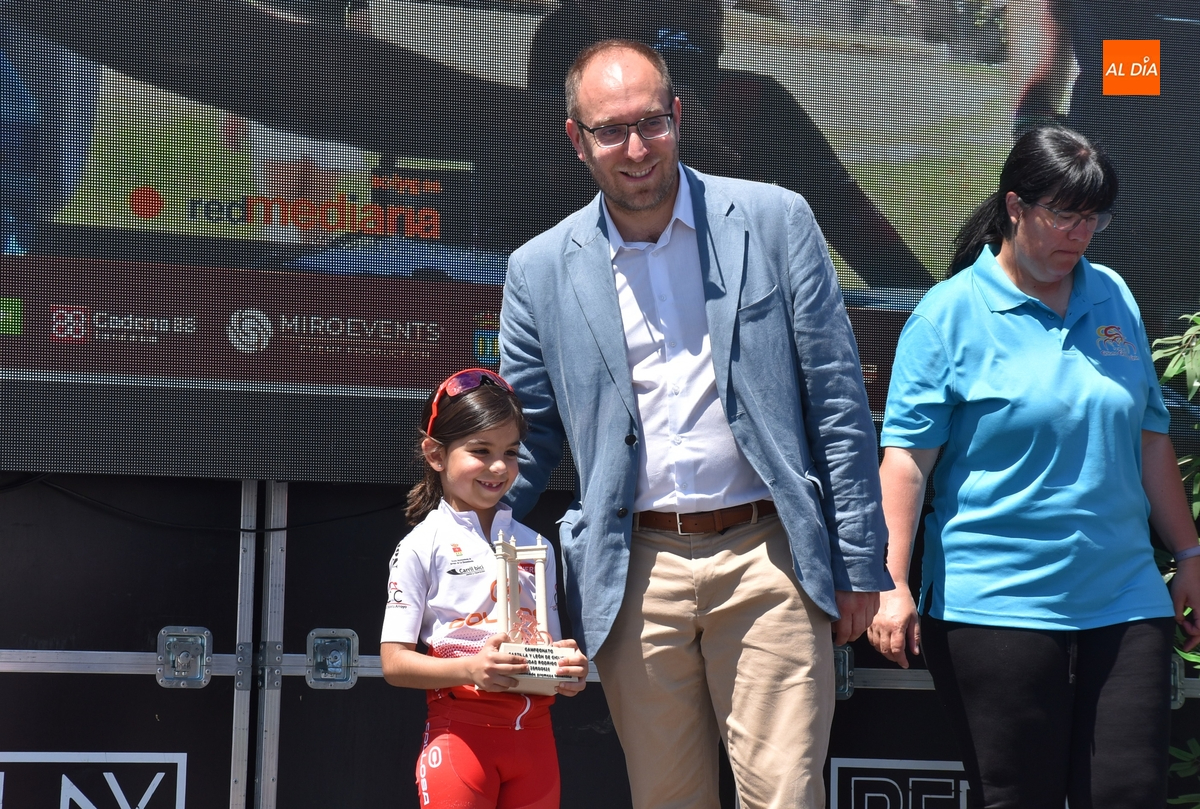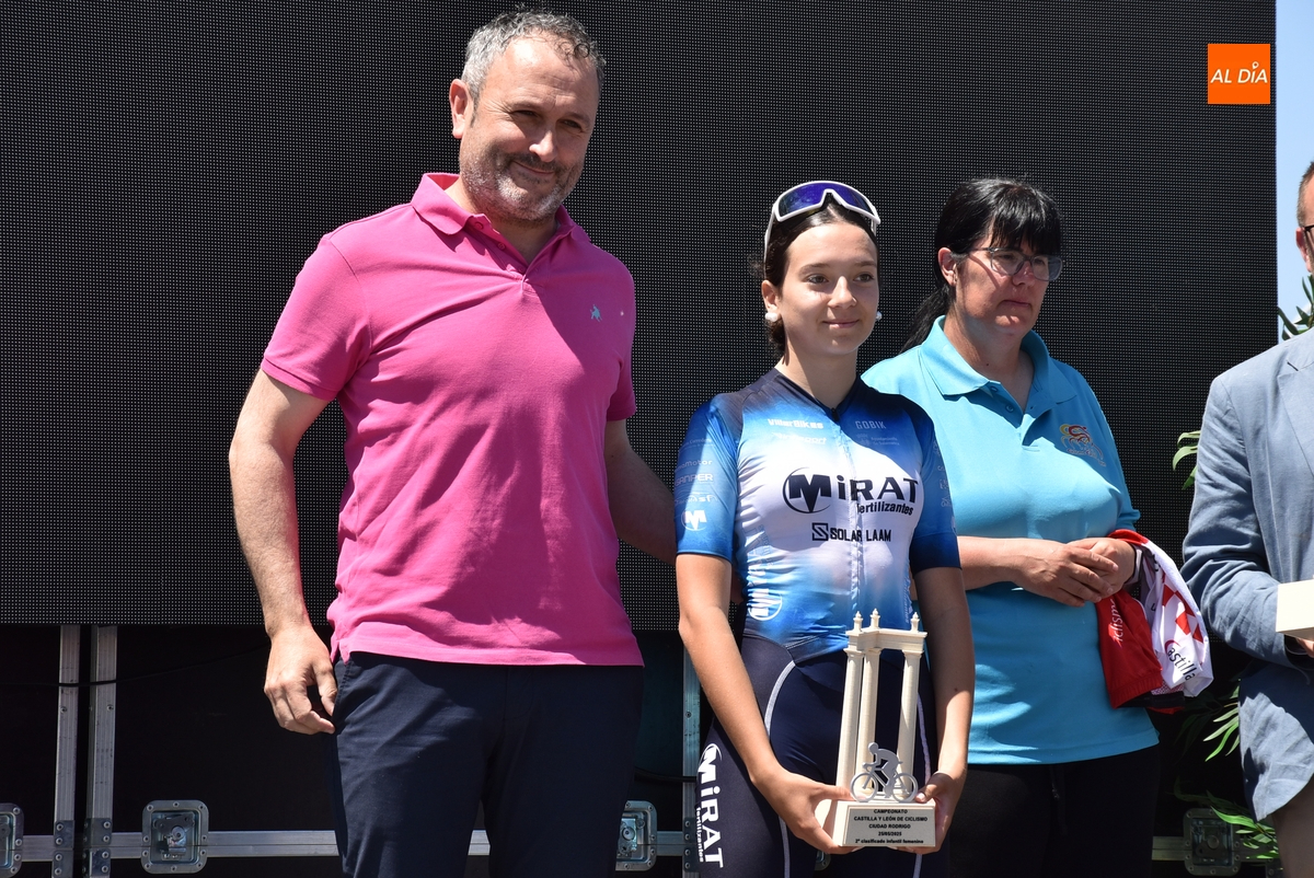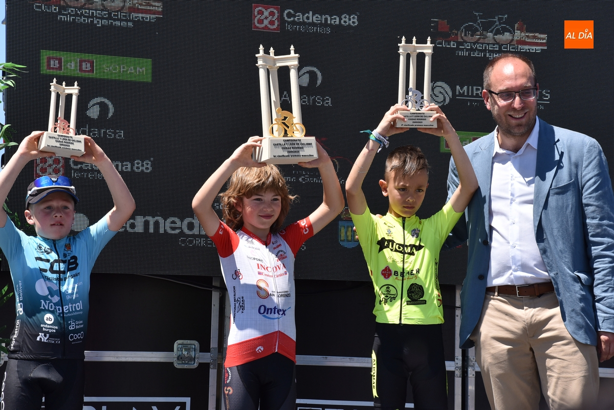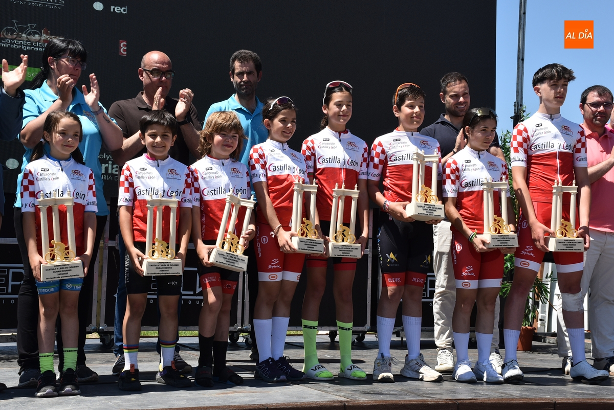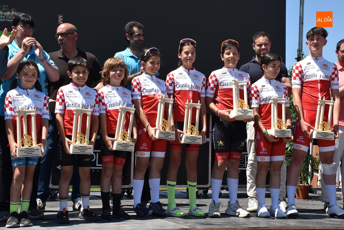 La ronda de proclamación de los triunfadores sobre el escenario instalado en el glacis de la Avenida de Sefarad (con la Catedral de fondo, aunque la tapaba la pantalla de televisión instalada) se abrió con la categoría Promesas. En chicos, el podio estuvo integrado por Enzo Arévalo, de la Escuela Ciclista CC 53x13; Lucas de la Mata, de Jamones Aljomar; y Adrián Unsión, del CCB – Fundación Círculo Burgos; mientras que el femenino lo conformaron Alba Fabián, de la Escuela Diego Díez; Lena Roldán, de la Escuela de Ciclismo Samuel Villacastín; y Martina Hernando, del Equipo Collosa.